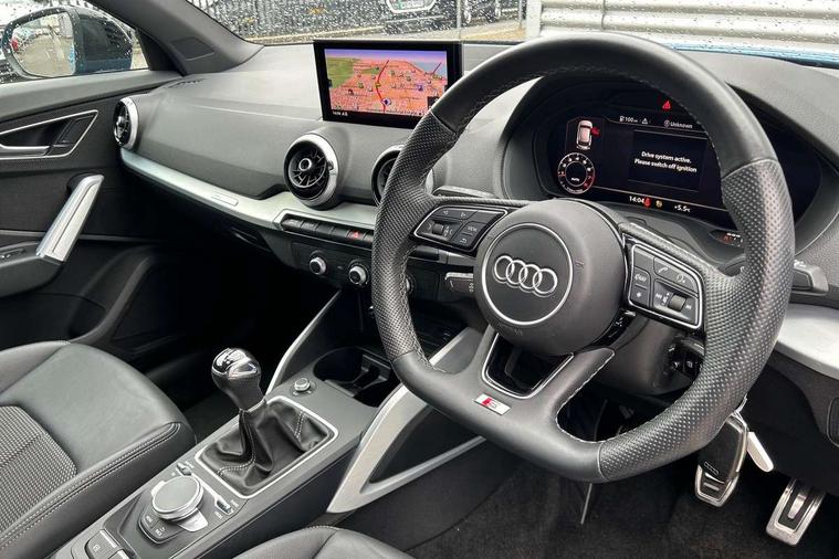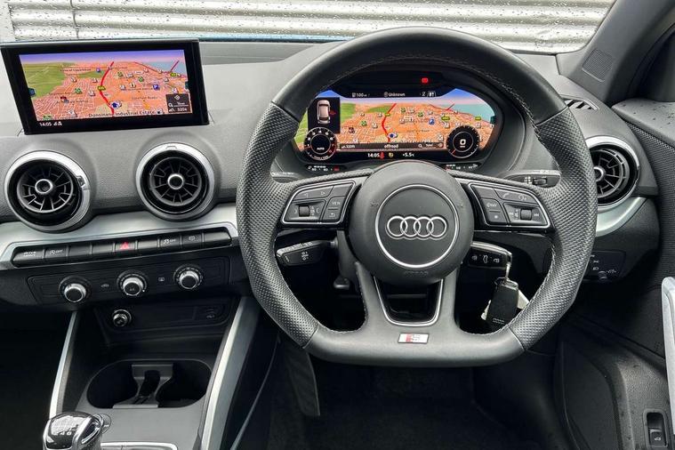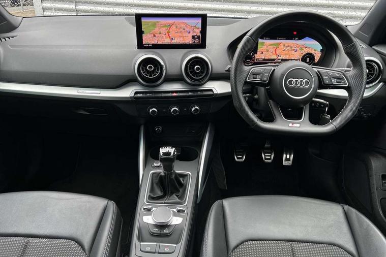 Audi connect navigation and infotainment includes innovative services, Audi connect remote and control connects your vehicle to your smartphone, Audi drive select, Audi drive select with efficiency, Audi smartphone interface, Audi virtual cockpit, Automatic start/stop system with recuperation, Bluetooth interface includes bluetooth audio streaming, Cruise control, E-call, MMI navigation plus with MMI touch, Power operated tailgate, Progressive steering, Rear parking sensors, 2 x SDXC card reader, 8 passive loudspeakers, DAB Digital radio, DVD Drive, Auto dimming rear view mirror, Black window trims, Bumper in full body colour paint finish, Electrically adjustable, folding, auto dimming and heated door mirrors with integrated LED side indicators, Front windscreen with grey tinted sunband, LED daytime running lights, LED headlights with LED rear lights, LED third brake light, Privacy glass - dark tinted rear and rear side windows from B-pillar backwards, Rear side wing doors, Rear wiper, Variable front intermittent wipers, Wheel arch trims in manhattan grey, 12V socket in front, 3 seat bench in 2nd row, 3 spoke flat bottomed multi-function leather sport steering wheel, 4-way electric lumbar support for front seats including seat height adjustment for both front seat, 60/40 split folding rear seat bench, Black cloth headlining, Front and rear head restraints, Front centre armrest, Front/rear floor mats, Height/reach adjust steering wheel, Illuminated door sill trims with S logo, ISOFIX child seat mounting for front passenger with airbag deactivation and outer rear seat including top tether attachment point for outer rear seats, Single front passenger seat, Stainless steel pedals, Black styling pack - Q2, 3x3 point rear seatbelts, 6 airbags - Front, curtain and front side airbags, Electromechanical parking brake, Electronic stabilisation control including ABS, ASR and EDL, Hill hold assist, Pre-sense front with pedestrian recognition, Seatbelt monitoring, Tyre pressure warning light, Warning triangle and first aid kit, Anti theft alarm, Anti theft wheel bolts, Electronically operated child locks, Remote central door locking, Aluminium interior element, Matt brushed aluminium trim inlays, Tool kit,