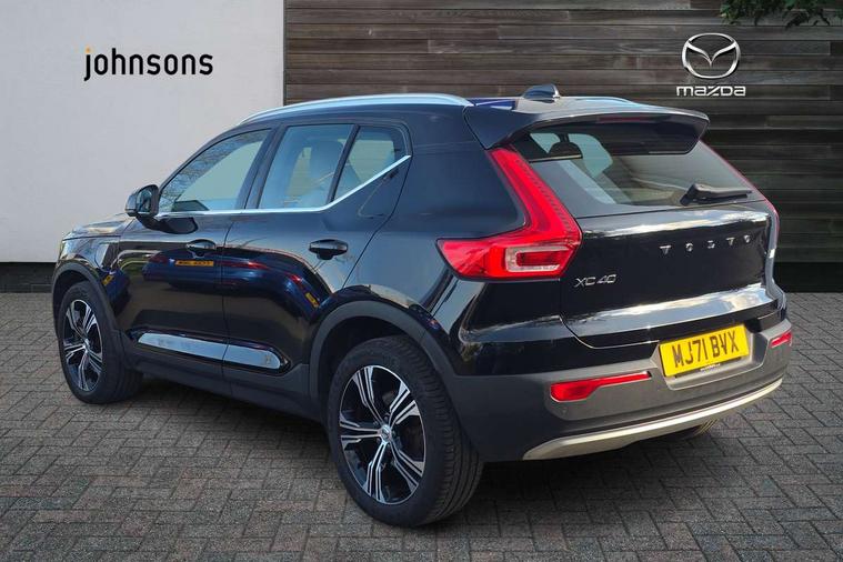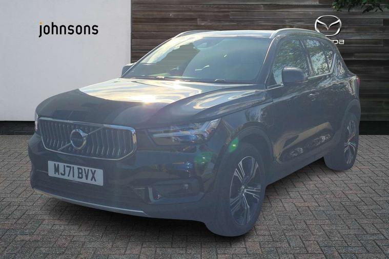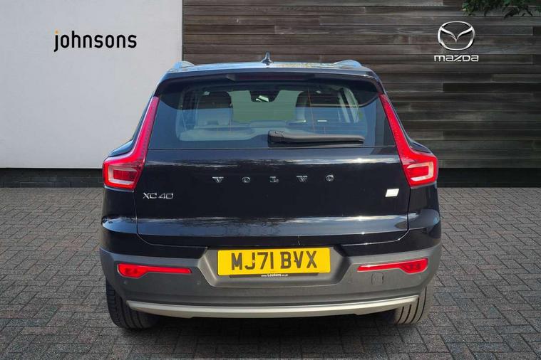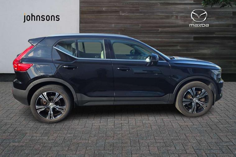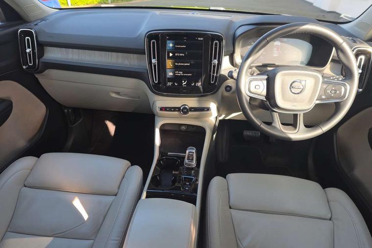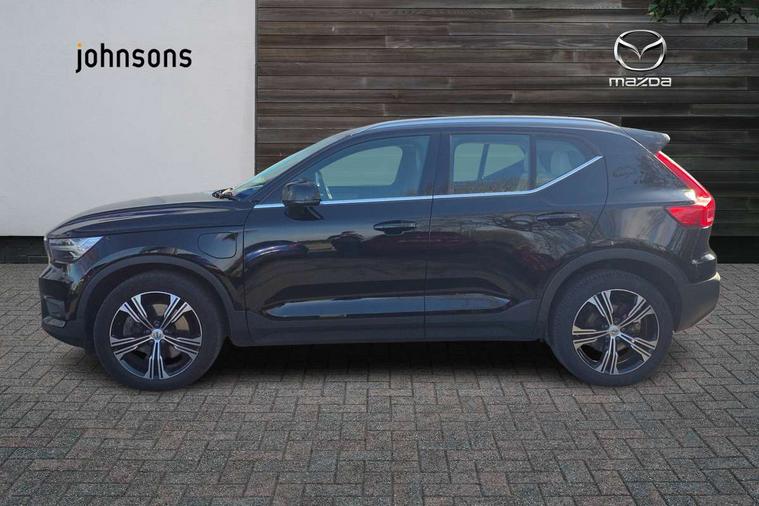12.3" Active TFT crystal driver's instrument display, 9" centre console portrait touch screen, Adjustable steering wheel force, Bluetooth hands free telephone kit, Drive mode selector, E-call, Lane keep assist with driver alert control, Oncoming Lane Mitigation, Power operated tailgate, Sensus navigation with European mapping and traffic information, Speed limiter, Speed sensitive steering, Voice activated control for key functions, Volvo on call, 7m 10amp charge cable with 3 pin plug and 7m 1 phase 16amp type 2/mode 3 charge cable, Dynamic chassis, Electric front axle drive, Recharging port located in nearside front wing, DAB Digital radio, Low speed exterior sound speaker, Steering wheel mounted remote controls, Adaptive brake lights with high level LED brake lights, Auto dimming interior mirror, Automatic headlamp levelling, Automatic LED Headlights + Active high beam incorporating daytime running lights, Chrome window surround, Colour coordinated auto folding and heated power door mirrors, Front aluminium tread plates, Front and rear electric windows, Heated front windscreen, High gloss black front grille with chrome inserts, High gloss black sensus surround deco, High Gloss silver front and rear skid plate, Home safe and approach lighting, Integrated roof rails in silver, Rain sensor with automatic windscreen wiper activation, Rear side wing doors, Rear wiper, Roof antenna, Roof spoiler, Visible VIN plate, 12V socket in front tunnel console and luggage compartment, 2 zone electronic climate control and rear air vent, 3 seat bench in 2nd row, 3 Spoke tailored steering wheel with chrome trim, 60/40 versatile split folding rear seat, A-pillar parking ticket holder, Blond headlining, Bright metal luggage threshold, Centre console cupholders and storage, Floor mats, Front footwell illumination, Front headrests, Front reading light and theatre lighting, Front seat cushion extensions, Glovebox bag hook, Heated front seats, Height/reach adjustable steering column, Height/tilt adjustable driver's seat, High gloss centre tunnel deco, Illuminated glovebox, Illuminated luggage compartment, Illuminated vanity mirrors, Isofix attachments on outer rear seats, Leather faced upholstery, Load protection net, Multi directional lumbar support, Orrefors Crystal gear lever knob, Power driver seat with memory + exterior mirrors memory, Power passenger seat, Rear armrest / integral cup holders / storage tray, Rear coat hook, Single front passenger seat, Underfloor cargo storage, Vanity mirror with ticket holder, Lighting pack - XC40, Park assist pack - XC40, 3x3 point rear seatbelts, City safety includes pedestrian, cyclist and large animal detection and front collision warning with full auto brake, Drivers knee airbag, Dual stage driver/passenger airbags, Electronic parking brake with auto hold, First aid kit, Front and outer rear seatbelt reminder and pretensioners, Front seats SIPS airbags, Hill descent control, Hill start assist, Inflatable curtain, Passenger airbag cut-off device, Road sign information display, Run off Road Mitigation, Run off Road Protection, SIPS (Side Impact Protection System), Slippery road and hazard light alert, Stability and Traction Control with Spin control, Engine Drag Control and Corner Traction Control, Tyre pressure monitoring system, Vehicle deceleration control with Anti-lock Brake System, Electronic Brake Distribution and Emergency Brake Assist, Warning triangle, WHIPS whiplash protection system - front, Anti-theft alarm including immobiliser/volume sensor + level sensor, Care key with user defined top speed, Key integrated remote control central locking + fuel flap with deadlocking system and auto open/close power windows, Locking wheel nuts, Private locking for tailgate, Driftwood inlays,