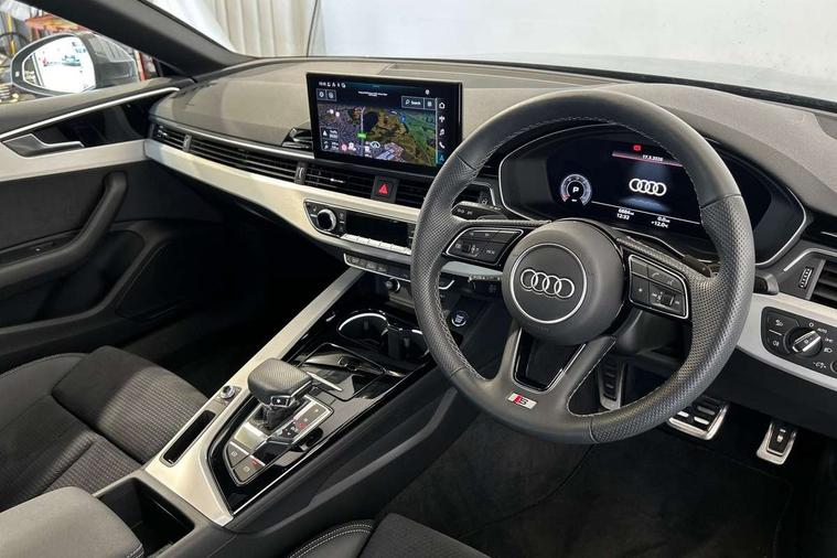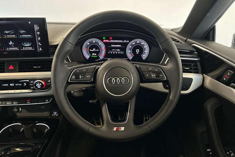 Audi connect safety and service (e-call), Audi connect with Amazon Alexa Integration, Audi drive select (Auto, Comfort, Dynamic, Efficiency and Individual), Audi parking system plus with front and rear sensors, Audi smartphone interface, Audi virtual cockpit - 12.3" full colour digital instrument cluster, vehicle/engine speed, Radio/media information+Driver assistance systems, Automatic start-stop system with coasting functionality and efficiency programme, Bluetooth interface, Electro-mechanical power steering, Email, calendar and text messages displayed via MMI, MMI nav+ with MMI touch - 10.1" high resolution MMI display, touch sensitive, 3D map, route/country info, dynamic route guide, personal route assist, Power operated tailgate, Rear view camera, Service interval indicator, Voice control system, Diesel particulate filter, Sports suspension lowered by 23mm, 8 passive loudspeakers, CD player, DAB digital radio reception, Two additional USB ports for rear passenger in rear centre console, Two SDXC card slots, Auto dimming door mirrors, Auto dimming rear view mirror, Body colour bumpers, Body colour door handles, Body colour front spoiler lip, Body colour side sill trim, Body coloured door mirrors, Electric adjustable heated door mirrors, Electric folding door mirrors, Electric front windows, Front fog lights, Honeycomb structure radiator grille in grained matt black, Kerb-view function for passenger side, LED headlights and rear lights with LED daytime running lights, LED side indicator lights integrated into door mirrors, LED third brake light, Matt aluminium silver tailpipe trim, Privacy glass, Rain and light sensors, Rear side wing doors, Rear wiper, S line badges on front wings, S line front and rear bumpers with side skirts, S Line rear diffuser in matt anthracite black with trim strip in matt aluminium silver, Side air inlets in grained matt black with matt aluminium silver inlay, Variable front intermittent wipers, Windscreen with acoustic glazing, 3 seat bench in 2nd row, 3 spoke high multifunction leather sport steering wheel with paddle shfit and S badging perforated leather grips, 4 way electric lumbar support for driver and front passenger, 40/20/40 split folding 3 seater rear bench seat, Adjustable steering column, Black cloth headlining, Black perforated leather gearknob, Contrast stitching on seats, steering wheel and gear lever gaiter, Deluxe 3 zone electronic climate control, Front centre armrest, Front head restraints, Front/rear floor mats, Heated front seats, Illuminated door sill trim with S logo, ISOFIX child seat mounting and top tether, Luggage compartment mat, Manual seat adjustment, Rear centre armrest, Rear headrests, Single front passenger seat, Stainless steel pedals, Sunvisors with vanity mirrors, LED interior light pack - A5/RS5, 3x3 point rear seatbelts, 6 airbags - Driver, front passenger, curtain and side airbags, Electromechanical parking brake, Electronic Stabilisation Control (ESC) including ABS, ASR and EDL, Front passenger airbag deactivation, Height adjustable front seatbelts, Hill hold assist, Manual child lock in rear doors, Multi collision brake assist, Pop-up bonnet for pedestrian protection, Pre sense city, Seatbelt monitoring, Tyre pressure warning, Variable restraint system, Warning triangle and first aid kit, Anti theft alarm system, Anti theft wheel bolts, Immobiliser, Keyless Go, Remote central locking, Matt brushed aluminium inlays, Tool kit, Tyre repair kit,
