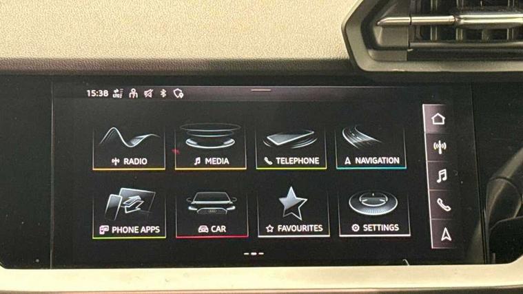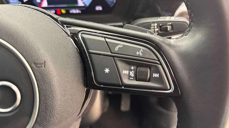 Audi connect emergency call and service, Audi smartphone interface, Audi Virtual Cockpit - 10.25" digital and colour instrument cluster, Automatic start/stop system with recuperation, Bluetooth interface, Collision avoidance assistant, Electromechanical power speed sensitive steering, Lane departure warning system, MMI Navigation Plus with high resolution 10.1" colour touch screen display, Service indicator, Trip computer, Voice control system with natural language interaction, Standard suspension, 2xUSB-C connection with data and charging functions, 6 passive loudspeakers, DAB Digital radio, 3rd brake light, Acoustic glass windscreen, Auto dimming frameless rear view mirror, Body colour exterior mirrors, Body colour front spoiler blade, Body colour roof spoiler, Electrically adjustable/heated/folding/auto dimming door mirrors with integrated LED indications + kerb view function for passenger side, Front electric windows, LED daytime running lights, LED headlights and halogen rear lights, Light and rain sensors, Radiator grille and frame in grained matt black and honeycomb look, Rear diffuser in grained matt black, Rear electric windows, Rear side air outlets in grained matt black, Rear side wing doors, Rear window, rear door windows and rear side windows in clear glass, Rear wiper, Side air inlets in grained matt black, 12V socket and storage compartment in front centre console, 3 seat bench in 2nd row, 3 spoke leather multifunction steering wheel with paddle shift, 60/40 split folding rear seat bench, Front and rear headrests, Front centre armrest, Front/rear floor mats, Height and reach adjustable steering wheel, Interior lighting - Front and rear roof module including reading lights, glove compartment light and right hand side, Luggage compartment floor covering, Manual air conditioning, Manual boot compartment lid, Manually adjustable front seats, Seat side bolsters, Single front passenger seat, Steel grey cloth headlining, 3x3 point rear seat belts, Driver and front passenger airbag with passenger airbag deactivation, Electronic Stabilisation Control (ESC) including ABS, ASR and EDL, First aid kit with warning triangle and 2 safety vests, Front side airbags with head airbags and interaction airbag, Hill hold assist, Pre-sense front with pedestrian and cyclist detection, Seatbelt monitoring, Tyre pressure loss indicator, Anti theft alarm, Anti-theft wheel bolts, Immobiliser, Manual child locks, Remote control central locking, Black decorative window trim, Inlays with silk effect paint in platinum grey, 16" 5 double arm alloy wheels,