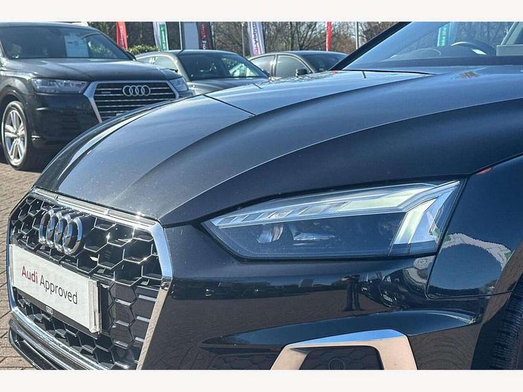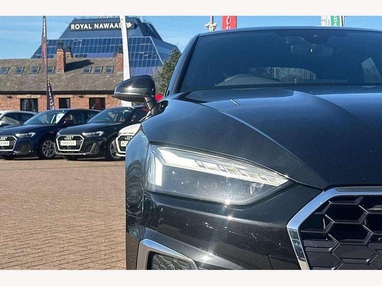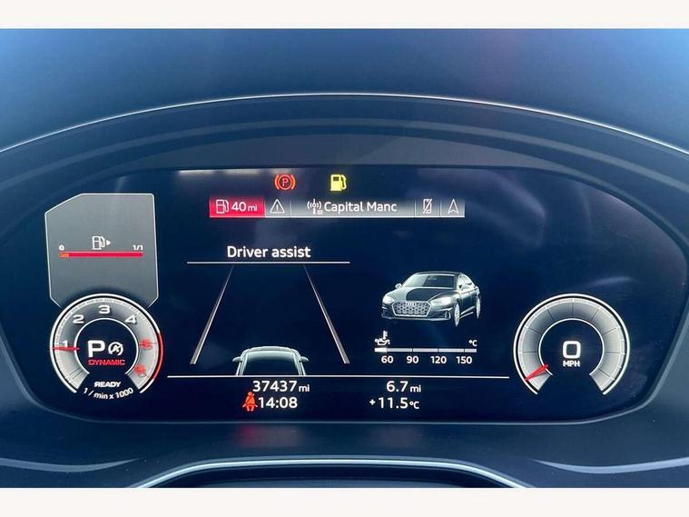 Audi connect safety and service (e-call), Audi connect with Amazon Alexa Integration, Audi drive select (Auto, Comfort, Dynamic, Efficiency and Individual), Audi parking system plus with front and rear sensors, Audi smartphone interface, Audi virtual cockpit - 12.3" full colour digital instrument cluster, vehicle/engine speed, Radio/media information+Driver assistance systems, Automatic start-stop system with coasting functionality and efficiency programme, Bluetooth interface, Electro-mechanical power steering, Email, calendar and text messages displayed via MMI, MMI nav+ with MMI touch - 10.1" high resolution MMI display, touch sensitive, 3D map, route/country info, dynamic route guide, personal route assist, Power operated tailgate, Rear view camera, Service interval indicator, Voice control system, Diesel particulate filter, Sports suspension lowered by 23mm, 8 passive loudspeakers, CD player, DAB digital radio reception, Two additional USB ports for rear passenger in rear centre console, Two SDXC card slots, Audi matrix LED headlights with LED rear lights + dynamic front and rear indicators, Auto dimming door mirrors, Auto dimming rear view mirror, Body colour bumpers, Body colour door handles, Body colour front spoiler lip, Body colour side sill trim, Body coloured door mirrors, Electric adjustable heated door mirrors, Electric folding door mirrors, Electric front windows, Front fog lights, Honeycomb structure radiator grille in grained matt black, Kerb-view function for passenger side, LED daytime running lights, LED side indicator lights integrated into door mirrors, LED third brake light, Matt aluminium silver tailpipe trim, Privacy glass, Rain and light sensors, Rear side wing doors, S line badges on front wings, S line front and rear bumpers with side skirts, S Line rear diffuser in matt titanium black with trim strip in matt aluminium silver, Side air inlets in grained matt black with matt aluminium silver inlay, Variable front intermittent wipers, Windscreen with acoustic glazing, 3 seat bench in 2nd row, 4 way electric lumbar support for driver and front passenger, 40/20/40 split folding 3 seater rear bench seat, Adjustable steering column, Black cloth headlining, Black perforated leather gearknob, Contrast stitching on seats, steering wheel and gear lever gaiter, Deluxe 3 zone electronic climate control, Front centre armrest, Front head restraints, Front/rear floor mats, Heated front seats, Illuminated door sill trim with S logo, ISOFIX child seat mounting and top tether, Luggage compartment mat, Manual seat adjustment, Rear centre armrest, Rear headrests, Single front passenger seat, Stainless steel pedals, Sunvisors with vanity mirrors, LED interior light pack - A5/RS5, 3x3 point rear seatbelts, 6 airbags - Driver, front passenger, curtain and side airbags, Electromechanical parking brake, Electronic Stabilisation Control (ESC) including ABS, ASR and EDL, Front passenger airbag deactivation, Height adjustable front seatbelts, Hill hold assist, Manual child lock in rear doors, Multi collision brake assist, Pop-up bonnet for pedestrian protection, Pre sense city, Seatbelt monitoring, Tyre pressure warning, Variable restraint system, Warning triangle and first aid kit, Anti theft alarm system, Anti theft wheel bolts, Immobiliser, Keyless Go, Remote central locking, Matt brushed aluminium inlays, Tool kit, Tyre repair kit,