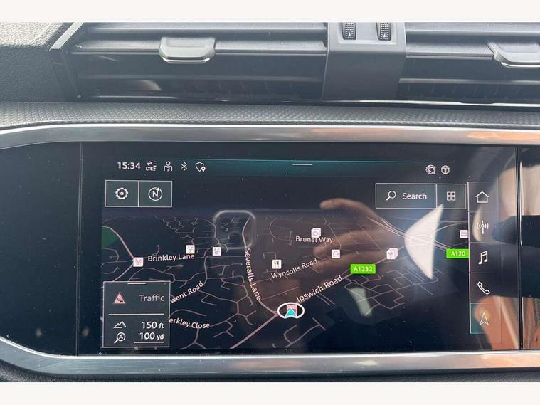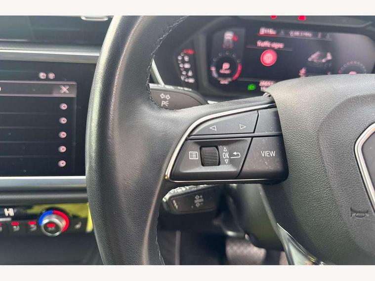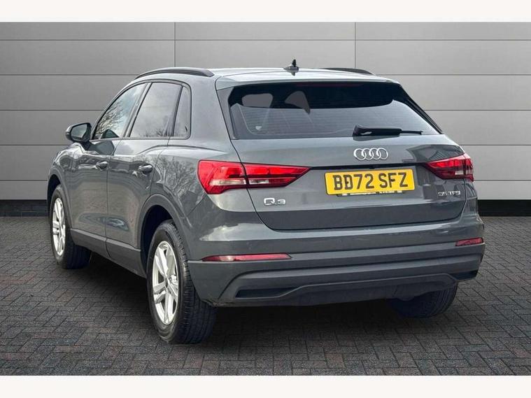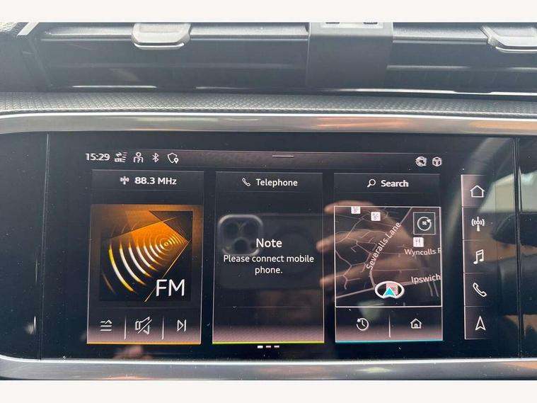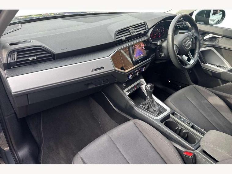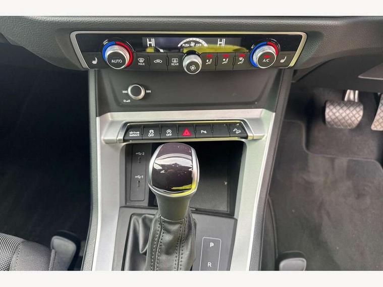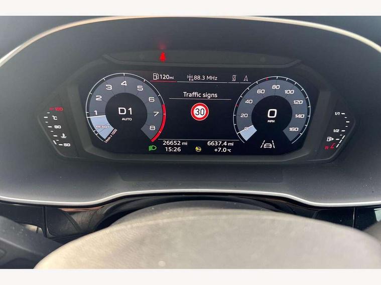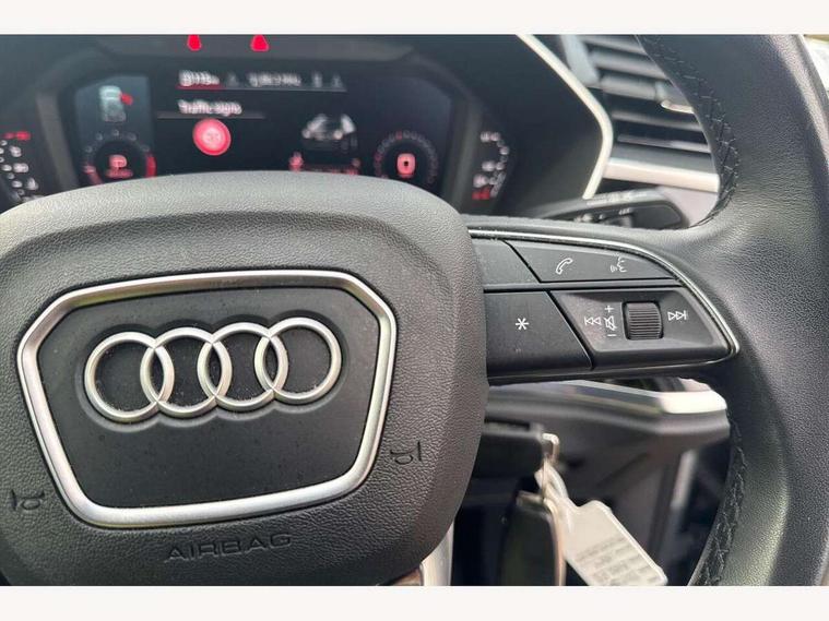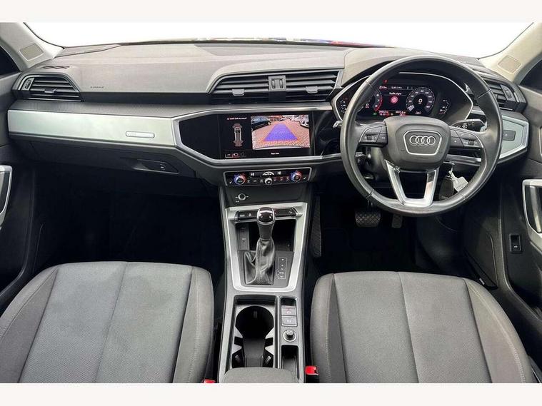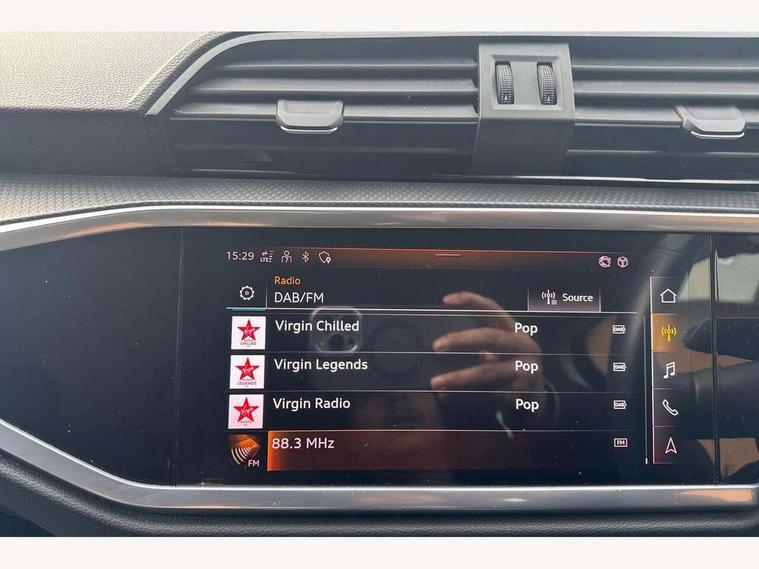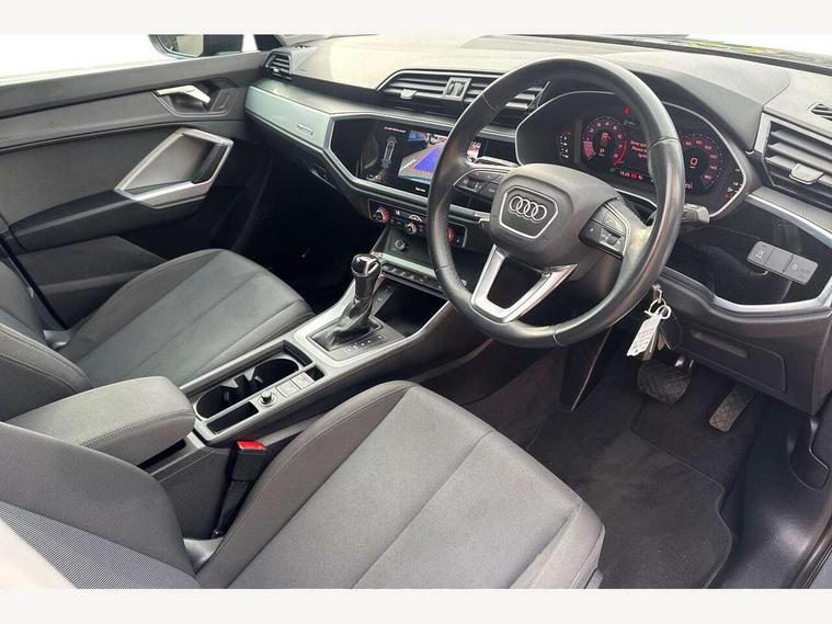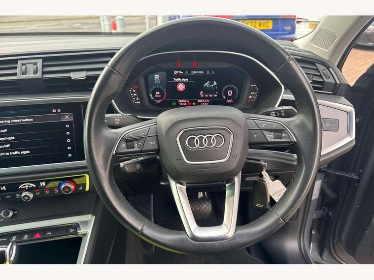 Amazon alexa Integration, Audi drive select, Audi lane departure warning, Audi Virtual Cockpit - 10.25" display, Bluetooth interface, Camera based traffic sign recognition, Legal emergency call, MMI Navigation Plus with high resolution 10.1 inch touchscreen colour display, Power operated tailgate, Progressive steering, Service interval indicator, Smartphone interface includes wireless Apple carplay/Android Auto, Start stop system with recuperation, Voice control system with natural language interaction, Standard suspension, 2 USB-C ports with charge and data functions, 6 passive loudspeakers, DAB digital radio module, Acoustic windscreen, Auto dimming frameless rear view mirror, Black roof rails, Body colour door mirrors, Diffuser in grained anthracite, Electrically folding, adjustable and heated door mirrors with integrated LED side indicators and kerb view function for passenger side, Exterior bumper with wheel arch trims and side sill trims in grained black matt, Front and rear electric windows, Grained radiator protective grille, Halogen rear lights, LED headlights with LED daytime running lights, Rain and light sensors, Rear side wing doors, Rear wiper, Third brake light, Variable front intermittent wipers, 12V socket in rear centre console, 3 seat bench in 2nd row, 3 spoke multi-function leather steering wheel, 40:20:40 folding with manual adjustment for 60:40 forwards/backwards position and backrest angle, Dual zone electronic climate control, Front and rear floor mats, Front and rear headrests, Front and rear roof module including reading lights, Front centre armrest, Glove compartment lighting, Height and reach adjustable steering wheel, ISOFIX child seat mounting for front passenger with airbag deactivation and outer rear seat including top tether attachment point for outer rear seats, Luggage compartment light, Lunar silver cloth headlining, Manual front seats with height adjustment, Single front passenger seat, Stainless steel luggage compartment sill finisher, Non smoking pack - Q3, 3x3 point rear seatbelts, 6 airbags - Driver, front passenger, curtain and side windows, Audi pre-sense front with pedestrain and cyclist recognition, Electrically operated child locks on rear doors, Electromechanical parking brake, Electronic stabilisation control including ABS, ASR and EDL, Front seatbelt reminder, Hill descent control, Hill hold assist, Pre sense basic, Seatbelt monitoring, Tyre pressure warning, Warning triangle and first aid kit, Anti theft alarm, Anti theft wheel bolts, Immobiliser, Remote central locking, Detail dashboard around MMI touch colour display in glass look, black with surround in aluminium look, Micrometallic silver inlay, 17" 5 twin spoke design alloy wheels,