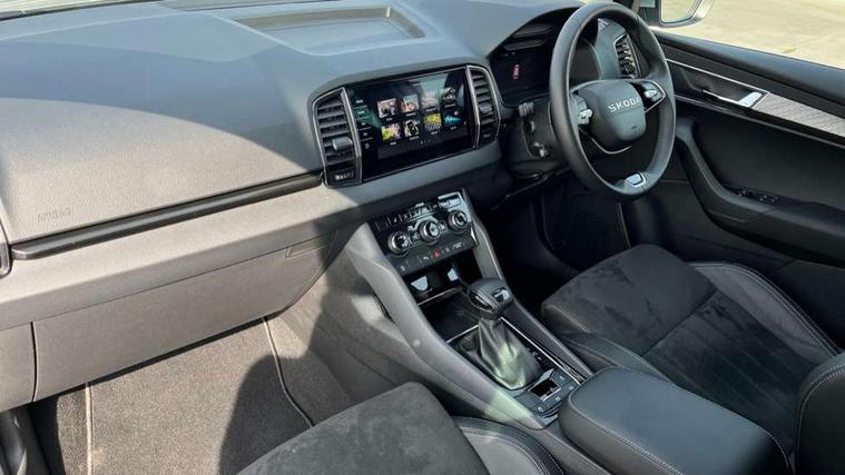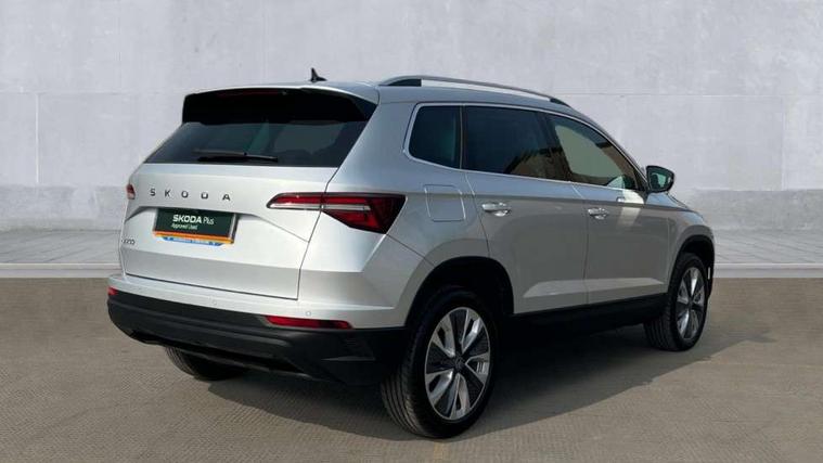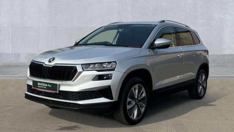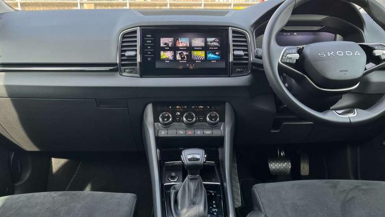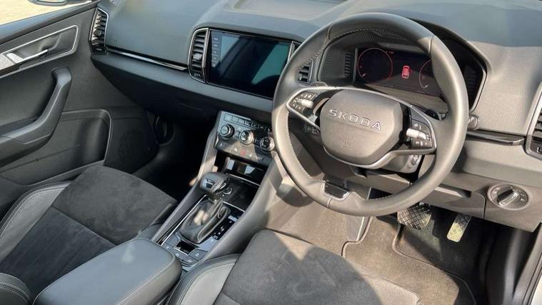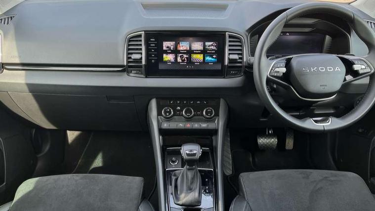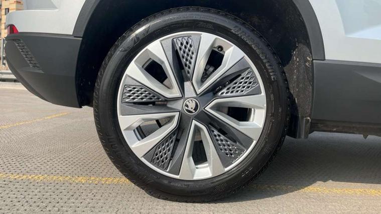 Advanced driver attention and drowsiness monitor, Drive Mode Selection including ECO function, Electro-mechanical PAS, Emergency services call system, Outside temperature gauge, Sensor for driver assistance systems, Service interval indicator, SmartLink wireless for Apple and wired for Android, Start/stop system with regenerative braking, Traffic sign recognition, USB C Port x 2 in front centre console, Virtual Cockpit - 10.25" digital display, Virtual pedal with electrically operated boot door, Wireless smartphone charging, DAB radio with Bluetooth, USB connection, Acoustic glass, Aero front windscreen wipers with intermittent function, Auto dimming rear view mirror with light and rain sensors, Black electric window control buttons, Body colour door mirrors and handles, Electric front and rear windows with child proof lock, Extended rear roof spoiler, Heated rear windscreen, LED daytime running lights, LED rear lights with high functionality welcome effect and dynamic indicators, Light assistant (coming/leaving home/tunnel light), Plastic scuff plates in door apertures, Privacy glass, Rear side wing doors, Rear window wiper with washer system and intermittent control, Safety reflectors on front doors, Third brake light, Unique dark chrome design logo on alloy wheels, 1.5 litre bottle holders in driver and front passenger door panels, 12V socket in boot, 12v socket in front centre armrest with storage compartment and rear air vents, 2 spoke leather heated multifunction steering wheel with DSG paddles, 2 x Tablet holder, 3 rear height adjustable headrests, 3 seat bench in 2nd row, 4 foldable roof handles with rear coat hooks, Black floor carpet, Cargo elements in boot, Chrome inner door handles, Decorative door sills with KAROQ badging, Foldable hooks in the boot, Front head restraints, Height adjustable front three point seats belts with tensioners, Height/reach adjust steering wheel, Ice scraper, Illuminated glovebox, Illuminated luggage compartment, Interior noise suppression, Isofix child seat preparation for front passenger seat, Isofix child seat preparation outer rear, Manual lumbar support for front seats, Pearl grey interior ceiling, Pen holder, Pollen filter, Rear boot cover, Rear package tray, Rear reading lights, Rubbish bin door, Safety vest holder, Single front passenger seat, Skoda lettering on steering wheel, Storage box in upper central dashboard closed, Sunvisors with illuminated vanity mirrors, Textile floor mats, Ticket holder, Columbus pack - Karoq, Design Pack - Karoq, Non Smokers pack, Parking pack - Karoq, Automatic door unlocking in case of crash, Automatic fuel cut off in case of crash, Driver airbag, Electronic parking brake with auto hold function, Emergency rear braking signal, ESC (incl. ABS+MSR+ASR+EDS+HBA+DSR+RBS+MKB), Front side airbags, Head airbags, Hill hold control, Knee airbags, Passenger airbag with switch-off function, Pedestrian monitor, Power operated child safety locks, Seatbelt reminder signalisation and pretensioner for all seats, Three point seatbelts rear, Two tone horn, Tyre pressure monitor, Alarm with interior monitoring, back up horn and tilt sensor with safe function, Electronic engine immobiliser, Keyless entry and start/stop, Remote central locking with 2 remote folding keys, Black centre console, Chrome framed air vents, Satin black dashboard, Anti-theft wheel bolts protection, Breakdown and tool kit,