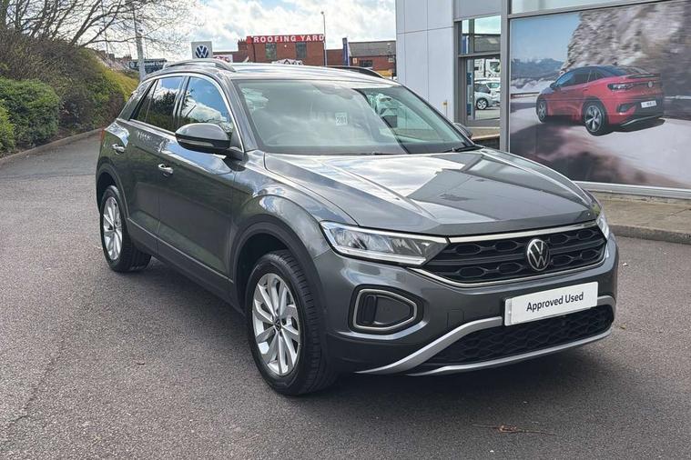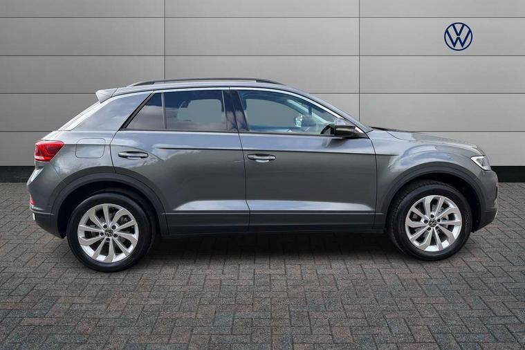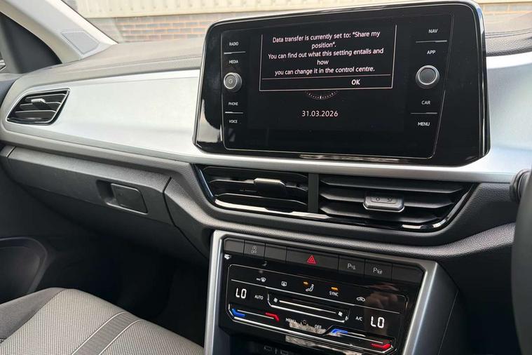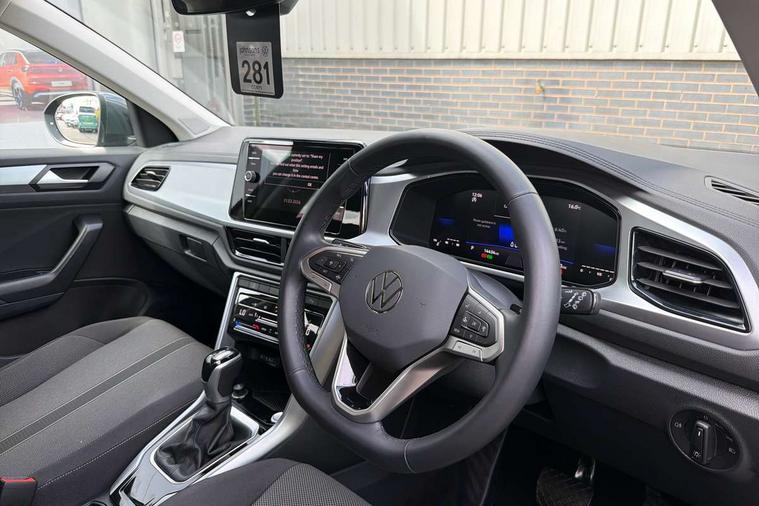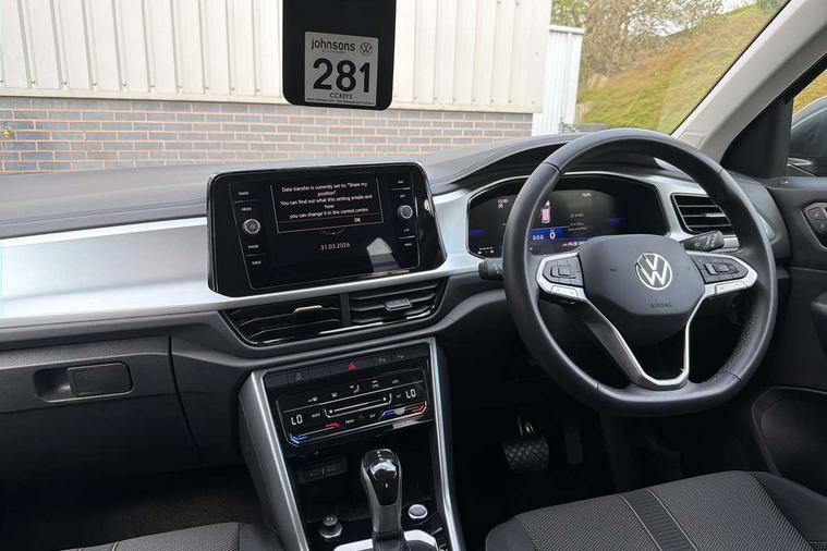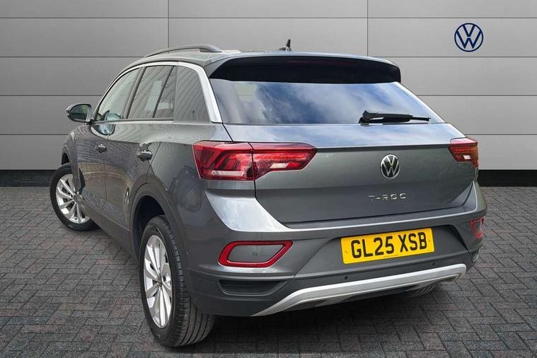 Advanced driver attention and drowsiness monitor, Dynamic road sign display, Emergency call service, Lane keeping system Lane Assist, Mobile phone interface, Modified key software - reduce switch off time for key status change to Long no motion, Online services, Park assist including front and rear parking sensors, Power assisted speed sensitive steering, Rear view camera, Service interval indicator, Tailgate/trunk lid release from outside, Think blue trainer driver tips and journey analysis, Warning sound and light for front seatbelts unfastened, Wireless app connect, Battery regeneration during braking, Front shock absorption, Rear shock absorption chassis with increased ride height, Start/stop function with battery regeneration, DAB Digital radio, Diversity antenna for FM reception, Music playback - MP3, WMA and AAC files, SD card slot, Simultaneous pairing of 2 compatible mobile devices, Title and cover art display, We Connect and We Connect Plus functionality, Auto dimming interior rear view mirror, Automatic hazard lights activation under emergency braking, Automatic headlight control with LED separate daytime running lights with coming/leaving home function, Black roof rails, Body coloured bumpers and radiator grille with chrome trim and front fog lamps with chrome bezel, Body coloured exterior mirror housings and door handles, Electrically adjustable and heated door mirrors, Extended roof spoiler, Exterior mirrors aspherical on driver side, convex on front passenger side, External USB type C socket and charging sockets, Front windscreen wiper with intermittent wipe and 4 position delay, Heated rear window, LED 3rd brake light, LED rear combination lamps, LED rear number plate lights, Power windows with comfort operation and circuit breaker, Privacy glass for rear side windows and rear window, Rain sensor, Rear exhaust tailpipe, Rear fog light on one side and reversing lights on both sides, Rear side wing doors, Rear wash/wipe with intermittent wipe setting, Remote electrically foldable door mirrors, puddle lights and reverse activated passenger's door mirror, 12V power socket in centre console, 3 rear head restraints, 3 seat bench in 2nd row, 4 load lashing points in luggage compartment, Air care climatronic air conditoning system with active combination filter and 2-zone temperature control, Black stitching for floor mats, Ceramique roof liner, Cloth upholstery, Door and side trim panel in cloth, Drawer under drivers seat, Driver/front passenger seat height adjustment, Front centre armrest, Front comfort sports seats, Front cupholders x 2, Front reading light, Front seat back storage pockets, Glove compartment door with light, Instrument lighting, white adjustable panel illumination, Interior ambient lighting and surround lighting, Interior light delay, Isofix child seat preparation, Leather gearshift handle, Load-through provision with cup holder when folded down ('Unsplit rear seat bench, split folding backrest, with centre armrest), Luggage compartment lighting, Lumbar support for driver's and front passengers seat, Non-folding front passenger seat backrest, Single front passenger seat, Storage compartment in left and right luggage area, Storage compartment in rear doors, Storage compartments in driver and front passenger doors, Sunvisors with illuminated vanity mirrors, Variable boot floor, height adjustable and removable, Driver assistance pack without proactive passenger protection - T-Roc Life/Match, 3 point height adj front seatbelts + pretensioners, 3 point seatbelts in outer rear with ECE label, ABS, Child locks on rear doors, City emergency braking and pedestrian monitoring, Driver and front passenger airbag with front passenger airbag deactivation, Driver and front passenger safety-optimised head restraints, Drivers seatbelt reminder, Electronic parking brake, Electronic Stability Control (ESC) inc EDL (Electronic Differential Lock) and ASR (Traction Control), Front and rear passengers curtain airbag system including front side airbags, Front disc brakes, Hill start assist, Predictive pedestrian protection, Rear disc brakes, Two tone horn, Tyre pressure loss indicator, Volkswagen roadside assistance, Alarm with interior protection, Keyless locking and starting system keyless access with safelock, Pewter matt decorative inserts for intrument panel, centre console and door panels at the front, Trims for alloy wheels,