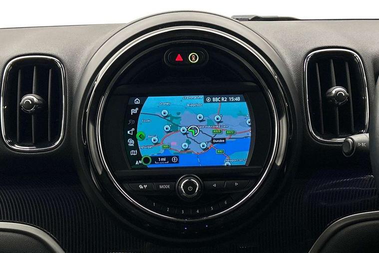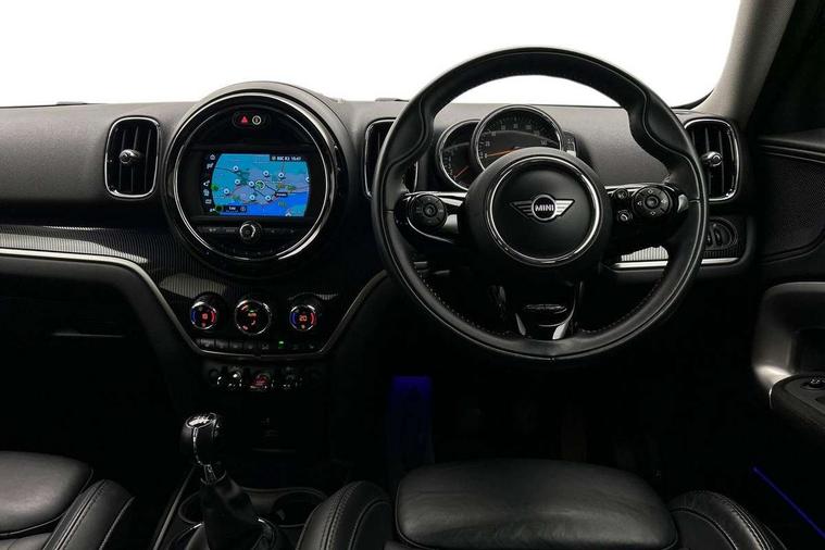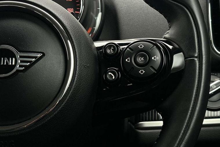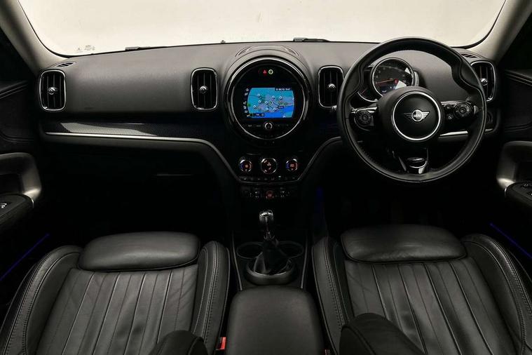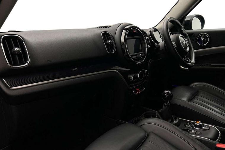 Active Guard incl speed limiting and lane departure functions with auto steering, and front collision warning with brake intervention, Automatic start/stop function with brake energy recuperation, Electro-mechanical speed dependant steering assistance, Instrument cluster, Mini E-call, MINI TeleServices, On board computer, Rear parking distance control, Double Vanos system, Fully variable valve control, High precision injection, FM tuner and DAB digital radio, Body colour fuel filler cap, Chrome line exterior, Day time driving lights, Door sill strips, Dynamic brake lights, Electric windows, Heated rear window, Heated windscreen washer jets, Left exhaust tailpipe with chrome finisher, Model logo, Model logo on Tailgate, Radiator grille, Rain sensor with auto headlights, Rear fog lights, Rear window wiper, Side scuttle panel with integrated indicator, Split rear doors, Sun/heat protection glass, White indicator lenses, 12V Accessory socket in centre console, 360L luggage compartment capacity, 4 lashing eyes in luggage compartment, 40:20:40 split folding rear seats, Chrome interior highlights, Cupholders, English handbook, Front headrests, Glove compartment, Height and length steering column adjustment, Interior lighting with 12 basic colours selectable via toggle switch in roof, Isofix rear child seat preparation, Leather gearshift lever and handbrake gaiters, LED reading lights, vanity mirror lights, front foot well light and spotlight on front seats, Manual air conditioning, Mechanical seat adjustment, driver seat height adjust, forward/back and front seats backrest, MINI Yours fine walk nappa leather steering wheel with contrast stitching in silver and MINI Yours badge, Multifunction steering wheel, Passenger seat height adjuster, Rear headrests, Storage compartments in doors, Sunvisors with vanity mirrors, Tool kit, Excitement pack - Countryman, Navigation pack - Countryman, 2 tone horn, 3 point seatbelts on all seats, 6 Airbags - front, side, head and seat belt tensioners, Anti-lock braking system (ABS), DSC - Dynamic Stability Control, Electronic handbrake, Front and rear disc brakes, Hill start assist, Tyre pressure monitoring system, Alarm system with tilt sensor, monitoring doors, bonnet interior and tailgate, Auto drive away locking, Deadlocking function, Electronic vehicle immobiliser, Locking wheel bolts, Start/stop toggle with keyless go, Chrome line interior,