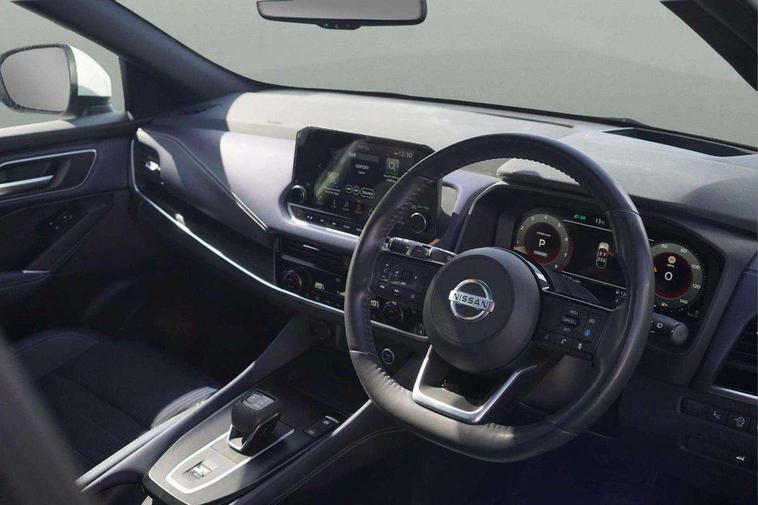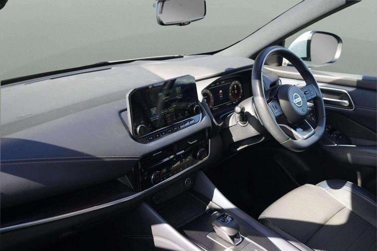 Blind spot warning, Drive modes (sport, normal, eco), Electric speed sensitive power steering, Emergency and breakdown call, Front and rear parking sensors, Full Digital 12.3" TFT Digital Combimeter, Google maps services - search, weather, 3D maps and Google street view, Hands free power tailgate, Idle stop/start system, Intelligent around view monitor, Intelligent Cruise control (ICC), Intelligent driver alert system, Intelligent forward collision warning, Intelligent lane intervention, Lane departure prevention, Lane departure warning system, Moving object detection, Nissan connect 9" touchscreen infotainment system, Nissan connect navigation, Push button starter, Rear cross traffic alert, Remote control services - door locks, lights, horn and car locator, Telematics - notifications and connectivity services, TomTom live traffic services, Traffic sign recognition with legal speed adjustment, Trip computer, Virtual personal assistant and firmware over the air capability, Wireless Apple CarPlay and wired Android Auto, Wireless charging pad, 6 speakers, AM/FM audio system with DAB, Bluetooth audio streaming, Front USB connections (Type-A and Type-C), Rear USB charging only ports (Type-A and Type-C), Auto dimming rear view mirror, Auto rear wiper when reversing, Body colour mirror caps, Body coloured door handles, Bodyside mouldings, Chrome side window finisher, Door handle with button, Dusk sensor, Electric auto folding door mirrors, Electrically adjustable and heated door mirrors with LED turn indicator, Fixed panoramic glass roof with electric sunshade, Follow me home headlights, Front and rear LED turning signals, Intelligent auto headlights, LED daytime running lights, LED rear lights, One touch front and rear electric windows with remote opening and closing, Partially body coloured bumpers, Privacy glass, Rear roof spoiler, Rear side wing doors, Rear styling plate, Roof rails, Shark fin antenna, Splash free rain sensing wipers, Super UV and infrared cut glass, Three blink turn signal, 12v power socket in dashboard and luggage, 2 way electrical driver lumbar adjustment, 2x Rear coat hooks, 3 bench rear seats in 2nd row, 3 rear headrests, 4 folding assist grip, 6 Luggage hooks - 4 on floor, 2 on side, 60/40 split folding rear seat bench, 8 way electric adjustable drivers seat, Ambient lighting around centre console, Ambient lighting in front doors, Centre console storage tray, Chrome interior door handles, Cloth/syntech leather monoform upholstery, Dark headlining, Driver and front passenger sunvisors with illuminated vanity mirrors, Driver seat back pocket, Dual zone automatic climate control with pollen filter, Front and rear door storage, Front cupholders x 2, Front door with bottle holders, Glovebox with light, Hard trunk cover, Height adjustable front headrests, Leather steering wheel, Luggage board system, Luggage space lighting, Manual lumbar support on passenger seat, Manually adjustable passenger (slide recline + lifter), Multifunction steering wheel, Passenger seat back pocket, PVC front centre console and armrest, Rear armrest with 2 cupholders, Rear door bottle holders, Single front passenger seat, Soft PVC kneepad, Steering wheel gearshift paddles, Steering wheel switches, Tilt/telescopic adjustable steering wheel, Two rear isofix child seat anchorage points with top tether, Welcome light and doors with console tray ambient lighting, Heat pack - Qashqai, Tech Pack (ProPILOT + HUD), 3x3 point rear seatbelt pretensioners + load limiters, ABS, ESP, EBD and brake assist, Active brake limited slip, Auto hold function, Child locks on rear doors, Curtain and front side, far side airbags, Driver and passenger airbags, Driver, passenger and 2nd row rear seat belt reminder, Electronic parking brake, Front seatbelt pretensioners + load limiters, Height adjustable front seatbelts, Hill start assist, Intelligent blind spot intervention, Intelligent front emergency braking with pedestrian, cyclist recognition and junction assist, Intelligent rear automatic braking, Tyre pressure monitoring system, Vehicle dynamic control, Capless fuel filler, Engine immobiliser, Nissan i-key, Rear bumper with silver insert, Remote central door locking with deadlocking, Thatcham Cat.1 alarm, 19" Alloy wheels,