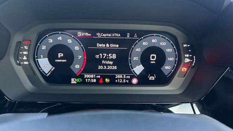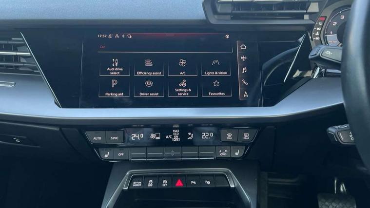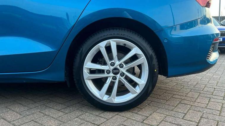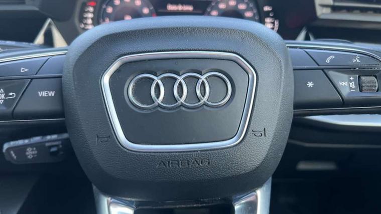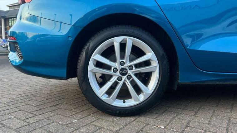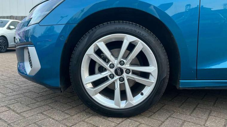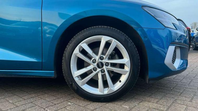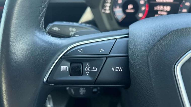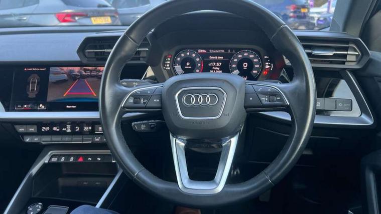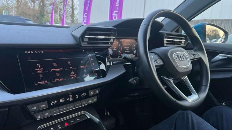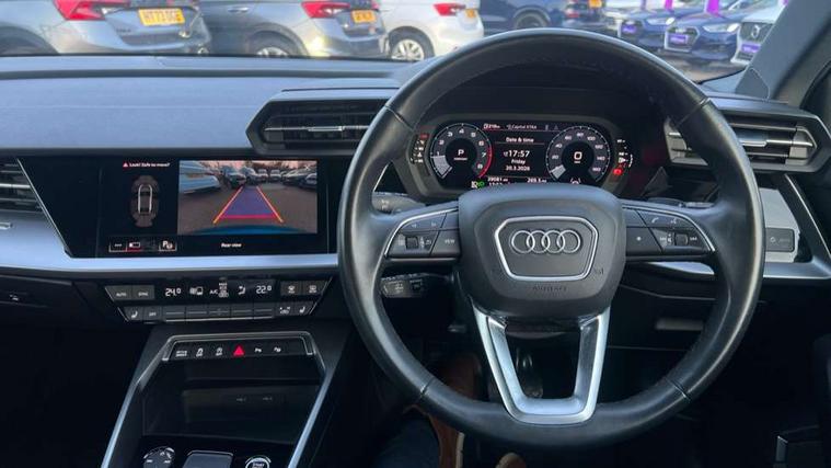 Audi connect emergency call and service, Audi drive select (Auto, Comfort, Dynamic, Efficiency and Individual), Audi smartphone interface, Audi Virtual Cockpit - 10.25" digital and colour instrument cluster, Automatic start/stop system with recuperation, Bluetooth interface, Camera based traffic sign recognition, Collision avoidance assistant, Electromechanical power speed sensitive steering, Lane departure warning system, MMI Navigation Plus with high resolution 10.1" colour touch screen display, Service indicator, Voice control system with natural language interaction, Standard suspension, 2x USB Type C ports (for charging and data transfer), 6 passive loudspeakers, CD player, DAB Digital radio, 3rd brake light, Acoustic glass windscreen, Aluminium window trim, Auto dimming frameless rear view mirror, Body colour exterior mirrors, Body colour roof spoiler, Electrically adjustable/heated/folding/auto dimming door mirrors with integrated LED indications + kerb view function for passenger side, Front electric windows, LED daytime running lights, LED headlights and halogen rear lights, Light and rain sensors, Model and engine designation badges at rear, Rear boot, Rear electric windows, Rear side wing doors, Rear window, rear door windows and rear side windows in clear glass, 12V socket and storage compartment in front centre console, 3 seat bench in 2nd row, 3 spoke leather multifunction steering wheel with gear shift paddles, 4 way electrically adjustable lumbar support for driver and front passenger, 60/40 split folding rear seat bench, Dual zone electronic climate control, Front and rear headrests, Front centre armrest, Front door sill trims with aluminium inlay, Front/rear floor mats, Height and reach adjustable steering wheel, Interior lighting - Front and rear roof module including reading lights, glove compartment light and right hand side, Interior lighting - glove compartment light and right hand side, Luggage compartment floor covering, Manual boot compartment lid, Manually adjustable front seats, Routine cloth upholstery with front sports seats, Seat side bolsters, Single front passenger seat, Steel grey cloth headlining, Aluminium interior elements pack - A3, LED interior lighting pack - A3 Saloon, Sport styling pack - A3 Saloon, 3x3 point rear seat belts, Driver and front passenger airbag with passenger airbag deactivation, Electronic Stabilisation Control (ESC) including ABS, ASR and EDL, First aid kit with warning triangle and 2 safety vests, Front side airbags with head airbags and interaction airbag, Pre-sense front with pedestrian and cyclist detection, Seatbelt monitoring, Tyre pressure loss indicator, Anti theft alarm, Anti-theft wheel bolts, Electronically operated child locks, Immobiliser, Remote control central locking, Aluminium air vent surrounds, Inlays with silk effect paint in platinum grey,
