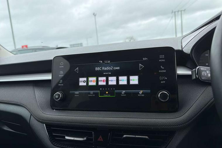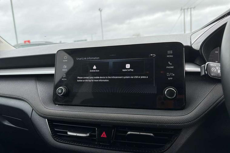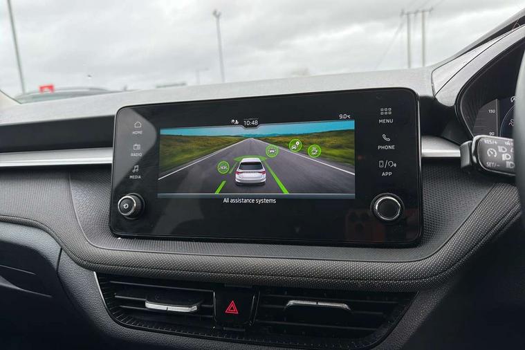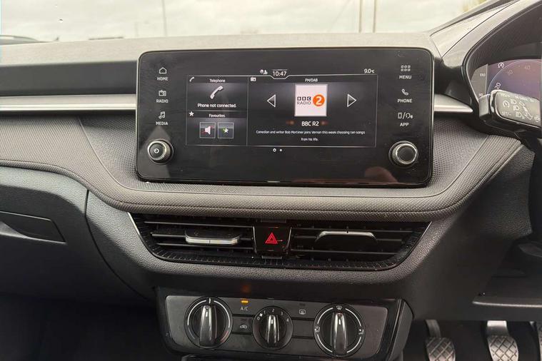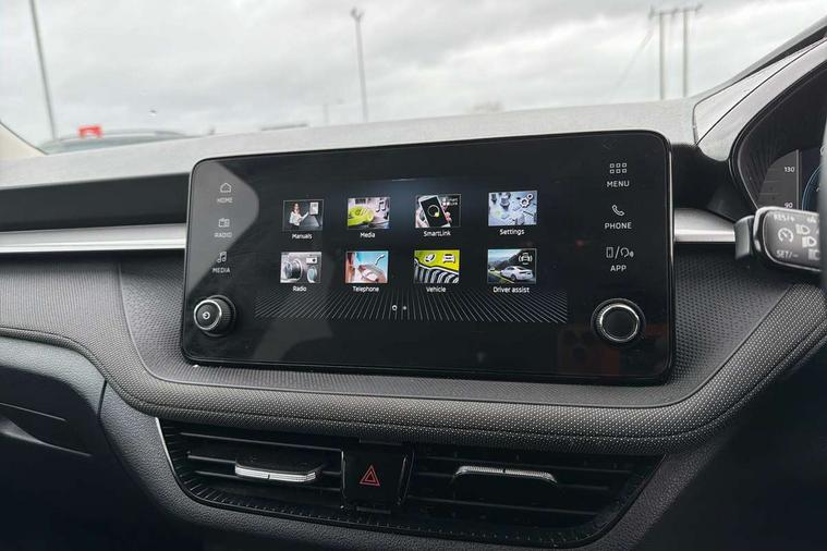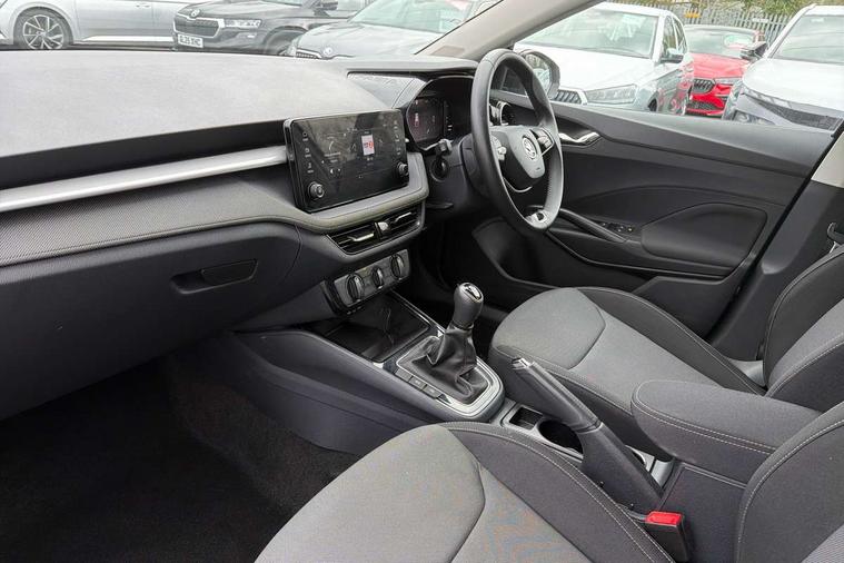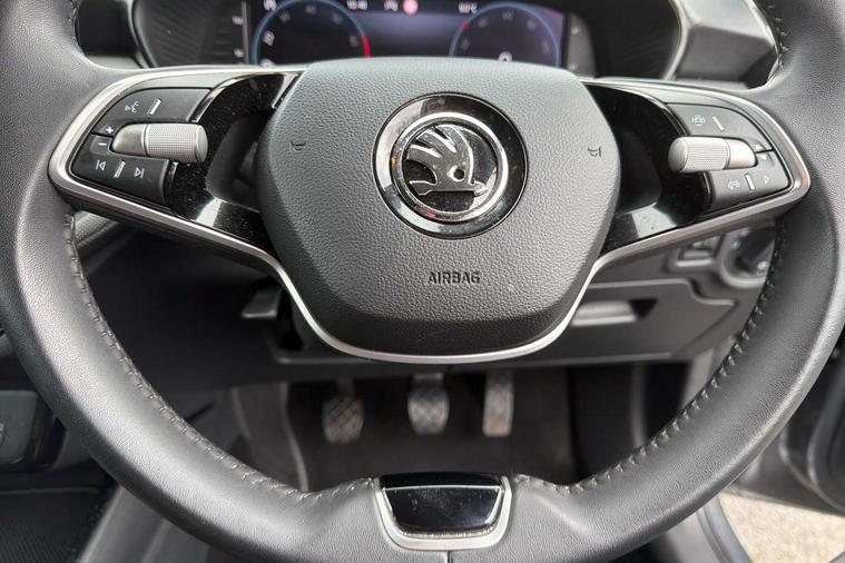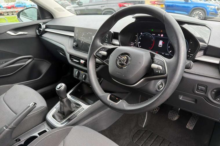 Advanced driver attention and drowsiness monitor, Bluetooth connection, Electromechanical power steering, Exterior temperature gauge, Service interval indicator, Traffic sign recognition, Virtual cockpit with 10.25" colour display, Wireless SmartLink for Apple CarPlay and Android Auto, 6 Speakers (4 in front and 2 in rear), Auxiliary socket for external MP3 player, DAB digital radio reception, Body coloured bumpers, Dimming rear view mirror with black frame, Door mirror integrated indicators, Front and rear electric windows, Front window wiper intermittent control, Headlight range control - Automatic, Ice scraper in fuel cap, LED daytime running lights with coming and leaving home feature, LED rear lights, Privacy glass, Rear LED fog light, Rear side wing doors, Rear window wiper with washing nozzles, Roof mounted spoiler, SKODA tailgate lettering in chrome, Third brake light, 2 reading lights in front and 2 reading lights in rear, 3 rear headrests, Backrest split and folding, Central console with removable cup holder and storage box, Chrome handbrake release button, Fabric upholstery, Front centre armrest, Gearshift knob/handle in leather, Grain satin black interior door handles, Hand brake lever handle in leather, Height adjustable front headrests, Height adjustable front seats, Height adjustable steering wheel, ISOFIX and TopTether anchorage points to the outer rear seats, ISOFIX and TopTether on the front passenger seat, Luggage compartment lighting, Manually adjustable lumbar support in front seats, Pollen filter, Rear seat bench unsplit, Single front passenger seat, Storm grey headlining, Sun visors with mirror and airbag label on passenger side, Textile floor mats, Ticket holder, Umbrella in drivers door, 3-point height adjustable front seats belts with pretensioner and force limiter, Automatic warning lights in case of crash, Driver and passengers airbag with switch off function, e-Call+, ESC including ABS, MSR, ASR, EDS, HBA and XDS, Front and rear seat belt warning, FRONT ASSIST (AEB City and AEB Inter Urban), Front side airbags, Head airbags, One tone horn, Pedestrian protection, Three rear 3-points safety seat belts with pretensioner and force limiter including stop function for outer rear seat belts, Tyre pressure monitoring system, Anti-theft alarm system including immobiliser, interior monitoring, backup horn, and towing protection, Central locking with radio remote control, interior controls, SAFE function and 2 foldable keys, Colour Edition air vents, Grain satin black central console cover, Metallic grey upper decorative trim, Satin black door and side trim panel in front, Textile Kota grey lower decorative inserts, Anti-theft wheel bolts protection, Super-low rolling resistance tyres,