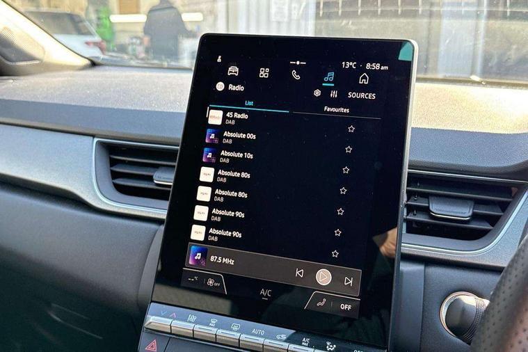 10.25" digital driver display, 10.4" OpenR link touchscreen with with built in Google Automotive Services and navigation, Adaptive cruise control with speed limiter, Driver attention alert system, Driver drowsiness alert system, e-Call automatic emergency assist, Emergency lane keep assist including solid line, oncoming traffic and road edge detection, Engine start button, Front and rear parking distance sensors, Front safe stopping distance warning, Intelligent speed assistance include traffic sign recognition with speed alert, Lane departure warning system, Multisense with 4 driving modes and upto 48 ambient lighting colours, Navigation system with built in google maps, Outside temperature display, Performance mode selector - multisense 4 driving modes (sport, comfort, perso and eco), Power assisted steering, QR code fireman access for technical information, Rear view camera, Service interval indicator, Side parking sensors, Trip computer, Voice control for navigation system with built in google assistant, Wifi smartphone integration compatible with Apple CarPlay and Android Auto, Wireless phone charger, Speed limiter 111mph, 2 front USB-C ports, 2 rear USB-C ports, 6 speakers inc 2 boomer + 2 tweeter + 2 bicone, DAB radio with Bluetooth, 2 reversing lights, Auto dimming rear view mirror with light and rain sensor - black, Automatic front wipers with rain sensors, Automatic headlights, Automatic high/low beam, Body colour door handles, Body colour F1 blade, Body coloured bumpers, Body coloured door mirrors, Chrome around front air deflectors, on front wing deco element and window lining, Dark tinted glass in rear windows and tailgate, Drivers one touch window with anti-pinch feature, Electrically folding door mirrors, Flush and longitudinal roof bars, Front and rear electric windows, Full LED front and signature rear lights, Heated door mirrors, Heated rear windscreen, LED daytime running lights, LED high level brake lights, LED rear fog lights, LED turn indicators on door mirrors, Radiator grille with 3D graphic black upper part with body tone graphics, Rear side wing doors, Rear wiper, Shark fin antenna, 12v power outlet - front, 2 front roof LED lights and central rear roof light with 3 reading LED lights, 3 bench rear seats in 2nd row, Automatic air conditioning with one touch demist function and air quality regulator, Flying console with central storage, sliding armrest and 2 rear air vents, Front head restraints, Glovebox, Heating system with pollen filter, Height adjustable driver's seat, Height adjustable passenger seat, Height/reach adjust steering wheel, ISOFIX child seat fixing points on rear outermost seats, Marled fabric upholstery, Modular boot floor, Multifunctional steering wheel, Rear head restraints, Rear seats - 1/3:2/3 foldable sliding bench, Single front passenger seat, Sunvisor with mirror and light, Synthetic leather steering wheel, 3 rear seatbelts, ABS+EBA, Active emergency braking system - Urban, pedestrian/cyclist with junction function, Collision avoidance braking, Distance warning alert, Driver and front passenger airbags, Driver and front passenger and 3 rear passengers seatbelt reminder, Driver height adjustable seat belt, Electric parking brake with auto hold function, Electronic stability control, Front dash warning indicator in case of heavy braking, Front driver and passenger side airbag deactivation, Hill start assist, Manual passenger airbag deactivation function, My safety shield - ability to personalise ADAS features at press of a button, Outer rear safety seat belts, Rear door and window child locking function for rear door, Side airbags, Tyre pressure warning light, Vehicle sound for pedestrians, Alarm, Hands free keycard with Keyless access and start, Immobiliser, Locking fuel cap, Locking wheel nuts, RAID (Renault Anti-Intruder Device) automatic door locking, Remote central locking, Superlocking, Black soft touch dashboard, Granite grey decorative upper strip, 18" Black hole alloy wheels,