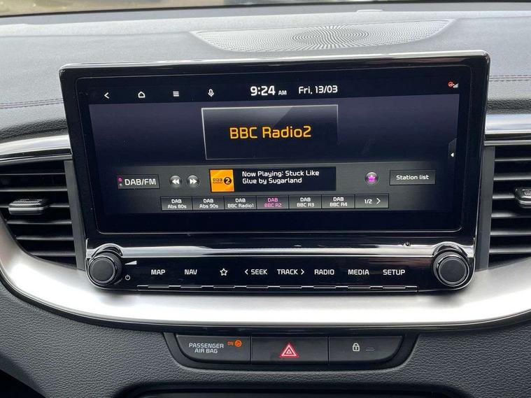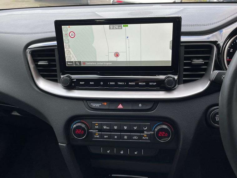 10.25" touchscreen satellite navigation, 4.2" supervision colour cluster display, Apple car play/Android Auto with voice control, Bluetooth with Voice Recognition & Music Streaming, Drive mode select (Normal and Sport), Driver attention warning + (DAW) with leading vehicle departure warning, Emergency call service, Emergency stop signalling system, Forward Collision-Avoidance Assist (FCA) - City/Pedestrian/Cyclist, Kia connect UVO, Lane Following Assist (LFA), Lane keep assist, Manual speed limit assist, Motor driven power steering, Rear parking sensor, Reversing camera system with dynamic guidelines (Integrated into centre fascia screen), Smart cruise control with stop/go functionality, Trip computer, Intelligent Stop and Go, 6 speaker audio system, DAB Radio with MP3, Illuminated USB ports, Steering wheel mounted controls, USB Fast Charger in Front Centre Console, USB type A port, All-round Electric Windows with Front Auto Up & Down Function, Auto dimming rear view mirror, Automatic defog system, Automatic headlights control, Body colour bumpers, Body colour door mirrors, Body colour exterior door handles, Body colour rear roof spoiler, Chrome window surround, Electric adjustable/heated/folding door mirrors with LED Indicators, Heated rear window with timer, High beam assist, High gloss black and white chrome coated radiator grille, LED daytime running lights, LED front fog lights, LED Headlights, LED High-mounted Brake Light, LED rear combination lights, Privacy glass (rear side windows and tailgate), Rain sensing front wipers, Rear side wing doors, Rear wash/wipe, Roof rails, Tinted glass, Wide view drivers door mirror, Windscreen Washer Level Warning, 1 x Front 12V socket, 12V power socket in luggage compartment, 3 seat bench in 2nd row, 3 x passenger assist grips, 60/40 split folding rear seat, All-round height adjustable headrests, Centre console storage box/armrest, Cloth upholstery with faux leather bolsters, Cupholders in centre console, Cupholders in rear armrest, Dash illumination dimmer switch, Door courtesy lamps, Driver & Front Passenger Sunvisors with Vanity Mirror Illumination & Ticket Holder, Driver + front passenger electric lumbar support, Driver's seat height adjuster, Dual Height Luggage Area Floor, Dual zone automatic air conditioning, Faux leather door centre trim, Front and rear door storage, Front cabin map light with sunglasses case, Front Passenger Seat Height Adjuster, Front seat back pockets, Heated front seats, Heated steering wheel, Interior door lock/unlock function, ISOFIX Child seat top tethers and anchor fixings, Leather handbrake, Leather trimmed steering wheel, Luggage area light, Luggage area parcel shelf, Luggage hooks, Rear centre armrest, Rear coat hooks, Single front passenger seat, Tilt/telescopic adjustable steering wheel, All round 3-point seatbelts, Anti-lock braking system (ABS), Brake assist system, Dual front side airbags, Dual horn, EBD - Electronic brakeforce distribution, Electronic parking brake, Electronic stability control (ESC) and vehicle stability management (VSM), Front passenger airbag cut-off switch, Height adjustable front seatbelts, Hill start assist control (HAC), Impact sensing auto door unlocking, Rear door child safety locks, Seatbelt reminder warning, Twin curtain airbags, Twin front airbags, Tyre pressure monitoring system, Alarm system, Engine Immobiliser & Deadlocks, Engine Start/Stop Button with Smart Entry System, Locking wheel nuts, Speed sensitive auto door locking, Satin Chrome Fascia Trim, 17" Alloy wheels, Tyre mobility kit,