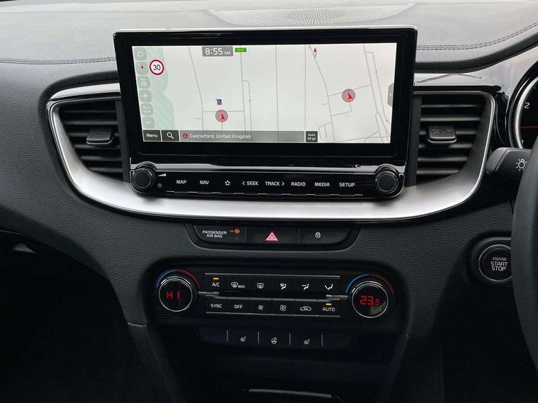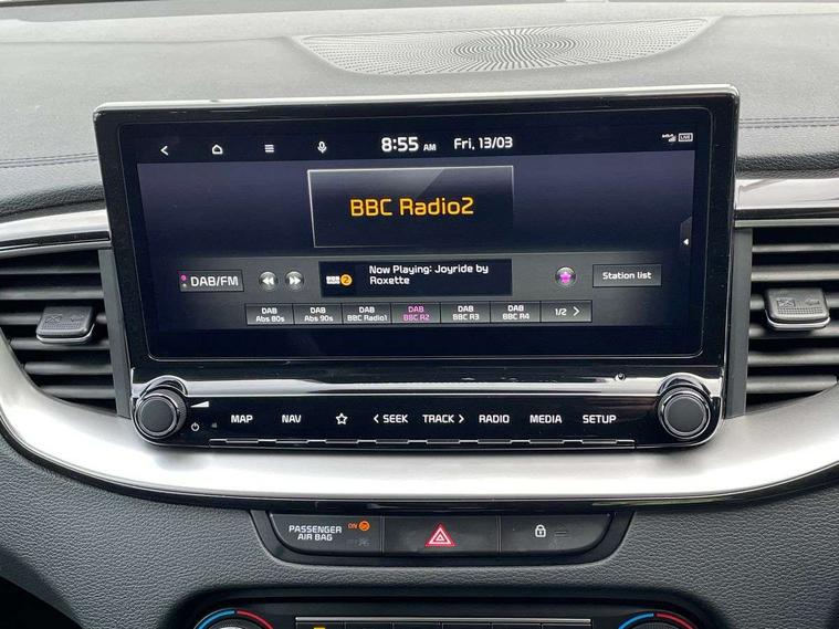 10.25" touchscreen satellite navigation, 4.2" supervision colour cluster display, Apple car play/Android Auto with voice control, Bluetooth with Voice Recognition & Music Streaming, Drive mode select (Normal and Sport), Driver attention warning + (DAW) with leading vehicle departure warning, Emergency call service, Emergency stop signalling system, Forward Collision-Avoidance Assist (FCA) - City/Pedestrian/Cyclist, Kia connect UVO, Lane Following Assist (LFA), Lane keep assist, Manual speed limit assist, Motor driven power steering, Rear parking sensor, Reversing camera system with dynamic guidelines (Integrated into centre fascia screen), Smart cruise control with stop/go functionality, Trip computer, Intelligent Stop and Go, 6 speaker audio system, DAB Radio with MP3, Illuminated USB ports, Steering wheel mounted controls, USB Fast Charger in Front Centre Console, USB type A port, All-round Electric Windows with Front Auto Up & Down Function, Auto dimming rear view mirror, Automatic defog system, Automatic headlights control, Body colour bumpers, Body colour door mirrors, Body colour exterior door handles, Body colour rear roof spoiler, Chrome window surround, Electric adjustable/heated/folding door mirrors with LED Indicators, Heated rear window with timer, High beam assist, High gloss black and white chrome coated radiator grille, LED daytime running lights, LED front fog lights, LED Headlights, LED High-mounted Brake Light, LED rear combination lights, Privacy glass (rear side windows and tailgate), Rain sensing front wipers, Rear side wing doors, Rear wash/wipe, Roof rails, Tinted glass, Wide view drivers door mirror, Windscreen Washer Level Warning, 1 x Front 12V socket, 12V power socket in luggage compartment, 3 seat bench in 2nd row, 3 x passenger assist grips, 60/40 split folding rear seat, All-round height adjustable headrests, Centre console storage box/armrest, Cloth upholstery with faux leather bolsters, Cupholders in centre console, Cupholders in rear armrest, Dash illumination dimmer switch, Door courtesy lamps, Driver & Front Passenger Sunvisors with Vanity Mirror Illumination & Ticket Holder, Driver + front passenger electric lumbar support, Driver's seat height adjuster, Dual Height Luggage Area Floor, Dual zone automatic air conditioning, Faux leather door centre trim, Front and rear door storage, Front cabin map light with sunglasses case, Front Passenger Seat Height Adjuster, Front seat back pockets, Heated front seats, Heated steering wheel, Interior door lock/unlock function, ISOFIX Child seat top tethers and anchor fixings, Leather handbrake, Leather trimmed steering wheel, Luggage area light, Luggage area parcel shelf, Luggage hooks, Rear centre armrest, Rear coat hooks, Single front passenger seat, Tilt/telescopic adjustable steering wheel, All round 3-point seatbelts, Anti-lock braking system (ABS), Brake assist system, Dual front side airbags, Dual horn, EBD - Electronic brakeforce distribution, Electronic parking brake, Electronic stability control (ESC) and vehicle stability management (VSM), Front passenger airbag cut-off switch, Height adjustable front seatbelts, Hill start assist control (HAC), Impact sensing auto door unlocking, Rear door child safety locks, Seatbelt reminder warning, Twin curtain airbags, Twin front airbags, Tyre pressure monitoring system, Alarm system, Engine Immobiliser & Deadlocks, Engine Start/Stop Button with Smart Entry System, Locking wheel nuts, Speed sensitive auto door locking, Satin Chrome Fascia Trim, 17" Alloy wheels, Tyre mobility kit,