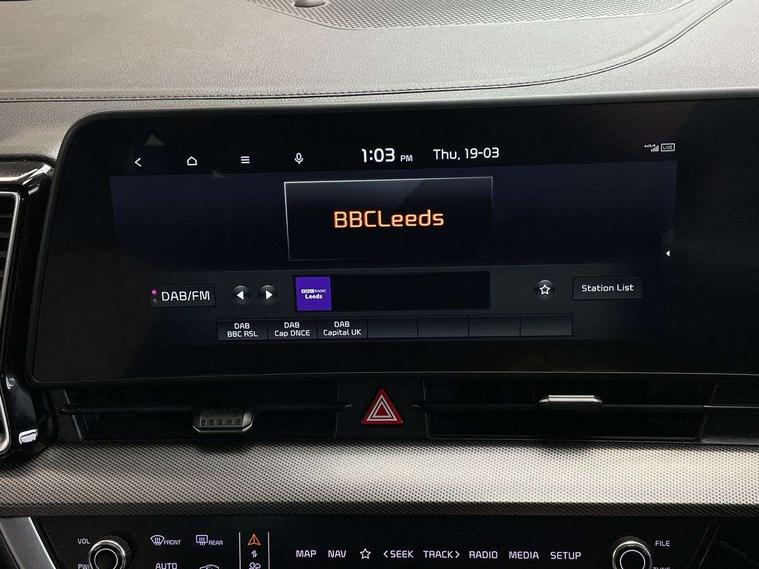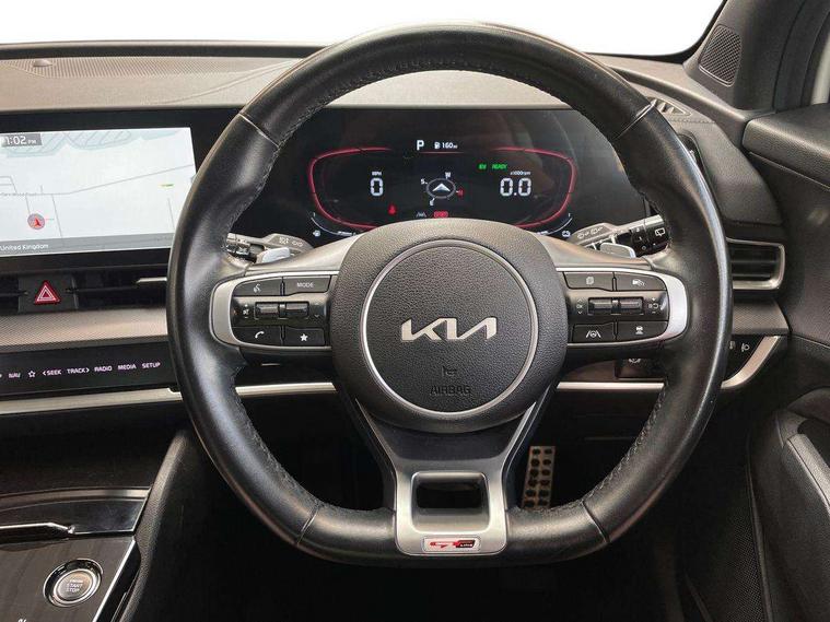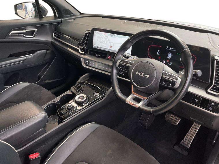 12.3" Display with navigation, 4.2" supervision colour cluster display, Apple car play/Android Auto with voice control, Drive mode selector, E-call, Forward collision avoidance assist (FCA) - city/pedestrian/cyclist/junction covering, Front and rear parking sensors, Highway Driving Assist (HDA), Intelligent speed limit assist, Kia Connect (UVO), Lane Following Assist (LFA), Lane keep assist, Low washer fluid warning, Rear view monitor, Reversing camera system integrated into centre fascia screen, Smart cruise control with stop and go functionality, Speed sensitive power steering, Trip computer, Windscreen washer level indicator, Intelligent Stop and Go, 6 speaker audio system, Bluetooth audio streaming, DAB Radio with MP3, Rear USB port, Steering wheel mounted audio controls, USB C type charging ports on centre console, USB C type charging ports on side of front seats, USB port for connection of a media device, All round electric windows with drivers and front passenger auto up/down function, Automatic headlight control system, Automatic window defogger, Backlite glass heated with timer, Black bumpers, Body colour exterior door handles, Body colour radiator upper garnish and door garnish, Electrically adjustable/heated/folding door mirrors with LED indicators, Front and rear chrome skid plates, Gloss black door mirrors, Gloss black radiator grille, Gloss black side sill and wheel arch body mouldings, Glossy black roof rack, High beam assist, Interior electrochromic mirror, LED daytime running lights, LED front fog lamps, LED headlamps (low and high beam - MFR type), LED High mounted stop light, LED rear combination lamp, Rain sensing wipers with aero blades, Rear fog lamp, Rear privacy glass, Rear side wing doors, Rear spoiler, Rear wiper, Satin finished beltline, Silver coloured inserts to bumpers, Tinted rear glass, Trailer stability assist, 12V power socket in front centre fascia and luggage compartment, 2nd row personal lamps, 3 seat bench in 2nd row, 3 x passenger assist grips, 40/20/40 split folding rear seat, All-round height adjustable headrests, Black headlining, Centre console storage box, Cupholders in rear armrest, D-Shaped sports leather steering wheel and perforated inserts with GT-Line logo, Door courtesy lamps, Drink holder at centre armrest, Driver and front passenger side sunvisors with illuminated vanity mirrors, Driver's seat manual height adjust, Drivers seat power lumbar support, Front and rear door storage, Front seat and rear pockets, Front/rear centre armrests, Gear shift indicator, Glovebox illumination, Heated front seats, Heated steering wheel, Interior door lock/unlock function, ISOFIX Child seat top tethers and anchor fixings outer rear seats, Luggage area light, Luggage area load cover, Luggage net with hooks, Metal paint interior door handles, Overhead console lamp, Paddle shift controls, Rear cabin light, Rear coat hooks, Single front passenger seat, Sports pedals, Suede leather upholstery, Three zone climate control, Tilt/telescopic adjustable steering wheel, Ventilation ducts to rear compartment, Active front headrests, All round 3-point seatbelts, Anti-lock braking system (ABS), Dual front side airbags, Dual horn, Electronic parking brake, Electronic stability control with downhill brake control, Front passenger airbag cut-off switch, Front seatbelt pretensioners + load limiters, Height adjustable front seatbelts, Hill start assist control (HAC), Impact sensing auto door unlocking, Multi collision brake assist, Rear door child safety locks, Rear seat alert system, Traction control, Twin curtain airbags, Twin front airbags, Tyre pressure monitoring system, Advanced anti-theft system including immobiliser and alarm, Door deadlocks, Engine Start/Stop Button with Smart Entry System, Locking wheel nuts, Speed sensitive auto door locking, Visible vehicle identification number, Aluminium pattern finish centre fascia and door garnish, 18" GT-Line alloy wheels, Tyre mobility kit,