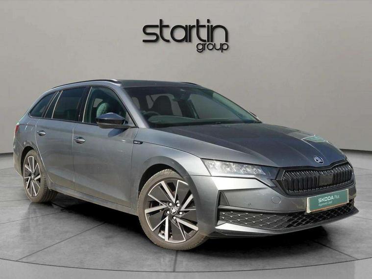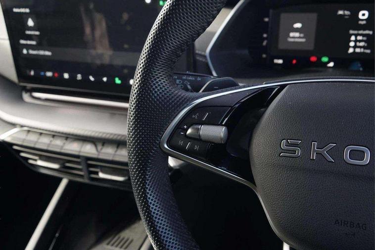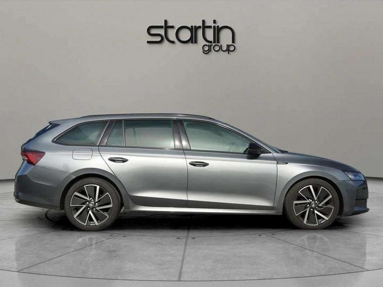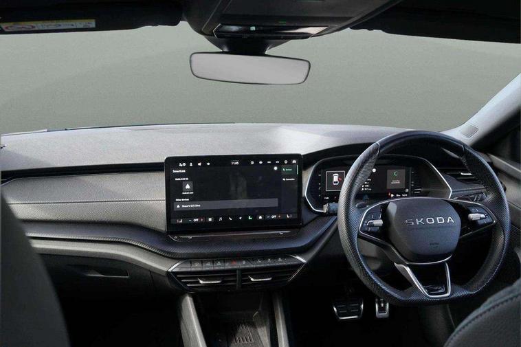 1x USB Typc C port in rear view mirror, 4x USB Type C ports - 2x in front centre console and 2x in rear (45W), Drive mode selection, Driver fatigue sensor, eCall emergency system, Front assist system, Progressive dynamic steering, Traffic sign recognition, Turn Assist, Virtual Cockpit - 10.25" digital display, Voice control system, Wireless charging (15W) with cooling function, Wireless SmartLink for Apple CarPlay and Android Auto, Sports suspension with 15mm lower, 13" touchscreen display with navigation, DAB Digital radio, Aero front windscreen wipers with intermittent function, Auto dimming rear view mirror, Body colour bumpers, Body colour door handles, Chrome strip in lower front bumper, Electric front and rear windows, Exterior gloss black sports styling including front grille, window surrounds, door mirrors and badging, Gloss black diffuser, Gloss black roof rails, Gloss black spoiler, Heated rear windscreen, High beam control, High level third brake light, Ice scraper in fuel cap, LED daytime running lights, Logo projection in front doors, Rain and light sensors, Rear fog light on one side and reversing lights on both sides, Rear privacy glass, Rear side wing doors, Rear window wiper, 12 volt socket in boot, 3 rear headrests, 3 seat bench in 2nd row, 4 foldable roof handles, Aluminium pedals, Electric auxiliary air heater, Front head restraints, Front sport seats, Heated front seats, Illuminated glovebox, Interior door handles in dark chrome, Jumbo Box storage, Luggage compartment lighting x2 lights, Mechanical rear seat release from boot, Single front passenger seat, Steering wheel in black leather with black stitching, Storage compartments in left and right of boot, Sun visors with mirrors, Sunglasses storage, Three spoke leather sports multifunction steering wheel with paddles, Ticket holder, Umbrella in door panel, Unsplit rear bench seat, split folding backrest with centre armrest with cupholder, SportLine Design Selection pack - Octavia, 3x3 point rear seat belts, Alarm with interior monitoring, tilt sensor and back up horn, Curtain airbags and front side airbags, Driver and front passenger airbags, Drivers knee airbag, Electronic parking brake, ESC including ABS, EBV, MSR, ASR, EDS, HBA, DSR, Front central airbag, Hill hold assist, ISOFIX on front passenger seat and outer rear seats, Passenger airbag deactivate switch, Three point seat belts in front and rear, Two tone horn, Tyre pressure monitor, Visual and acoustic seat belt reminder, Warning reflectors in front door, Anti-theft wheel bolts, Keyless entry and start/stop, Remote central locking, Gloss black air vent surrounds,