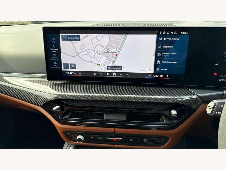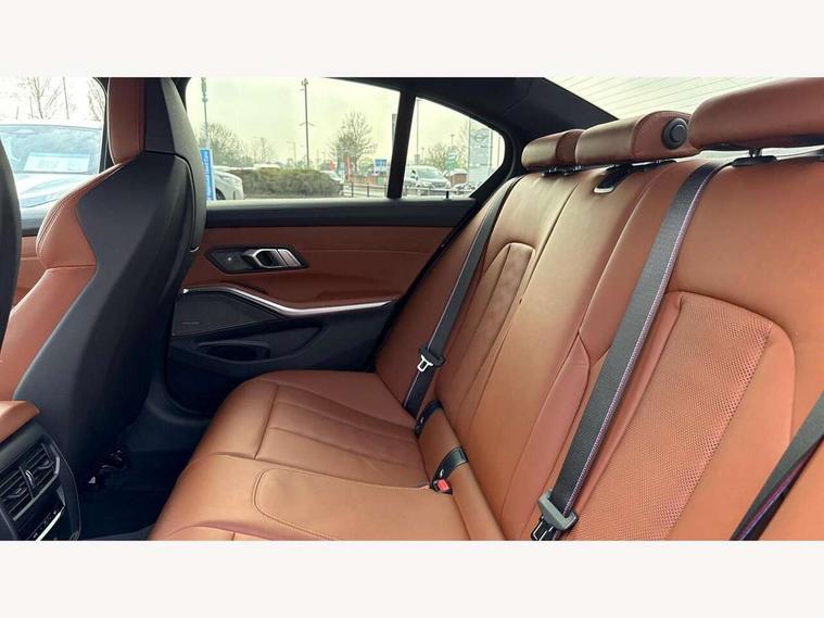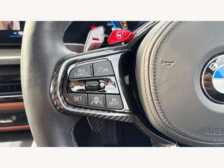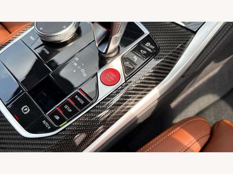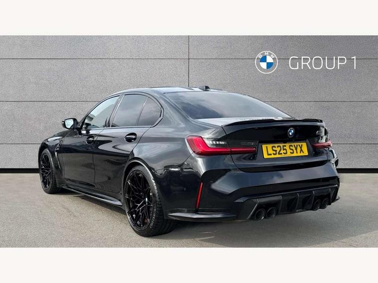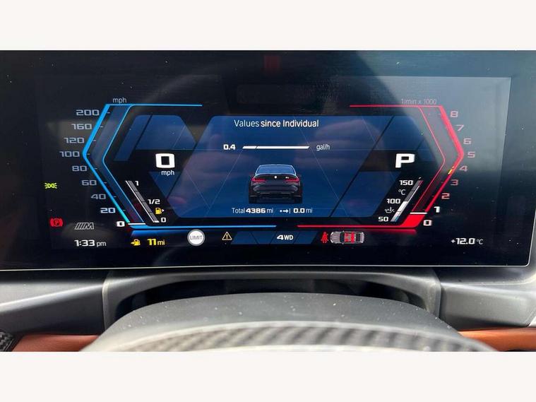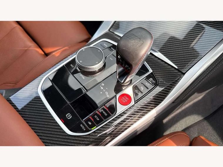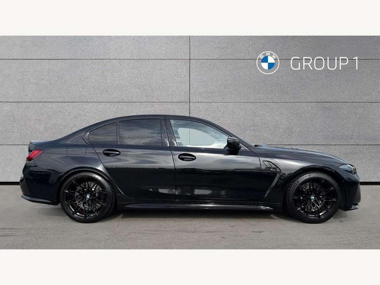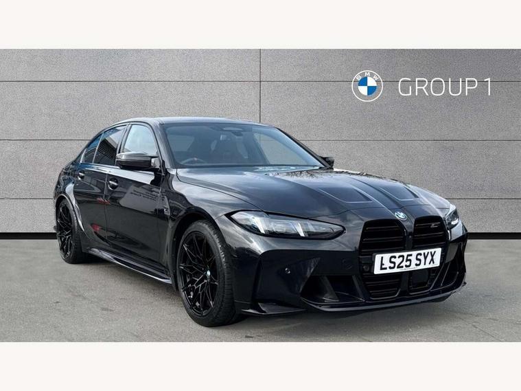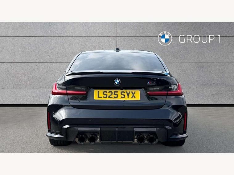 Active Guard, Automatic start/stop system, BMW ConnectedDrive online services, BMW legal emergency call, BMW Live Cockpit Pro with Head up display including 12.3" instrument display and 14.9" high resolution control display with navigation function, BMW Teleservices, Brake pad wear indicator warning light, Condition based service, Cruise control with braking function, Door/boot open warning light, Electric Power Steering (EPS) with Servotronic, Language version English, Lights on warning, M drive buttons, Oil sensor for level and grade, warning by check control system, Oil temperature gauge, On board computer, On board diagnostics, Optimum shift indicator, Outside temperature display, Park distance control, Pull away assistant, Run flat indicator, Service interval indicator, Shifting point display, Smartphone integration, Speed limiter, Start/stop button in red, Variable sport steering, Double joint spring strut front axle, Electronic differential lock control (EDLC), M Adaptive suspension, M Drive Professional including track mode, laptimer, traction control & Drift analyser, M Sport differential, Safety battery terminal clamp, Sport automatic transmission with gearshift paddles, Auxiliary point for auxiliary devices, DAB radio with bluetooth music capability, Harman kardon surround sound audio system, Personal eSim, Auto dimming driver's door mirror, Automatic headlights + automatic windscreen wipers, Automatic parking function on front passenger's exterior mirror, Black chrome exhaust tailpipes, Black model designation badges, BMW high gloss shadow line with extended contents, BMW radiator grille, frameless, with horizontal double blind slats, black high-gloss, with model badge, Body colour bumpers, Bonnet and tailgate badge, Carbon fibre reinforced plastic (CFRP) roof, Day time running light, Door mirror integrated indicators, Door sill finishers with aluminium inserts, Dynamic brake lights, Electric adjustable heated door mirrors, Electric folding door mirrors, Electrochromic exterior driver side mirror, Electrochromic interior rear view mirror with automatic anti-dazzle function, Entry sills with aluminium inserts and model badge, Follow me home headlights, Front and rear bumper system, Front and rear plastic apron in vehicle colour, Front door sill strips in aluminium inlays with M3 inscription, Front electric windows with open and close fingertip control, anti trap facility and comfort closing, Headlight beam throw control, Heat protection, sun protection glazing, Heated washer jets, High gloss black lower bumper edges, side sills and diffuser edge binding, LED 3rd brake light, LED tail lights with 3D L-shaped LED light design, M designation, Mirror glass aspheric on driver's side, convex on passenger side, Rain sensor, Rear boot, Rear fog lights, Rear reflectors, Rear side wing doors, Reversing light, Roof fin and roof trim strips in Black high-gloss, Shark fin roof aerial, Strakes in front side panel, black matt/high-gloss black, with model badge, Visible VIN plate, Welcome lighting, 2 cupholders in front centre console, 2 cupholders in rear armrest, 2 rear head restraints, 2 x 12 V Power sockets (luggage compartment and front centre console), 2 x USB Type C ports for charging and data transmission in front centre console, 3 seat bench in 2nd row, 40:20:40 split folding rear seat with loading system, Ambient inside door handle light, Ambient lighting for storage compartment, Ambient lighting front and rear, Anthracite headlining, Battery in luggage compartment, Centre console armrest with storage compartment, Contour lighting for door trim, Driver/passenger sunvisors with ticket holders + illuminated vanity mirrors, Driving experience mode switch, Dual zone automatic air conditioning, Dynamic ambient interior lighting, Electric front seats + driver memory, English handbook, Floor mats in velour, Front and rear door exit lights, Front door storage bins with bottle holder, Front footwell ambient lighting, Front interior light, Front isofix attachment + airbag deactivation, Front reading light, Front seat backrest width adjustment, Front/rear door armrests, Heated front seats, Height adjustable front headrests, Illuminated bow-type door handles in vehicle colour, driver's side with door lock, Interior mirror lighting, Isofix on 2nd row outer seats, Lockable/illuminated glovebox, Luggage compartment lighting, Multifunction steering wheel, Rake/reach adjustable steering wheel, Single front passenger seat, Storage compartment in rear doors, Storage tray and compartment with cover in centre console, Through loading system, Toolkit located in luggage compartment, Waterfall lighting for central air vent, Wireless charging tray, Connected package professional - M3, Extended storage pack - M3/M4, High gloss shadowline exterior trim pack - M3, 3 point seatbelts on all seats, ABS/EBD, Automatic Stability Control (ASC), Brake energy regeneration, Brake fade compensation, Compound structure brake discs, Cornering brake control (CBC), Crash sensor, Curtain airbags, Driver/Front Passenger airbags, Dry braking, Dynamic brake control, Dynamic stability control + (DSC+), Dynamic Traction Control - DTC, Electromechanical parking brake, Front and rear head airbags, Front seat side impact airbags, Front seatbelt pretensioners + load limiters, Hill start assist, M Sport seat belts, Rear child proof door locks, Seat occupancy detection for driver and passenger side, Seatbelt warning, Side impact protection, Two tone horn, Tyre pressure sensor, Warning triangle and first aid kit, Centre lock switch, Closing system with central locking, Electronic immobiliser, Locking wheel bolts, Remote central locking, Thatcham cat 1 remote alarm, Vehicle Key with 4 buttons including the integrated key, Galvanic embellisher for controls, Tyre repair kit,