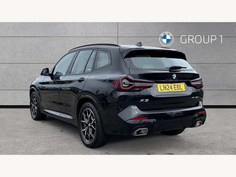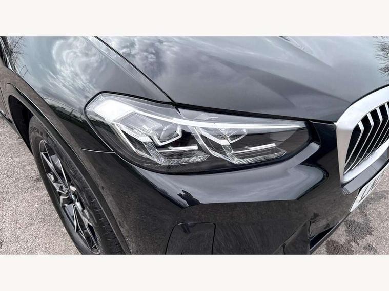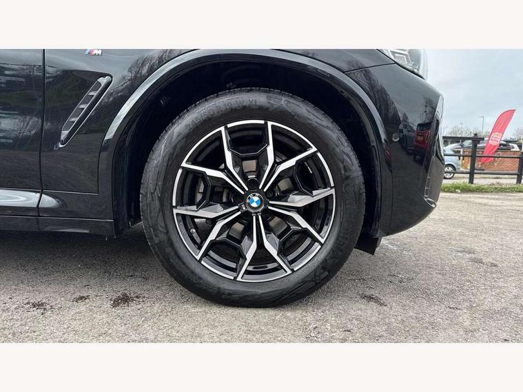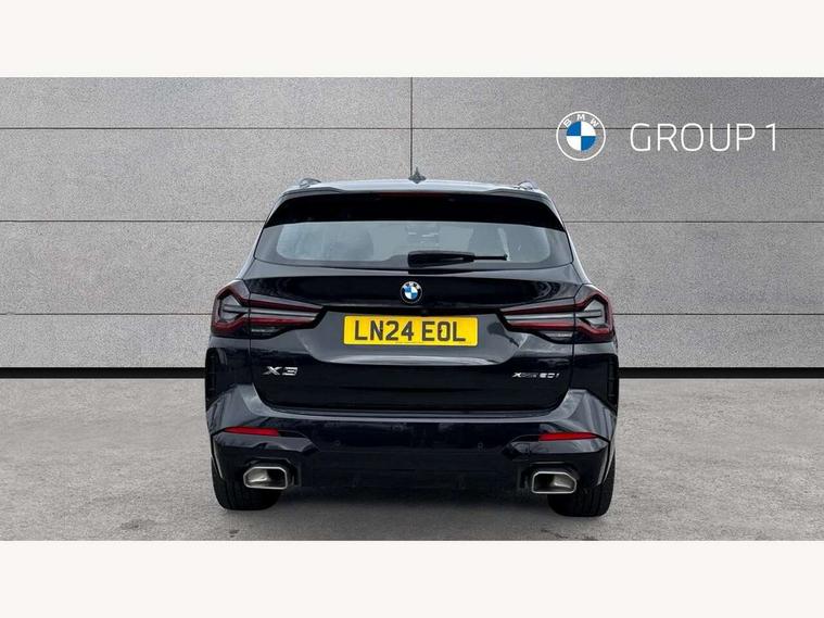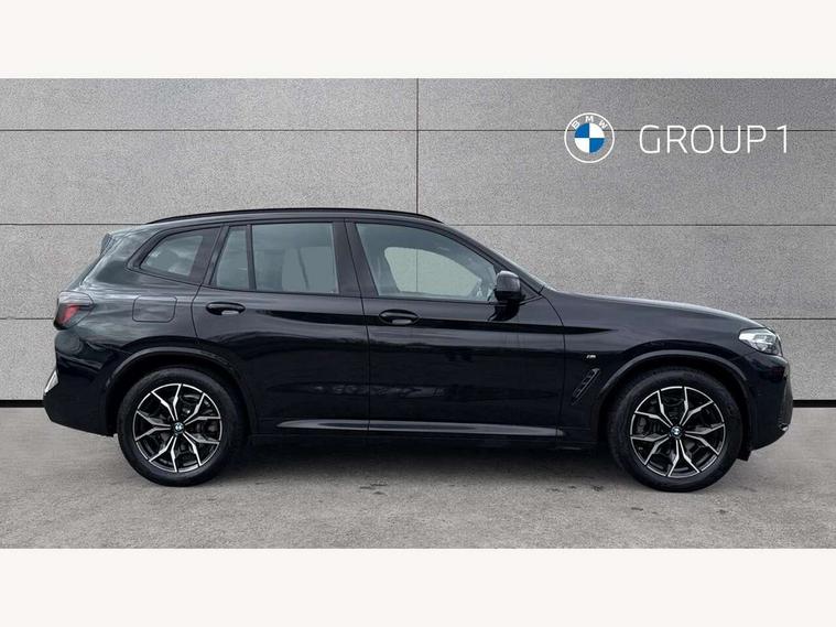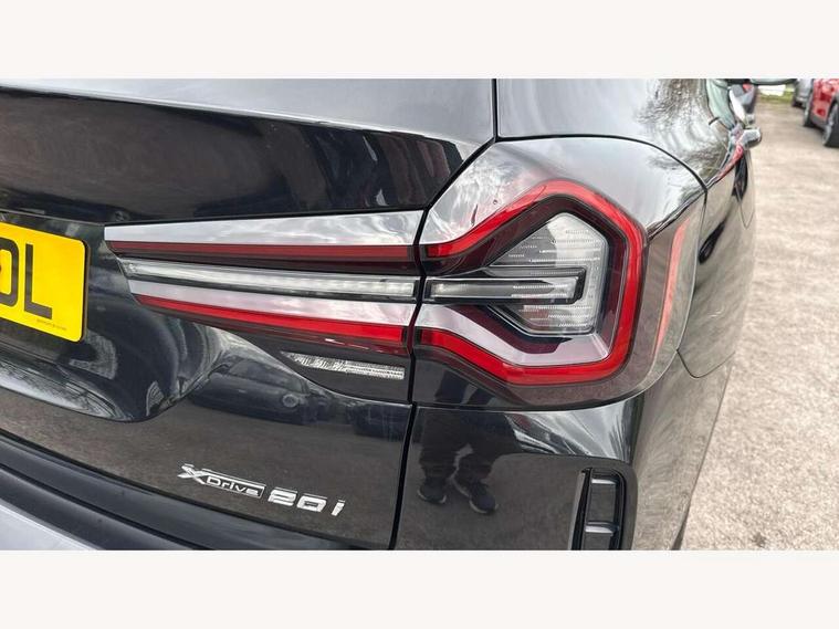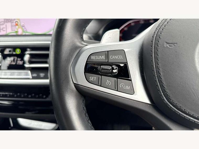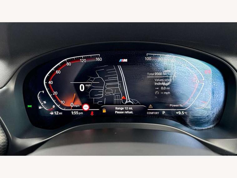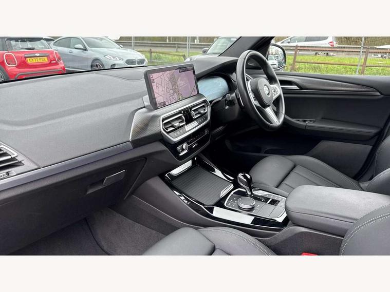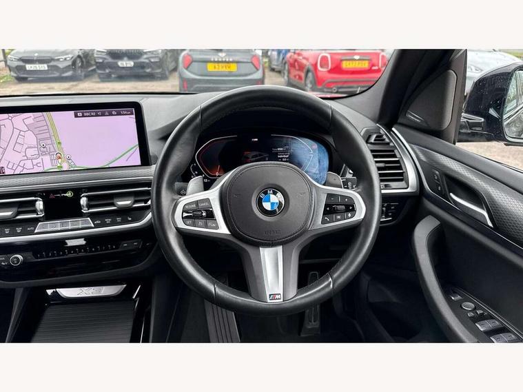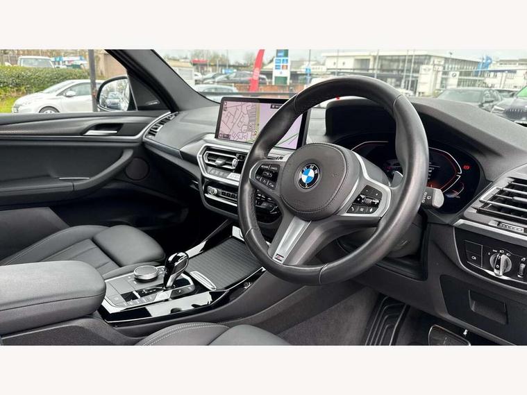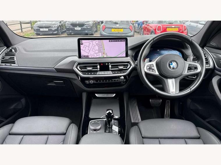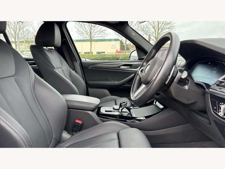 Active Guard, Attentiveness assist, BMW Live Cockpit Professional nav system including 12.3" instrument display + 12.3 high resolution control display, BMW Online services, BMW Teleservices, Brake pad wear indicator in front and rear, Check Control warning system for monitoring of lights and door/luggage compartment open warning, Condition based service - BMW service history, electronic service booklet, integrated owner's handbook, Connected drive services, Electric boot lid, Front/rear Parking distance control, iDrive touch controller with 8 favourite buttons, Instrument cluster with speedometer with mph readout, tachometer, fuel gauge and oil temperature gauge, Lights on warning by audio warning signal when ignition is switched off, Oil sensor for level and grade, warning by check control system, On board computer - average speed+fuel consumption, service interval, clock/date, odometer/trip meter, outside temperature display and ice warning, Optimum shift indicator, Personal Profile - automatic lock when driving away selectable, Run flat indicator, Stop/start system, Variable sports power steering with drive performance control Sport+ mode, Automatic transmission with gearshift paddles, Incorrect fuelling protection, M sport suspension, Multi-link rear suspension, BMW professional radio/CD/MP3, DAB tuner, Acoustic glazing, Automatic windscreen wipers and automatic headlight, Black finish on B pillars, Body colour door handles, Body colour electric adjust heated aspherical door mirrors, Body colour roof mouldings, Body coloured bumpers, Direction indicator, side repeaters, integrated in exterior mirrors, Dynamic brake lights, Exhaust tailpipes - dual, round, split left and right with chrome finisher, Fingertip control / anti-trap function on electric window, Folding wing mirrors with auto dimming, Follow me home headlights, Front and rear bumper system with replaceable deformation elements, Front and rear electric windows, Gloss chrome tailpipes finishers, Green tinted heat insulating glass, Heated windscreen washer jets, High beam assistant, High gloss black shadow line roof rails, High gloss shadowline exterior trim in decorative moulding side frame/recess cover/guide rail/B, C pillars/mirror frame and triangle with mirror base, High level 3rd brake light incorporating LED Technology, Interior rear view electrochromatic mirror with automatic anti dazzle function, LED tail lights, Lightweight engineering, M aerodynamic bodystyling, M Sport entry door sill strips, Model designation, Rain sensor, Rear side wing doors, Rear wing door, Rear wiper, Shark fin antenna, Side exterior M designation badges, Visible VIN plate, Welcome lighting, Windscreen wipers with adjustable interval, 12V power point in luggage area, 12V power socket in front centre console, 2 x USB Type C ports for charging and data transmission (front centre console) and 2 x USB Type C ports for charging (rear centre console), 3 rear headrests, 3 seat bench in 2nd row, 3 zone automatic air conditioning, 4 lashing points to secure luggage, 40:20:40 split folding rear seat with loading system, Ambient lighting, Anthracite headlining, Automatic interior light when door is opened/ignition switched off or via remote key, Floor mats in velour, Foldable storage floor with compartment, Four grab handles integrated in roof lining, Front and rear bottle holders integrated into door trim storage compartments, Front and rear side armrests integrated into door trim, Front centre armrest with storage compartment, Front footwell lights, Front head restraints, Front passenger seat, Front sports seats, Front/rear courtesy lights with soft on/off dimming, Front/rear reading lights, Heated front seats, Isofix rear child seat preparation, Leather gear knob, Lockable glove compartment, Luggage area underfloor compartment, Luggage compartment lighting, M sport leather steering wheel, Multifunction steering wheel, Parcel shelf removeable and storable under boot floor, Reach and rake adjustable steering column, Rear centre armrest with 2 cupholders, Removable / retractable luggage cover, Slope adjustable rear seats, Storage compartment in rear centre console and front/rear door trims, Sun visors with vanity mirrors and ticket pocket, Toolkit located in luggage compartment, Two front cupholders with removable oddments tray/lid, Connected pro pack - X3, ADB - Automatic Differential Brake, Anti-lock braking system (ABS) with brake assist, Automatic Stability Control (ASC), Battery safety cut-off, BMW emergency call, Brake drying, Brake energy regeneration, Braking pre-tensioning, Child locks on rear doors, Cornering brake control (CBC), Crash Sensor - activation of central locking release, hazard warning light and interior lighting, Deactivation of fuel pump in the event of a crash, Driver and front passenger front and side airbags with passenger deactivation and ITS front and rear head airbags, Driver and front passenger knee airbag, DSC+, Dynamic brake control, Dynamic Traction Control - DTC, Electromechanical parking brake, Hill descent control, Hill start assist, Seatbelt security check for front seats, Side impact protection, Three point seatbelts to all seats with front and outer rear pyrotechnic belt tensioners and seat belt force limiters, Two tone horn, Tyre pressure sensor, Ventilated front and rear disc brakes, Warning triangle and first aid kit, Central locking switch for all doors, fuel filler cap and luggage compartment, Electronic engine immobiliser, Locking wheel nuts, Remote control including two integrated key - one button for open/close all lockable content, windows and separate button for open luggage compartment, Remote control Thatcham category 1 alarm, Start/stop button with Comfort Go keyless engine start and auto Start/stop deactivation button, Low rolling resistance tyres,