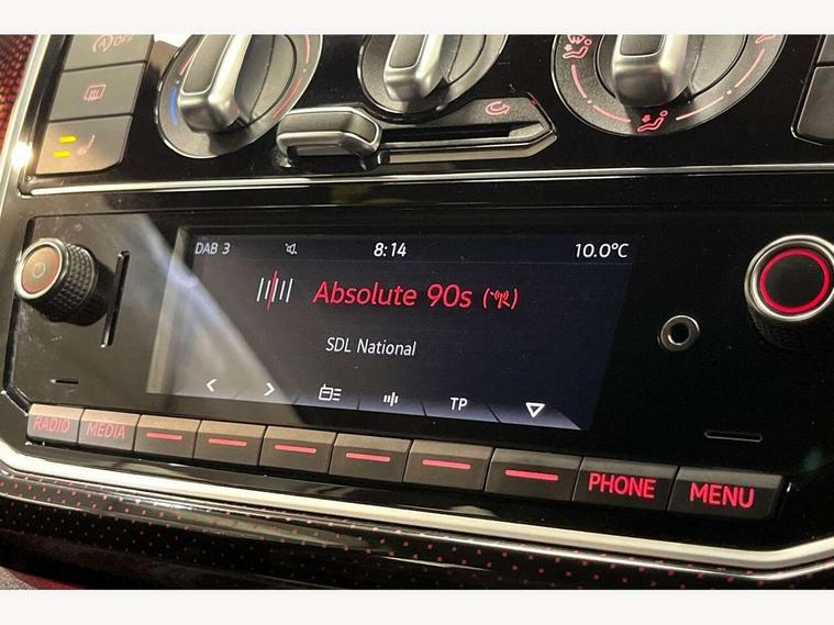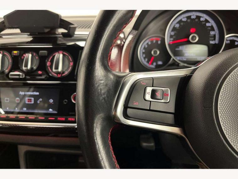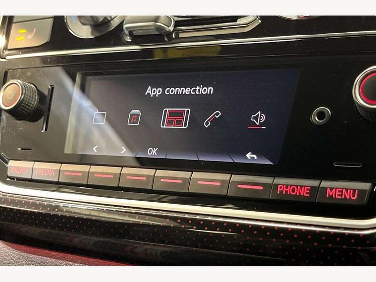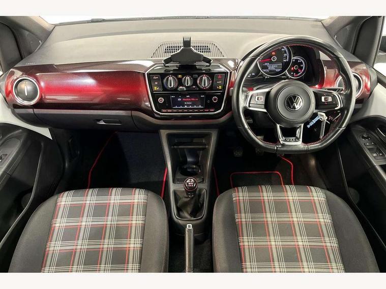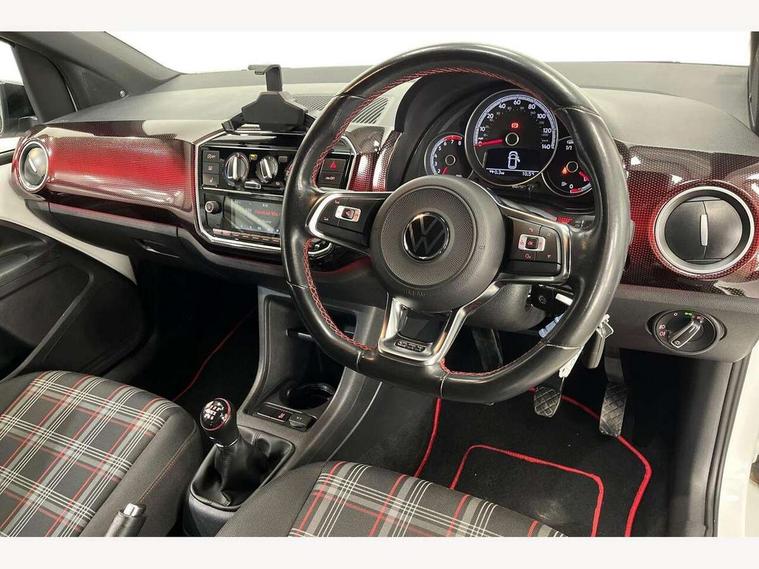 Digital clock, Multifunction camera with lane assist, Multifunction computer, Rev counter, Speed sensitive power steering, Speedometer, electronic odometer and fuel gauge, Trip computer, Volkswagen connect, Body lowered sports suspension, Galvanished body, Start/stop function with battery regeneration, Composition colour system with 5" screen, DAB, AUX in socket, SD card, MP3/WMA/AAC, 4 X 20W, bluetooth, audio connection and USB connectivity, Smartphone interface navigation system, 'GTI' sports bumpers with chrome bezel for front fog lamps, Antenna, Black door mirrors, Black radiator grille, Body colour door handles, Body coloured bumpers, Door mirror integrated indicators, Door sill protectors with GTI design, Electric front windows, Front air intake in black honeycomb, GTI badge, GTI on front and rear red stripe on lower radiator grille and tailgate, Halogen clear headlights with integrated indicators and range adjustable, Heated rear window, High level 3rd brake light, LED daytime running lights, LED rear number plate lights, Left side chrome exhaust tailpipe, Manually dimming rear view mirror, Rear fog lights, Rear tailgate spoiler in gloss black, Rear tinted glass from B pillar backwards, approx 65% tinted, Rear wash/wipe, Windscreen wipers intermittent wipe, 12V accessory power point in centre console, 2 cup holders in the front and rear centre console, Ambient lighting, Black headliner, Cooled glovebox, Delay courtesy light function, Driver seat height adjust, Drivers and front passengers sun visors with vanity mirrors, Easy entry aid for access to rear seats with memory function, Folding front seat backrest release on front passenger seat, Front and rear carpet mats with contrast stitching in red and grey, Front head restraints, Front sports seats, GTI logo and red contrast stitching on steering wheel, Heating/ventilation unit with 4 speed fan, Height adjustable rear seat head restraints with red contrast stitching (x2), Height adjustable steering wheel, Isofix Preparation 2 Rear child seats, Jacara cloth upholstery with inserts of front and outer rear seats in fabric check cloth, Jack and tool kit, Luggage compartment cover, Luggage compartment lighting, Multifunction leather trimmed three-spoke steering wheel, gear knob and handbrake grip, Storage compartment in front doors, Two rear seats with 60/40 split folding rear seat backrest, Unique GTI gear knob detailing, Variable boot floor, Winter pack - Up, 3 point front seatbelts with pre-tensioners, Anti-lock braking system with EDL, EBD + TCS, Curtain airbags for front and rear passengers, Driver and front passenger airbag with front passenger airbag deactivation, Driver/front passenger side airbags, Engine drag torque control, Front disc brakes, High tone horn, Hill hold control, Hydraulic Brake Assist (HBA), Rear drum brakes, Red brake calipers, Seatbelt warning lamp and buzzer, Two 3 point rear seatbelts, Tyre pressure loss indicator, Electronic engine immobiliser, Locking fuel filler cap, Remote central locking with 2 remote folding keys, Chrome surrounds to the air vents, radio controls and air conditioning, Chrome-plated light switch surround, Matt chrome trim on interior door handles, infotainment system + instrument cluster, Red pixels dash pad, 17" Oswald alloy wheels with anti theft wheel bolts, Tyre mobility system,
