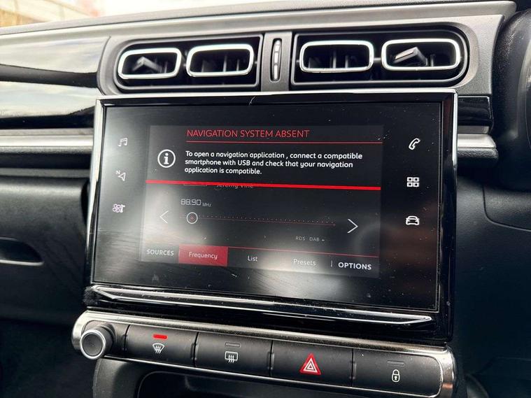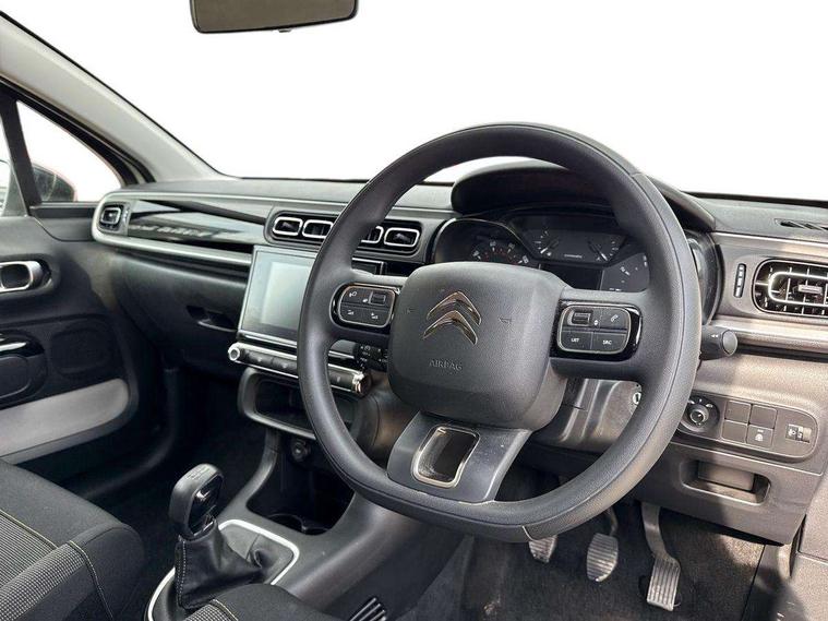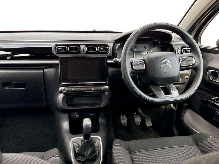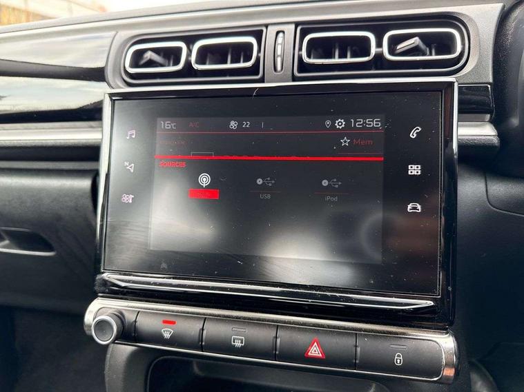 Coffee Break Alert, Cruise control + speed limiter, eCall emergency call system, Exterior temperature display, Instrument cluster with white LCD and analogue gauges, Lane departure warning system, Multi function trip computer, Rear parking sensors, Reversing camera, Variable assistance power steering, USB connection, 3D rear light signature, Airbump on side door panel, Automatic activation of hazard warning lights, Body colour bumpers, Body colour door handles, Chrome decoration on front face, under chevrons and around daytime running lights, Citroen illuminated signature in LED headlights and LED daytime running lights, Dark tinted tailgate and rear side windows, Electrically adjustable door mirrors, Electrically folding door mirrors, Fog lights integrated into front bumper, Front sequential electric windows with one-touch open/close and anti-pinch system, Heated door mirrors, LED Headlights, LED third brake light, Matt black finish B pillar, Rear sequential electric windows with one-touch open/close and anti-pinch system, Rear side wing doors, Rear windscreen wiper with intermittent mode linked to vehicle speed and automatic activation when reverse gear selected, Roof colour rear view mirror caps, Standard day night switchable interior rear view mirror, 1/3 to 2/3 split folding rear seat, 12V socket, Automatic air conditioning, Boot light, Cloth upholstery, Driver and passenger's sun visor with courtesy mirror, Driver's seat height adjustment, Front lighting panel with map reading lights, Front seats adjustable with forward back slide and adjustable backrest, Height adjustable front head restraints, Height/reach adjust steering wheel, ISOFIX mounting on outer rear seats with top tether and labels indicating fixing points, Parcel shelf, Row 2 - Three seats with individually adjustable head rests, Seatbelt unfastened on the move audible and visual alert for front and rear seats, Single front passenger seat, Soft touch gear lever with leather effect gaiter and overstitching, Standard ambience, Steering wheel with satin chrome elements and audio/telephone controls, Three rear headrests, Upholstered armrest in front and rear doors, Safety pack 1 - C3, Visibility pack with automatic lights - C3, ABS with Electronic brakeforce distribution and Emergency braking assistance, Driver and front passenger seatbelts with pyrotechnic pretensioners and force limiters, Driver's airbag, Electric child locks, ESP with anti skid system, Front passenger airbag, Front passenger airbag deactivation, Front side airbags + front/rear curtain airbags, Hill start assist, Manual parking brake with chrome finish button, Mono-tone horn, Outer rear seats with pretensioners and force limiters, Three rear 3-point seatbelts, Tyre pressure monitoring system, Anti theft alarm, Automatic door and boot locking when moving off with automatic unlocking in case of impact, Central locking with locked indicator and interior one touch lock button, Immobiliser, Remote control central locking with two plip keys, Gloss black dashboard finish with grey surround, 16" Matrix bi-tone alloy wheels,
