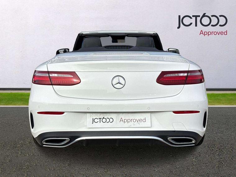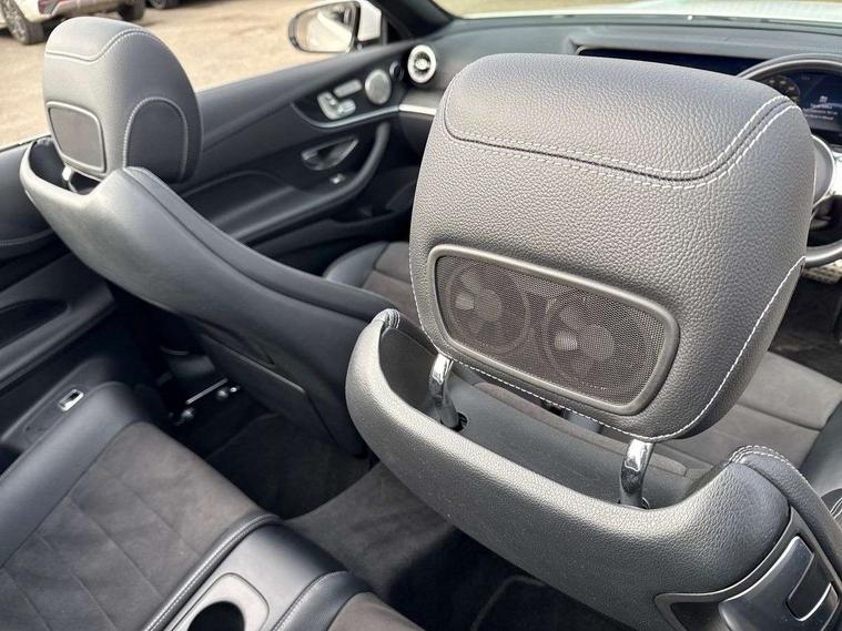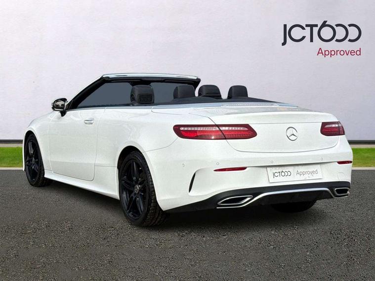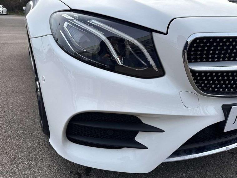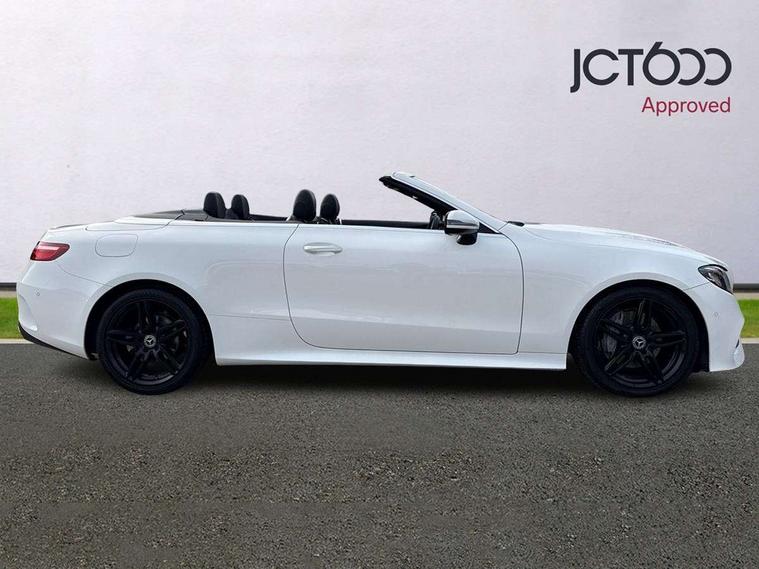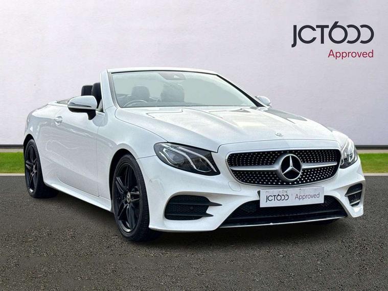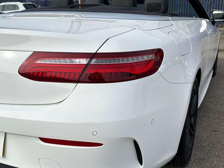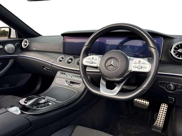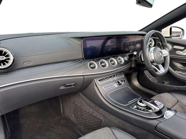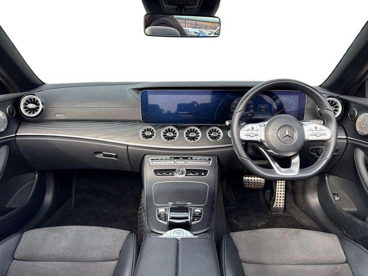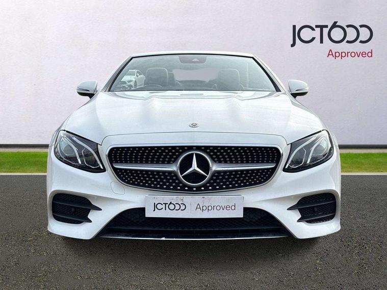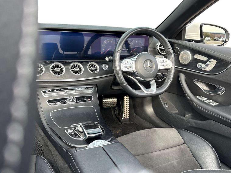 Active park assist with parktronic system, Analogue clock, Attention assist, Automatic boot separator, Bluetooth interface for hands free telephone, Brake wear warning light, Collision prevention assist plus, Direct steering, DYNAMIC SELECT with a choice of driving modes (ECO, Comfort, Sport, Sport+ and Individual), Engine start/stop button, Instrument cluster with two tube-design round dials and 8.4-inch TFT multifunction display, Mercedes connect me, Multi function trip computer, Outside temperature display, Remote boot release, Reversing camera, Service indicator (ASSYST PLUS), Touchpad with control wheel, Diesel particulate filter, Incorrect fuelling protection, 2 USB ports in centre console, Audio 20 with USB, touchpad and control wheel with Media Interface with Bluetooth interface and hands-free function, DAB Digital radio, Steering wheel mounted audio controls, Acoustic soft-top with enhanced climate and noise comfort, Adaptive brake lights, AIRCAP wind deflector, AMG bodystyling, AMG boot lid spoiler in body colour, AMG front, rear apron and side skirts, Automatic rain sensing wipers, Body colour door handles, Body coloured bumpers, Electric adjustable heated door mirrors, Electric front/rear windows with one touch/auto up/down, Electric soft-top with auto roll-over bar, Illuminated front door sill panels with Mercedes-Benz lettering, LED daytime running lights, LED Headlights, LED tail lights, Magic Vision Control heated windscreen wiper system, Polished aluminium upper window surround, Polished aluminium waistline, Twin exhaust pipes, 2 way rear head restraints, 3-spoke flat bottom multifunction AMG steering wheel with Touch Control buttons, trimmed in black nappa leather, 4 way adjustable front head restraints, 50/50 split folding rear seat, Airscarf - neck level heating, AMG floormats, Artico man-made leather upper dash trim, Bag hook in luggage compartment, Black roof lining, Centre armrest and door handle illumination, Child seat recognition sensor, Chrome door pins, Cupholders in centre console, Dual zone automatic climate control, Easy entry seats, Front and rear door pockets, Front centre armrest with storage compartment, Front footwell lights, Front seat back map pockets, Front seatbelt electric feeders, Heated front seats, Height/reach adjust steering wheel, Height/reach adjustable steering column, Illuminated air conditioned glovebox, Interior lighting - 64 colour Ambient lighting, Interior rear light/integral reading lights, Isofix rear child seat fastenings, Lockable glovebox, Multi contour front sports seats, Multi function steering wheel, Rear centre armrest with 2 cupholders + storage, Sports pedals with stainless steel surfaces and rubber studs, Steering wheel gearshift paddles, Storage net in luggage compartment, Stowage compartment with 12V socket, Sunglasses holder, Sunvisors with illuminated vanity mirrors, Twin front cupholders, Keyless Go comfort pack - E Class, Memory pack - E Class, Mirror pack - E Class, 3 point seatbelts, ABS, Active bonnet, Active brake assist, Adaptive brake system, Adaptive driver and front passenger airbags, Crash sensor (auto door unlocking), Drivers knee airbag, Electronic parking brake, ESP with ASR, Front and rear window airbags, Front seatbelt pretensioners, Front side airbags, Head airbags, Hill hold function, Perforated front brake discs with "Mercedes-Benz" lettering, Seat occupancy sensor, Seatbelt warning, Tyre pressure monitoring system, Warning triangle and first aid kit, Alarm system/interior protection/immobiliser, Chrome surround electric key, Remote central locking, Open pore black ash wood centre console, Run flat tyres,