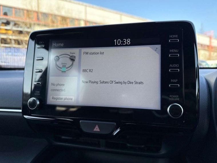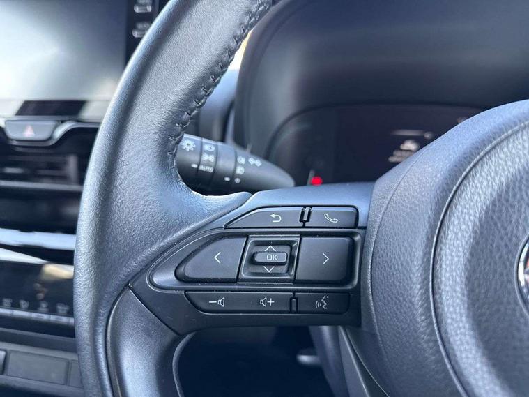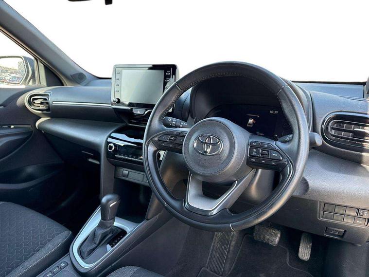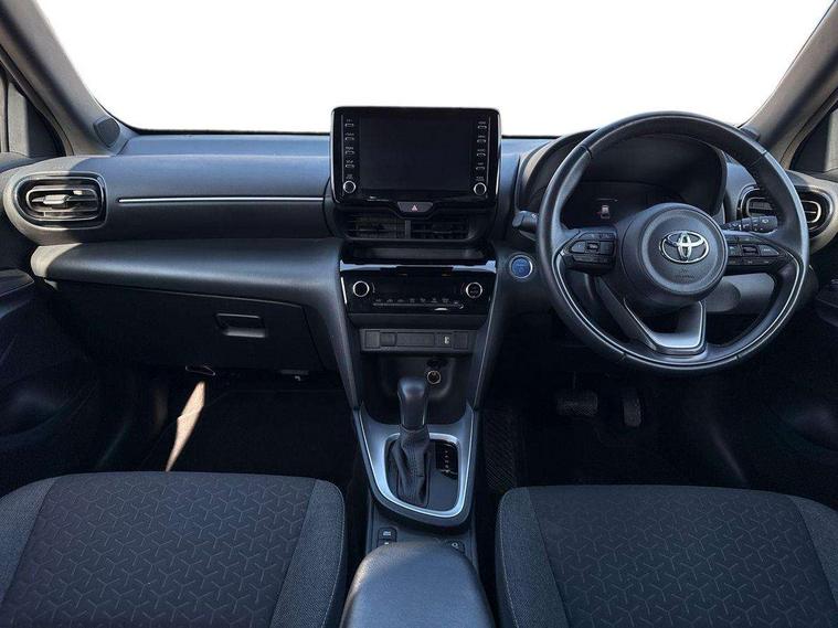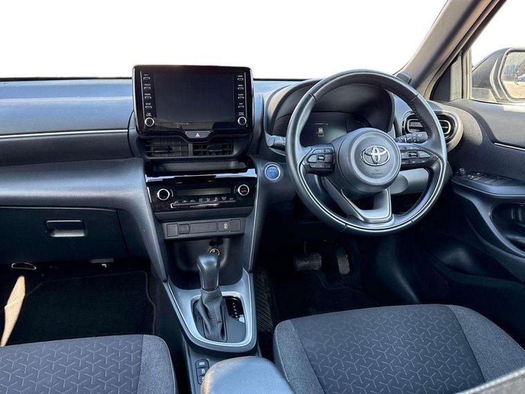 7" Multi information display screen, 8" Toyota touch 2 multimedia system with Smartphone integration with Apple CarPlay and Android auto, Adjustable speed limiter, Bluetooth connectivity, Driver attention alert system, eCall emergency system, Electric power steering, Full range intelligent adaptive cruise control, Hybrid system indicator, Key reminder warning, Lane trace assist, Multimedia, audio, telephone and voice recognition switches on steering wheel, My T Connected services, Pre-collision system enhanced with emergency steering assist, Reversing camera, Road sign assist - RSA, Steering assisted vehicle stability control, 6 speakers, DAB Digital radio, USB connection, 3rd brake light, Acoustic windscreen glass, Aluminium roof rails, Anti-jam protection on power windows, Auto high beam [AHB] with on/off switch, Automatic headlights, Black lower front grille, Black Shark-fin antenna, Black upper front grille, Black wheel arch mouldings, Body colour door handles, Body colour front bumper, Body colour rear bumper, Electric adjustable heated door mirrors, Follow me home headlights, Front and rear electric windows with auto up/down function, Front intermittent wipers, Headlight cut off reminder, Indicators integrated on door mirrors, Intermittent rear wiper, LED daytime running lights guide, LED front fog lights, LED front light guide, LED Indicators, LED projector headlights, LED rear light guide, Manual headlight levelling, Manually retractable door mirrors, Noise reduction layer on windscreen, Privacy glass, Rain sensor, Rear LED lights with sequential indicators, Rear side wing doors, Rear spoiler, Rear window defogger, 12v power outlet - front, 2x Rear coat hooks, 3 seat bench in 2nd row, 3 spoke leather steering wheel, 40:20:40 split folding rear bench seat, Adjustable speed limiter switch on steering wheel, Auto air conditioning, Black roof lining, Boot light, Central armrest, Centre console in light blue ambent lighting, Driver and front passenger personal lights, Fabric door trim, Fabric upholstery, Footwell in light blue ambient lighting, Front console box, Front cup holders, Front head restraints, Glovebox, Height adjustable driver's seat, Height adjustable front passenger seat, Hooks for luggage holding belts, ISOFIX child restraint system, Lane departure alert switch on steering control, Leather gearshift, Light blue ambient lighting on front doors, Manual telescopic and tilting steering wheel, Mirror on driver and passenger sun visor, Pollen air filter, Rear cup holders, Rear head restraints, Single front passenger seat, Soft tonneau cover, 3x3 point rear seat belts, ABS+EBD+Brake assist, Driver and passenger central airbags, Driver and passenger front airbags, Driver and passenger side airbags, Electronic parking brake, Emergency brake light system (EBS), Front seat belt reminder, Hill start assist control (HAC), Passenger airbag on/off switch, Pre-collision system with pedestrian and cyclist detection, Rear door child safety locks, Rear passenger side airbags, Rear seat belt reminder, Traction control, Tyre pressure warning system, Immobiliser, Intrusion alarm, Keyless smart entry with push button start, Power door locks, Power passenger window lock, Remote door lock, Tyre repair kit,