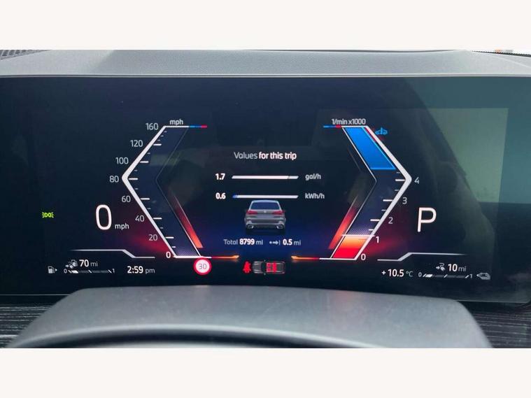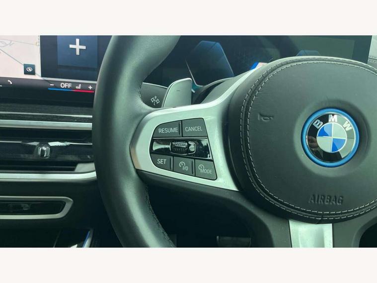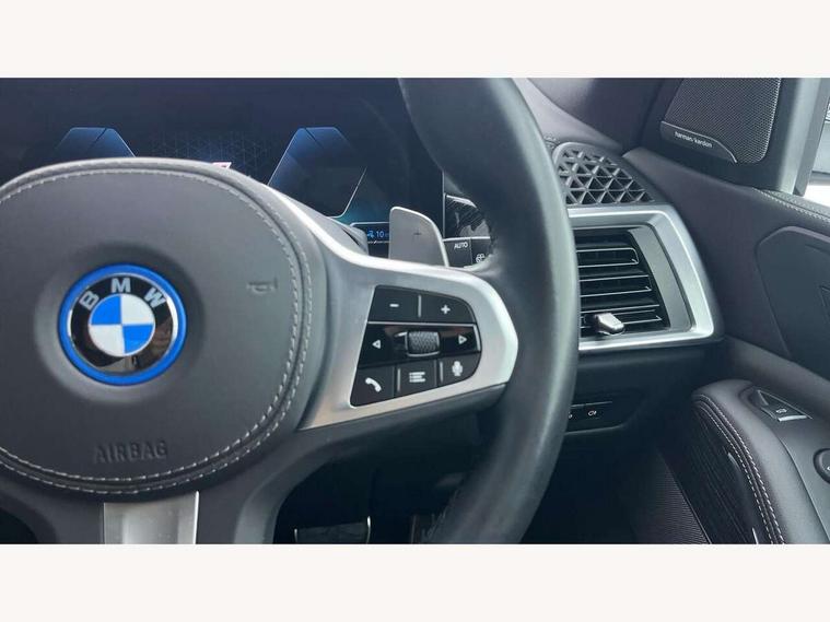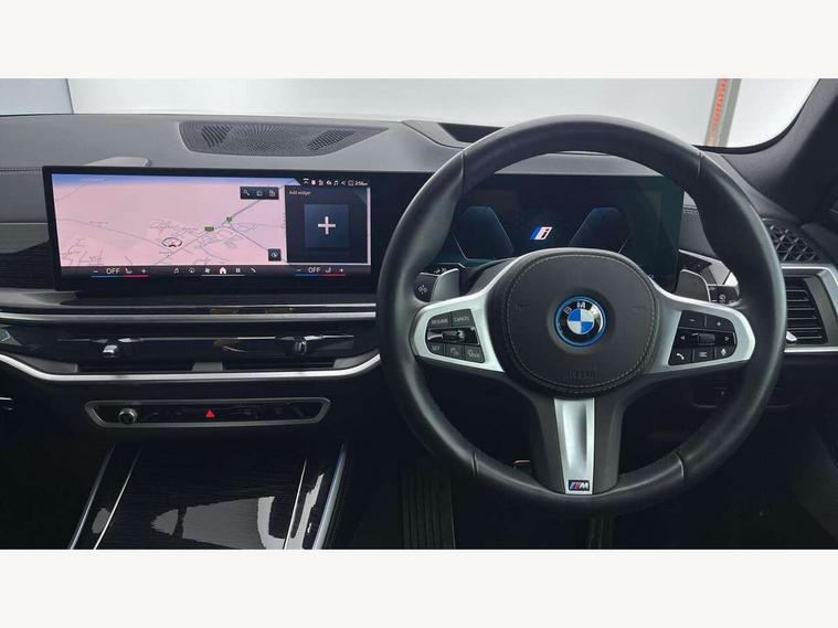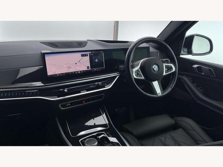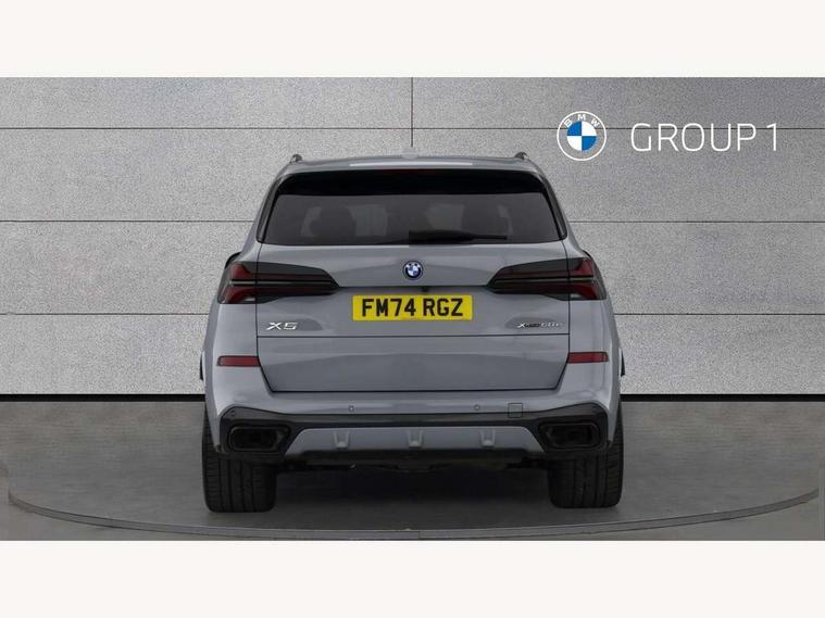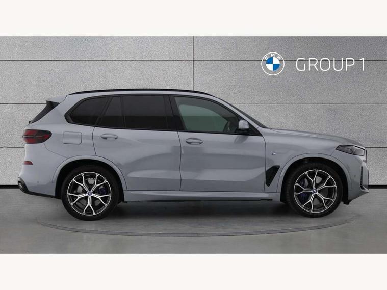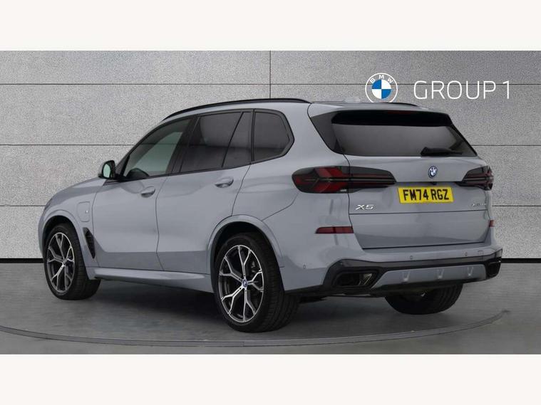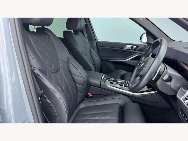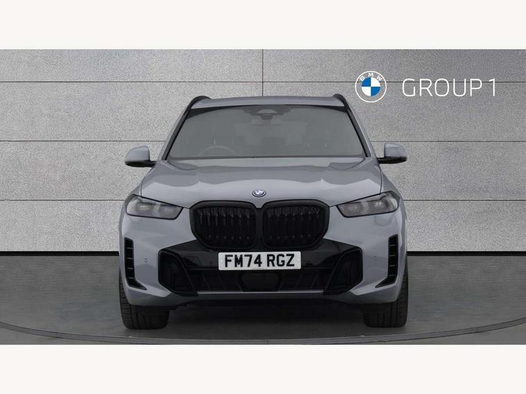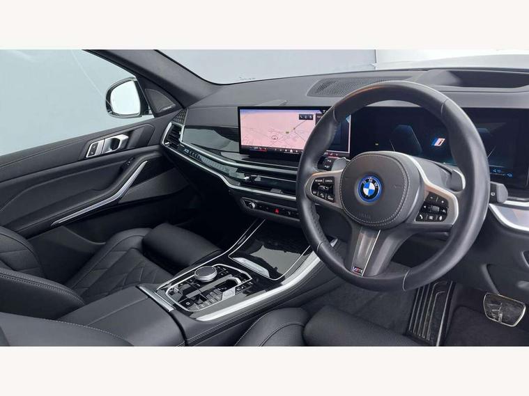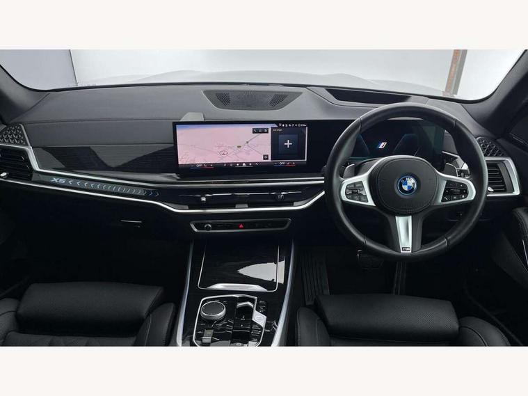 Attentiveness assist, Automatic tailgate operation, BMW ConnectedDrive online services, BMW live cockpit + with curved 12.3 instrument cluster/14.9 central display, nav/Tuner with diversity reception, RDS/4GLTE/remote software upgrade, BMW Teleservices, Condition based service, Cruise control with brake assist, eCall emergency call system, Enhanced bluetooth with wireless charging, Integral active steering, Integrated owner's handbook, PAS, Speed limiter, Wi-Fi hotspot, AC Fast charging preparation (Maximum charging power 11kW), Adaptive 2-axle Front and rear air suspension, Drive performance control with ECO PRO comfort + sport mode, Eight speed steptronic sport automatic transmission and gearshift paddles on the steering wheel, Hi-Fi loudspeaker system, Adaptive LED Headlights, Front and rear electric windows, High beam assistant, High gloss black shadow line roof rails, LED daytime running lights, Rain sensor, Rear side wing doors, Third brake light in rear spoiler, Variable intermittent rear wash/wipe, 12V - Power sockets with 2x centre console and 1x luggage compartment, 3 seat bench in 2nd row, Foldable rear centre armrest with 2 cupholders and storage compartment, Front and rear side armrest integrated into door trim, Headrests for all seats, Luggage compartment separating net, Single front passenger seat, Three spoke sport M leather steering wheel, Velour floormats, Ambient light interior pack - X5, Driving assistant pack with radar based driver assistance system - X5, Expanded exterior mirror pack - X5/X5 M, M aerodynamics pack - X5, 3 rear seatbelts, Acoustic protection for pedestrians, Active protection, Airbags - driver/front passenger, rear and side, first and second row seats head airbags, front passenger seat airbag deactivation + knee airbag, Anti-lock braking system (ABS), Automatic Stability Control (ASC), Brake energy regeneration, Cornering brake control (CBC), Crash sensor activating central locking release, hazard warning lights, fuel cut off, interior lighting + activation of safety battery terminal clamp, DSC - Dynamic Stability Control, Dynamic Traction Control - DTC, Electromechanical parking brake with automatic drive away release and auto hold function, Electronic brake force distribution, Hill start assistant, M Sport blue painted brake calipers with 'M' designation, Mechanical child proof lock on rear doors, Tyre pressure monitoring system, Tyre pressure sensors, Ventilated front and rear disc brakes, Warning triangle and first aid kit, Alarm system, Closing system with central locking, Comfort access system, Locking wheel bolts,