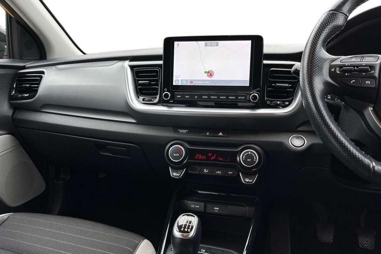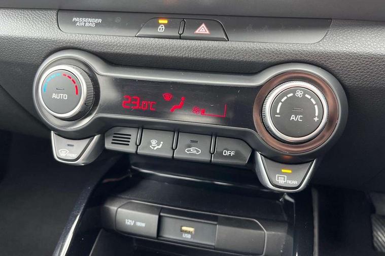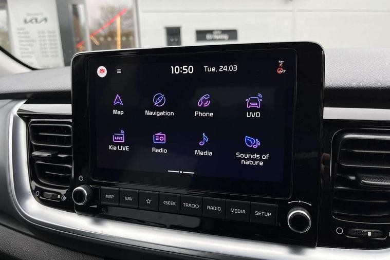 4.2" supervision colour cluster display, 8" touchscreen navigation, Apple car play/Android Auto with voice control, Cruise control + speed limiter, Drive mode selector, Electric power steering, Emergency call service, Emergency stop signalling system, External temperature display, Forward Collision-Avoidance Assist (FCA) - City/Pedestrian/Cyclist, Kia connected services featuring TomTom live, Lane keeping assist system (LKAS), Driver attention warning (DAW) and High beam assist (HBA), Rear parking sensor, Reversing camera system, Trip computer, UVO connect, Intelligent Stop and Go, Audio system with 6 speakers, Bluetooth with music streaming, Front USB port, Rear USB port, Steering wheel mounted controls, Aero blade type windshield wipers, All round electric windows with drivers auto up/down function, Auto dimming rear view mirror, Auto headlights, Automatic defog system, Automatic headlights control, Bi-function projection headlights with static bending, Black side sill, door garnish and wheel arch trims, Black/body colour bumpers, Body coloured exterior door handles, Chrome side window trim, Electrically adjustable/heated/folding door mirrors with LED indicators, Front and rear silver skid plates, Front fog lights, Halogen headlights, Headlight levelling device, Heated rear window, High gloss black and satin radiator grille, LED daytime running lights, LED position light, LED rear combination lights, Privacy glass - Rear windows and tailgate, Rain sensing front wipers, Rear fog lights, Rear side wing doors, Rear wash/wipe, Roof coloured door mirrors with matt black lower housing, Roof coloured rear spoiler with high mounted braking light, Roof rails, Shark fin antenna, Speed variable front wipers, Tinted glass, Two tone paint, Welcome and follow-me home light functionality, Windscreen Washer Level Warning, 12V power point front, 3 seat bench in 2nd row, 60/40 split folding rear seat, Air filter, All-round height adjustable headrests, Automatic air conditioning, Centre armrest storage box, Centre console with cupholders, Cloth/faux leather upholstery with grey accents, D-Cut perforated leather trimmed steering wheel, Dash illumination dimmer switch, Driver's seat height adjuster, Dual Height Luggage Area Floor, Front and centre cabin lights, Front and rear door map pockets with bottle holder, Gear shift indicator, Glovebox illumination, ISOFIX Child seat top tethers and anchor fixings outer rear seats, Leather trimmed gearshift, Luggage area light, Luggage area parcel shelf, Luggage net with hooks, Overhead console lamp, Overhead console with sunglasses cases, Passenger front seatback pockets, Satin chrome interior door handles, Single front passenger seat, Sunvisors with vanity mirror illumination (Driver and front passenger), Tilt/telescopic adjustable steering wheel, ABS with Electronic Brakeforce Distribution (EBD) and Brake Assist System (BAS), All round 3-point seatbelts, Electronic stability control (ESC) and vehicle stability management (VSM), Front passenger airbag cut-off switch, Front seatbelt pretensioners + load limiters, Height adjustable front seatbelts, Hill start assist control (HAC), Impact sensing auto door unlocking, Manual child lock in rear doors, Rear seat Occupancy alert, Seatbelt reminder warning, Twin curtain airbags, Twin front airbags, Twin front side airbags, Tyre pressure monitoring system, Alarm system, Door deadlocks, Engine immobiliser, Locking wheel nuts, Smart key with engine start/stop button, Speed sensitive auto door locking, Visible vehicle identification number, High gloss black centre fascia, 17" Alloy wheels, Tyre mobility kit,