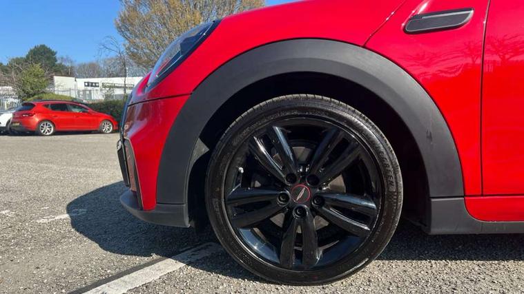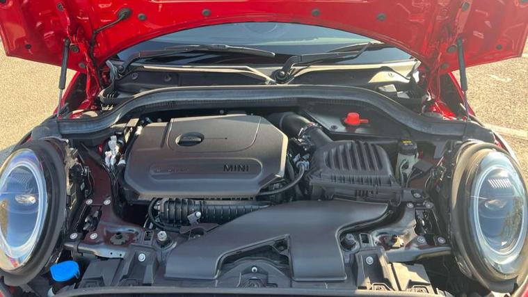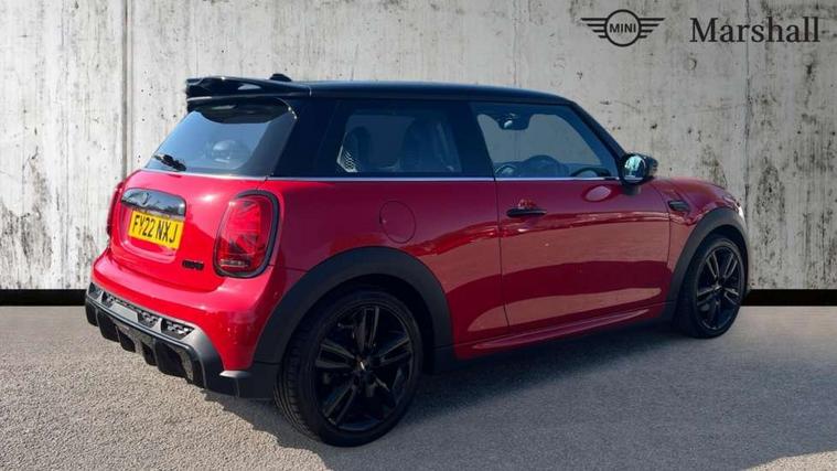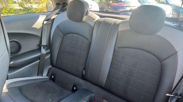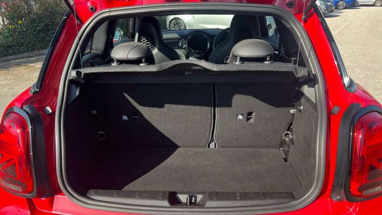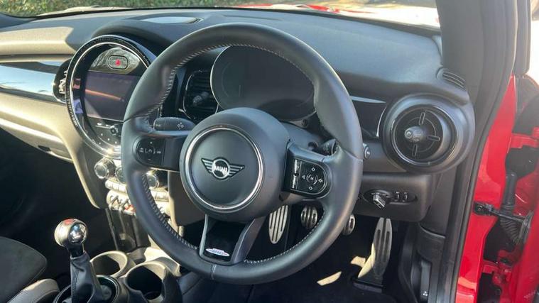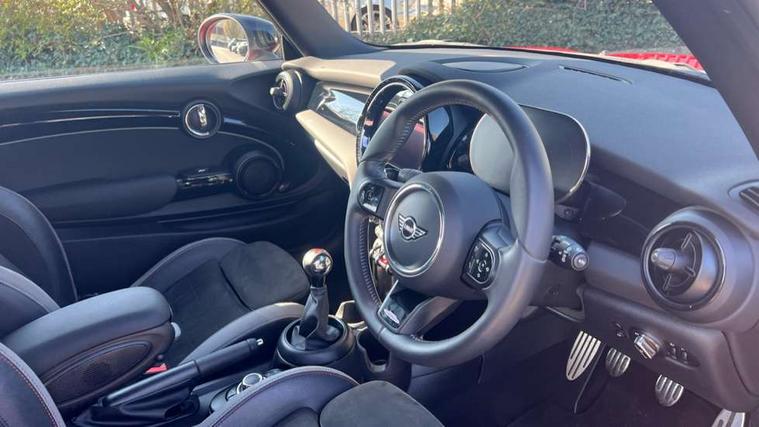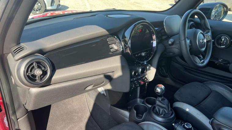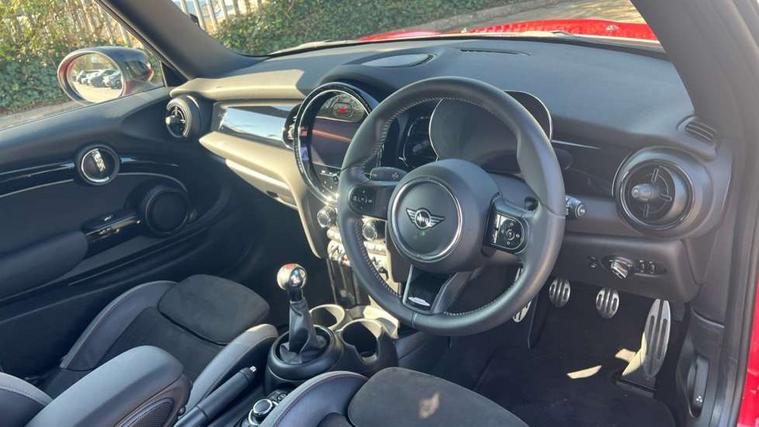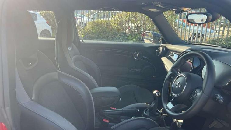 Apple CarPlay, Automatic start/stop function with brake energy recuperation, Compatible mobile phone bluetooth with audio streaming, Cruise control with brake assist, Electro-mechanical speed dependant steering assistance, Flexible car sharing preparation, Instrument cluster, MINI Driving Modes - centre toggle switch to control driving setting (sport, mid and green), Mini E-call, MINI TeleServices, On board computer, Rear park distance control, Service interval indicator, 6 Speed manual transmission including gear change indicator display, Double Vanos system, Fully variable valve control, High precision injection, Intelligent adaptive suspension, Performance Control, 8.8" touchscreen with LED ring, FM tuner and DAB digital radio, 3rd brake light, Automatic headlight activation switch, Body colour fuel filler cap, Chrome border high gloss black slats radiator grille, Dynamic brake lights, Electric front windows, Exhaust tailpipe on left with chrome finisher, Heated rear window, Heated windscreen washer jets, JCW Aerodynamic kit - Front and rear bumpers with sporty JCW styling and part-painted side sills with MINI John Cooper Works door sill finishers, John Cooper Works rear spoiler, LED headlight with closed ring and daytime driving lights, Metal door sill strips with MINI imprint, Model logo Cooper on right of tailgate, Rain sensor window wipers, Rear fog lights, Rear LED lights with union jack design, Rear window wiper, Side scuttle panel with integrated indicator, Sun/heat protection glass, White indicator lenses, 12V Accessory socket in centre console, 2 seat bench in 2nd row, 4 lashing eyes in luggage compartment, 60/40 split folding rear seat, Anthracite headliner including grab handles and clothes hooks, Carbon black colour line - Knee roll and door armrest, Chrome interior highlights, Cupholders, Front and rear isofix with front passenger airbag deactivation, Front floor mats in velour, Glove compartment, Height and length steering column adjustment, Interior lighting with 12 different colours across the dashboard, underneath door bezel with illuminated laser-engraved design on central display, JCW Sport seats with integrated headrests, adjustable thigh support and John Cooper Works logo, Leatherette gearshift lever and handbrake gaiters, LED reading lights, vanity mirror lights, front foot well light and spotlight on front seats, Manual air conditioning, Mechanical seat adjustment - forward/back & backrest for front seats and driver seat height adjust, Multifunction steering wheel, Passenger seat height adjuster, Single front passenger seat, Storage compartments in doors, Sunvisors with vanity mirrors, Walknappa leather steering wheel with grey seam and John Cooper Works badge on Piano Black lower steering wheel spoke, Piano black exterior pack - Mini Hatchback Cooper, 3 point seatbelts on all four seats, 6 Airbags - front, side, head and seat belt tensioners, Anti-lock braking system (ABS), DSC - Dynamic Stability Control, Front and rear disc brakes, Single tone fanfare horn, Tyre pressure monitoring system, Alarm system with tilt sensor, monitoring doors, bonnet interior and tailgate, Electronic vehicle immobiliser, Start/stop toggle with keyless go, Piano black interior trim, Tool kit,