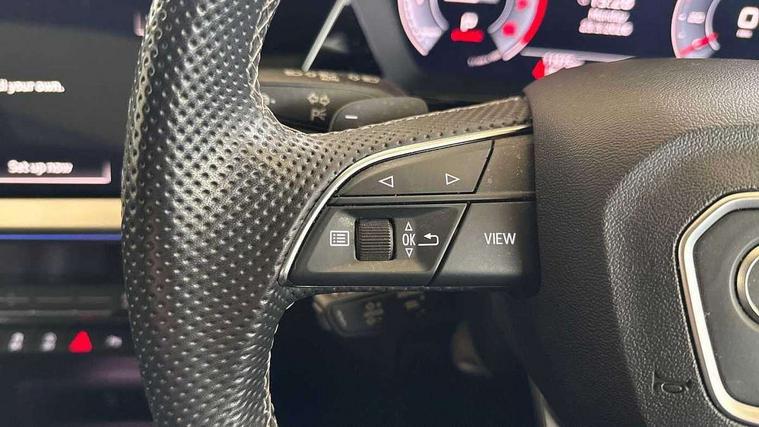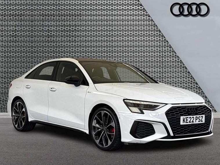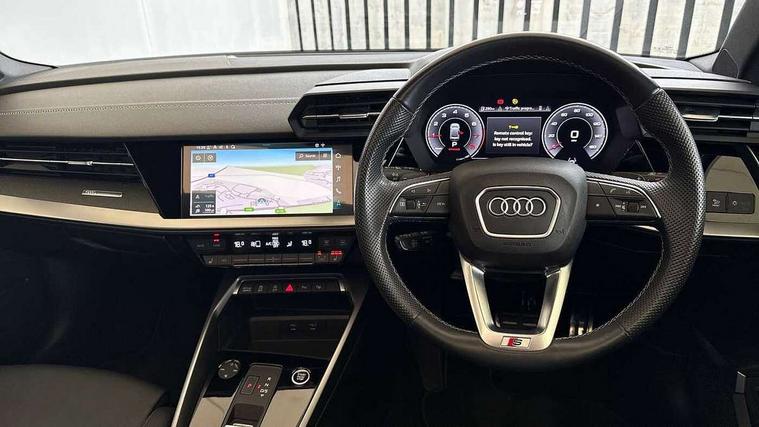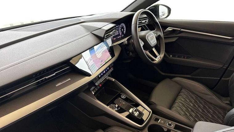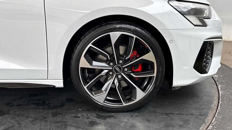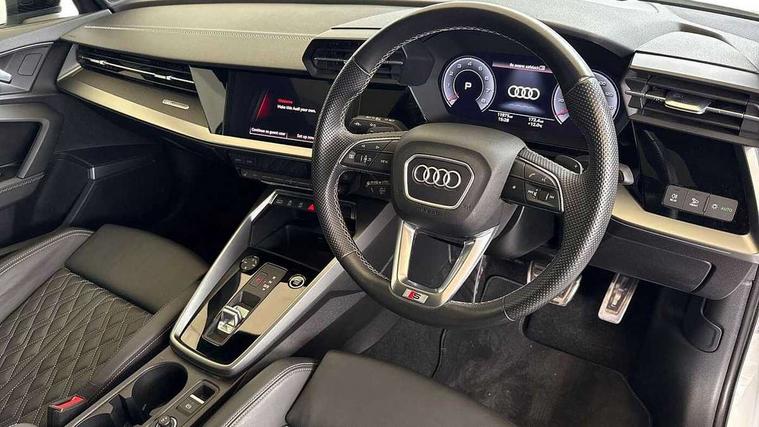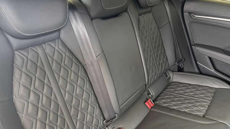 Audi connect emergency call and service, Audi drive select (Auto, Comfort, Dynamic, Efficiency and Individual), Audi smartphone interface, Audi virtual cockpit plus - 12.3" dynamic digital instrument cluster, Automatic start/stop system with recuperation, Bluetooth interface, Collision avoidance assistant, Electromechanical power speed sensitive steering, Head up Display, Lane departure warning system, MMI Navigation Plus with high resolution 10.1" colour touch screen display, Reversing camera, Service indicator, Voice control system with natural language interaction, S sports suspension with damper control and lowering by 15mm, 2x USB Type C ports (for charging and data transfer), Bang and Olufsen premium sound system with 3D sound, CD player, DAB Digital radio, 3rd brake light, Acoustic glass windscreen, Audi Beam uses LEDs to project Vorsprung onto the ground as you exit your A3, Audi matrix LED headlights, LED rear lights, dynamic front and rear indicators and headlight cleaning system, Auto dimming frameless rear view mirror, Electric panoramic sunroof, Electrically adj heated/folding + automatically dimming exterior mirrors + automatic kerb side function for passenger side exterior mirror, Front electric windows, Illuminated door sills with aluminium inserts at the front with S logo, Integrated LED indicators in door mirrors, LED daytime running lights, Light and rain sensors, Model and engine designation badges at rear, Privacy glass - dark tinted rear window, rear door and side windows, Rear boot, Rear electric windows, Rear side wing doors, S roof spoiler, 12V socket and storage compartment in front centre console, 3 seat bench in 2nd row, 3 spoke leather multifunction steering wheel with gear shift paddles, 4 way electrically adjustable lumbar support for driver and front passenger, 40/20/40 split folding rear seat bench with cupholder, Black cloth headlining, Dual zone electronic climate control, Electrically adjustable front seats, Fine Nappa leather upholstery with front sports seats S embossed logo, Front and rear centre armrest in leather, Front and rear headrests, Front/rear floor mats, Heated front seats, Height and reach adjustable steering wheel, Interior lighting - glove compartment light and right hand side, Luggage compartment floor covering, Seat side bolsters, Single front passenger seat, Stainless steel pedals and front footrest in black, Aluminium interior elements pack - A3, Driver Assistance pack - A3 Saloon, Extended ambient lighting pack - A3/S3 Saloon, LED interior lighting pack - A3 Saloon Edition 1/Vorsprung, 3x3 point rear seat belts, Driver and front passenger airbag with passenger airbag deactivation, Electronic Stabilisation Control (ESC) including ABS, ASR and EDL, First aid kit with warning triangle and 2 safety vests, Front side airbags with head airbags and interaction airbag, Hill hold assist, Pre-sense front with pedestrian and cyclist detection, Seatbelt monitoring, Tyre pressure loss indicator, Advanced key and power operated tailgate - Luggage compartment lid opens electrically, Anti theft alarm, Anti-theft wheel bolts, Electronically operated child lock, Immobiliser, Remote control central locking, Aluminium air vent surrounds, Aluminium trim elements, Carbon inlays, accent surfaces in the dashboard and centre console in platinum grey silk effect paint finish,