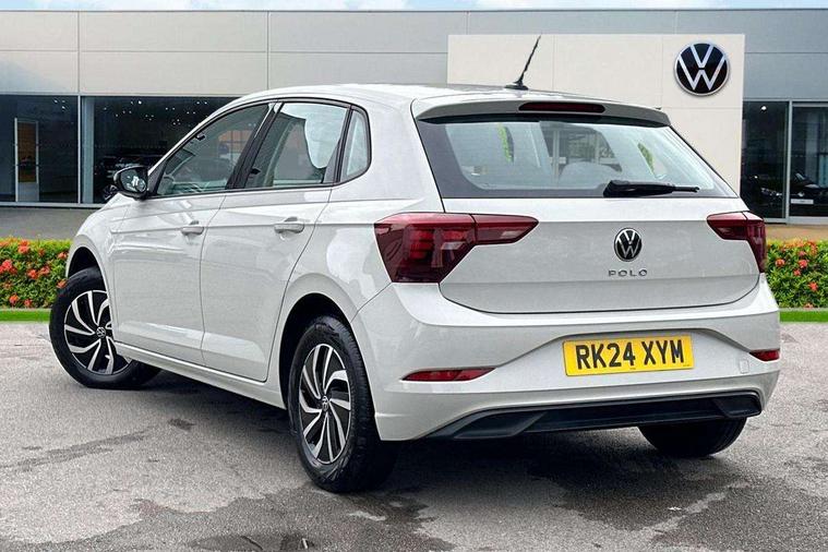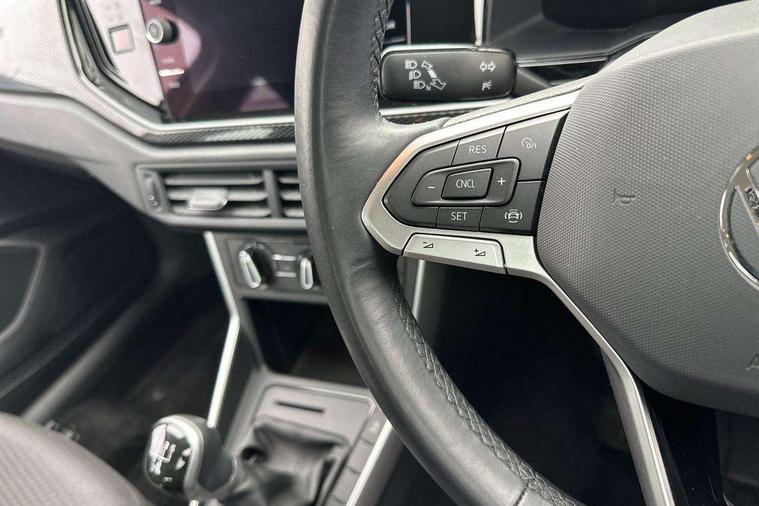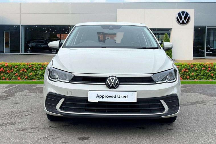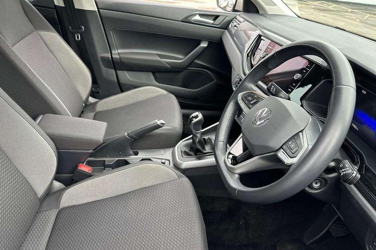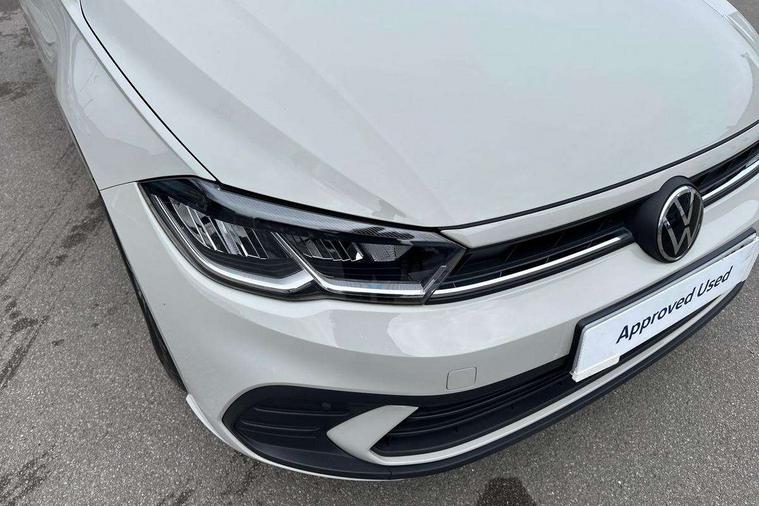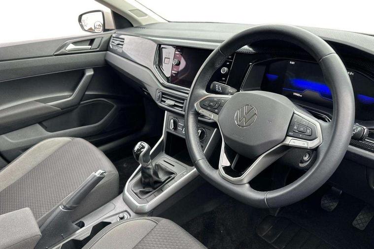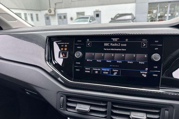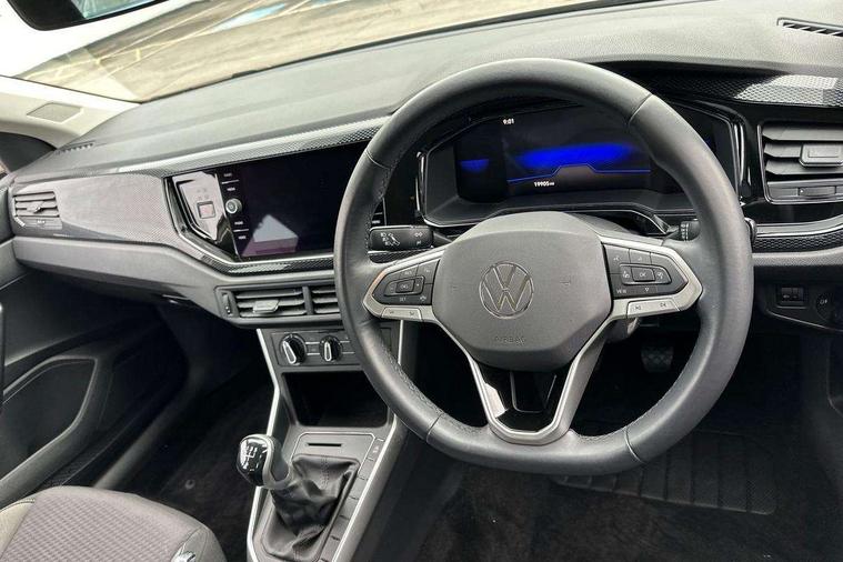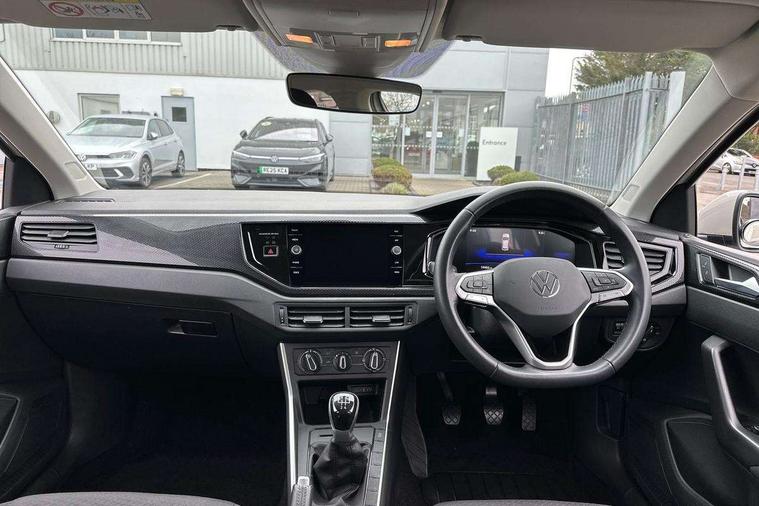 Advanced driver attention and drowsiness monitor, Bluetooth mobile phone interface, Cruise control + speed limiter, Dynamic road sign display, Emergency call service, Lane keeping system Lane Assist, Power assisted speed sensitive steering, Preparation for navigation system with media and internet package, Preparation for We connect and We connect plus, Speedo and rev counter, electronic odometer, trip, service interval display and exterior temperature gauge, Standard rear axle, Trip computer, Warning signal and warning light for front and rear seatbelts not fastened, Washer fluid level indicator, Wireless app connect, Front wheel drive, Rear shock absorpion, Start-stop system with battery regeneration (recuperation - energy recovery during braking), DAB Digital radio, Diversity antenna for FM reception, Front and rear 6 speakers, Automatic dimming interior rear view mirror, Body colour bumpers with chrome inserts, Body colour door handles, Body colour door mirrors, Electric front windows, Engine badge deletion, Heat insulating and laminated safety glass windshield, Heat insulating darkened glass in side and rear windows, Heat insulating glass windscreen, Power folding adjustable/heated exterior mirrors and front passenger exterior mirror lowering function, Rain sensor, Rear electric windows, Rear fog light, Rear side wing doors, Rear windscreen washer and wiper with interval delay, Third brake light, 12V power socket in centre console, 2 front and 2 rear reading lights with switch off delay and dimmer, 2 USB-C ports in the front, 2 USB-C charging sockets on the center console in the rear, 3 rear head restraints, 60/40 split folding rear seat and rear seat bench not split, Ceramique roof lining, Chrome plated radiator grille inserts, air vent surrounds and light switch surrounds, Door and side trim panel, Driver and front passenger seat height adjustment, Driver/passenger sunvisors with illuminated vanity mirrors, Front centre armrest, Front seat backrest storage pockets, Front standard seats, Handbrake lever handle in leather, Hartley/Thomas cloth upholstery, Headliner in recycled material, Isofix child seat preparation easy-fit (for two outer rear seats, and front passenger seat) compatible with I-size, Leather trimmed gear knob, Luggage compartment cover, Luggage compartment lighting, Removable luggage compartment floor, Single front passenger seat, Standard climatic zones, Standard pedal cluster, Three spoke leather wrapped multifunction steering wheel, Light and vision pack - Polo, 3 point height adj front seatbelts + pretensioners, 3x3 point rear seatbelts, ABS, Driver and front passenger airbag with front passenger airbag deactivation, Drivers and front passengers safety optimised head restraints, ESC (Electronic stability control) + EDL (Electronic Differntial lock) and ASR (Traction control), Extended and predictive pedestrian/ cyclist protection, Front assist with autonomous emergency braking (for Adaptive Cruise Control ACC up to 130 mph), Front curtain and side airbags with center airbag, Front disc brakes, Hill hold control, Manual child lock in rear doors, Rear drum brakes, Single tone horn, Tyre pressure loss indicator, Alarm with interior protection, Anti-theft alarm system with interior monitoring, backup horn, and towing protection, Anti-theft wheel bolts, Electronic engine immobiliser, Lava stone black gloss/matt decorative inserts in dash and front door panels, Low rolling resistance tyres,
