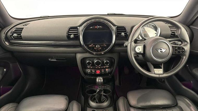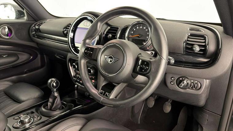 Active Guard incl speed limiting and lane departure functions with auto steering, and front collision warning with brake intervention, Automatic start/stop function with brake energy recuperation, Car sharing preparation, Compatible mobile phone bluetooth with audio streaming, Electro-mechanical speed dependant steering assistance, Instrument cluster, Mini E-call, MINI TeleServices, On board computer, Rear parking distance control, 6 Speed manual transmission including gear change indicator display, Double Vanos system, Fully variable valve control, High precision injection, Performance Control, FM tuner and DAB digital radio, Bonnet scoop, Chrome border honeycomb structure radiator grille with S badge, Chrome fuel filler cap, Chrome lower front grille grating, Chrome radiator grille bars, Dynamic brake lights, Electric windows, Heated rear window, Heated windscreen washer jets, LED headlights with closed ring as daytime driving lights, LED rear light with union jack design, Metal door sill strips with Cooper S imprint, Model logo on rear doors, Rain sensor with auto headlights, Rear fog lights, Rear side wing doors, Rear window wiper, Rear wing door, Side scuttle panel with integrated indicator, Split rear doors, Sun/heat protection glass, Third brake light, Twin exhaust tailpipe, Variable front intermittent wipers, White indicator lenses, 12V Accessory socket in centre console, 3 seat bench in 2nd row, 360L luggage compartment capacity, 4 lashing eyes in luggage compartment, 60/40 split folding rear seat, Anthracite headlining with grab handles and clothes hooks, Chrome air vents, gear lever base and door handles, Chrome interior highlights, Cupholders, English handbook, Front and rear head restraints, Glove compartment, Height and length steering column adjustment, Interior lighting with 12 basic colours selectable via toggle switch in roof, Isofix rear child seat preparation, Leather gearshift lever and handbrake gaiters, LED reading lights, vanity mirror lights, front foot well light and spotlight on front seats, Manual air conditioning, MINI Yours exterior badging in C-Pillar, MINI Yours floor mats, Multifunction steering wheel, Nappa leather steering wheel with MINI Yours badge, Single front passenger seat, Storage compartments in doors, Sunvisors with vanity mirrors, Toolkit, Excitement pack - Clubman, Extended interior lighting pack - Mini Clubman, Navigation pack - Clubman, 2 tone horn, 3 point seatbelts on all seats, 6 Airbags - front, side, head and seat belt tensioners, Anti-lock braking system (ABS), Child locks on rear doors, DSC - Dynamic Stability Control, Electronic handbrake, Front and rear disc brakes, Tyre pressure monitoring system, Alarm system with tilt sensor, monitoring doors, bonnet interior and tailgate, Auto drive away locking, Deadlocking function, Electronic vehicle immobiliser, Locking wheel bolts, Remote central locking, Start/stop toggle with keyless go,