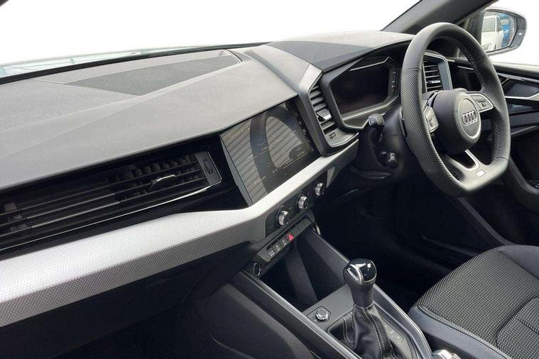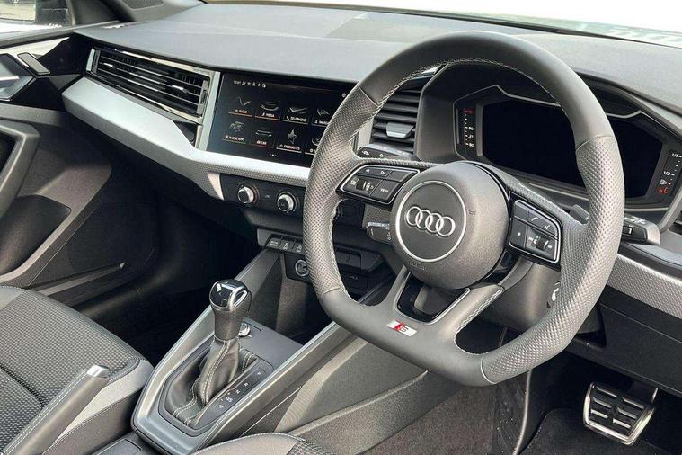 10.25" Digital instrument cluster display classis style instrument dials + speed, odometer, time, outside temperature, telephone menu + fuel level warning, Advanced driver attention and drowsiness monitor, Audi connect emergency call and service, Audi drive select, Audi remote connect and control, Bluetooth interface, Camera based traffic sign recognition, Cruise control, Driver's information system, Electromechanical power steering, Lane departure warning system, Rear parking sensor, Service interval indicator, Smartphone interface, Speed limiter, Start stop system with recuperation, Voice control system, Washer fluid level indicator, Sports suspension, 2 x USB type C connection points, 6 loudspeakers, DAB Digital radio, MMI radio plus with 10.1" colour MMI display screen and MMI touch, Auto dimming rear view mirror, Black door mirror housings, Black side skirts, Body coloured bumpers, Door sill trims with aluminium inlays and logo, Electric front and rear windows, Electrically adjustable, heated, folding door mirrors with integrated LED side indicator, Front side air inlets in grained matt black and C frame in anthracite black, Front wing badges, Headlight cleaning system, Heat insulating glass windscreen and side windows, Heated rear windscreen, High level LED brake light, LED daytime running lights, LED headlights with range control LED rear lights + dynamic rear indicators, Light and rain sensors, Privacy glass, Radiator grille and rear diffuser in matt anthracite black, Radiator protective grille frame in matt aluminium silver, Rear fog lights, Rear side wing doors, Rear wiper, Side front spoiler lips in grained matt black, 12V socket in centre console with two cup holders, 3 rear seats with headrests, 3 seat bench in 2nd row, 3 spoke flat bottomed multi-function plus leather steering wheel with S badging, grips in preforated leather, contrast stitching and paddle shift, 40:60 Split folding rear seat or fully collapsed, Black carpets, Black cloth headlining, Front and rear velour black floor mats with contrast stitching in fine silver, Front head restraints, Front passenger seat, Height and reach adjustable steering wheel, Interior lighting includes roof module, front and rear reading lights and right luggage compartment lighting, ISOFIX child seat mounting for front passenger and outer rear seats including top tether attachment point of outer rear seats, Leather gear knob with aluminium trim, Leather handbrake grip, Manual air conditioning, Manual height adjustable for driver and front passenger seat, Manually adjustable lumbar support in front seats, Stainless steel pedals, Ambient lighting package - A1, Black styling pack - A1 Sportback Black Edition, Luggage compartment pack - A1, 3x3 point rear seatbelts, Audi pre-sense front with pedestrain and cyclist recognition, Brake assist function, Driver and front passenger airbag with front side and head airbags, Electronic Stability Control including ABS, EBD, ASR and EDL, Front passenger airbag deactivation switch, Hill hold assist, Manual rear child locks, Seatbelt height adjustment for front seats, Seatbelt monitoring, Tyre pressure loss indicator, Warning triangle and first aid kit, Anti theft alarm, Anti theft wheel bolts, Immobiliser, Remote control key with safelock, Aluminium trim for control switches, air vents and digital instrument cluster, Black dashboard, Silver grey inlays polygon structure in diamond paint finish, Structured grey accent surfaces insert of air vents, interior door handle recesses and centre console in quartz paint finish,