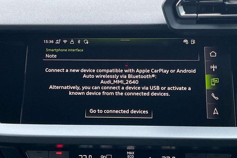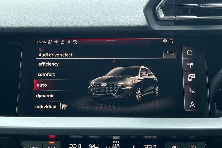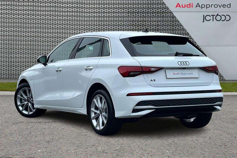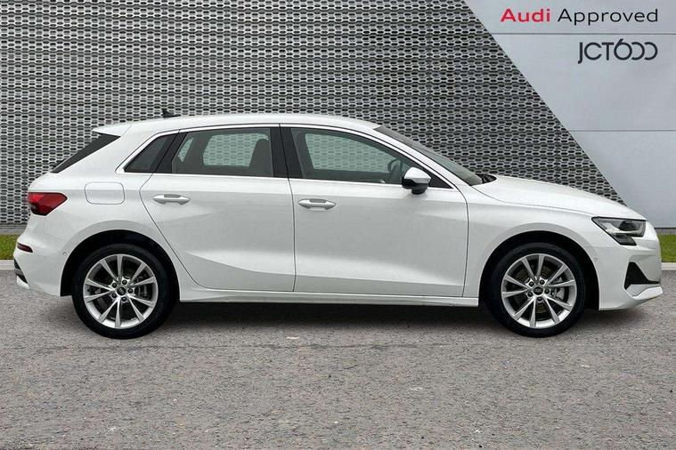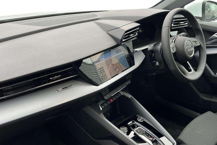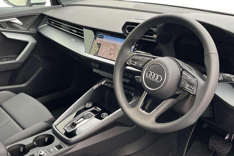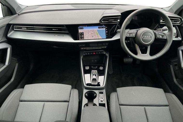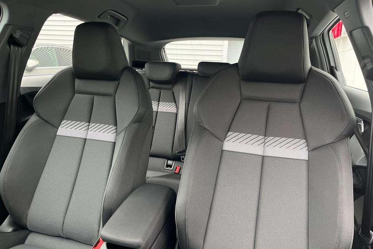 Adaptive cruise control (ACC), Adjustable speed limiter, Audi drive select (Auto, Comfort, Dynamic, Efficiency and Individual), Audi virtual cockpit plus - 12.3" full HD resolution dynamic digital instrument cluster, Automatic start/stop system with recuperation, Bluetooth interface, Camera based traffic sign recognition, Collision avoidance assistant, Driver attention and fatigue detection, e-Call (emergency call), Electromechanical power speed sensitive steering, Emergency assist, Intersection assist, Lane departure warning system, MMI Navigation Plus with high resolution 10.1" colour touch screen display, Park Assist with parking system Plus, Reversing camera, Service indicator, Smartphone interface with app store includes wireless Apple carplay, Android auto and Amazon alexa integration, Trip computer, Voice control system with natural language interaction, CCS socket for DC charging, Charging cable for public charging, mode 3 (type 2), 32 A, Standard suspension, Type 2 socket for AC charging, Audi Phonebox light with wireless charging, Audi sound system - 10 loudspeakers including centre loudspeaker and subwoofer, DAB Digital radio, USB ports with charging function in the rear, 3rd brake light, Acoustic glass windscreen, Aluminium window trim, Auto dimming frameless rear view mirror, Body colour exterior mirrors, Body colour roof spoiler, Electrically adjustable/heated/folding/auto dimming door mirrors with integrated LED indications + kerb view function for passenger side, Exterior model badging, Front electric windows, Front radiator grill in high gloss dark chrome, Front side air inlets in grained matt black with silver frame, Heat insulating glass windscreen, Invisible tailpipe, LED daytime running lights, LED headlights and halogen rear lights, Light and rain sensors, Rear diffuser and grill in grained matt black with silver frame, Rear electric windows, Rear side wing doors, Rear window, rear door windows and rear side windows in clear glass, Rear wiper, 12V socket and storage compartment in front centre console, 3 seat bench in 2nd row, 3 spoke leather multifunction steering wheel with gear shift paddles, 3-zone deluxe automatic air conditioning, 4 way electrically adjustable lumbar support for driver and front passenger, 60/40 split folding rear seat bench, Black front and rear floor mats, Convenience auxiliary air conditioning, Front and rear headrests, Front centre armrest, Front door sill trims with aluminium inlay, Heated front seats, Height and reach adjustable steering wheel, i-Size child seat mounting on the front passenger side and outer rear seats, i-Size and top tether on the outer rear seats, Manual boot compartment lid, Manually adjustable front seats, Routine cloth upholstery with front sports seats, Seat side bolsters, Single front passenger seat, Steel grey cloth headlining, Aluminium interior elements pack - A3, LED interior lighting pack -A3, 3x3 point rear seat belts, Acoustic vehicle alerting system, Driver and front passenger airbag with passenger airbag deactivation, Electronic Stabilisation Control (ESC) including ABS, ASR and EDL, First aid kit with warning triangle and 2 safety vests, Front side airbags with head airbags and interaction airbag, Hill hold assist, Pre-sense front with pedestrian and cyclist detection, Seatbelt monitoring, Tyre pressure loss indicator, Anti theft alarm, Anti-theft wheel bolts, Electronically operated child locks, Immobiliser, Black dashboard, Inlays in volcano grey fine paint finish, Tyre repair kit,