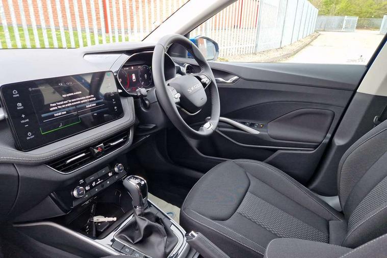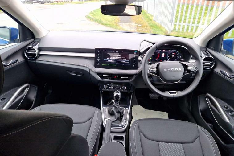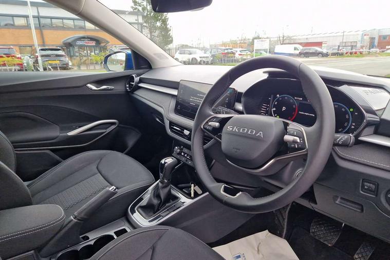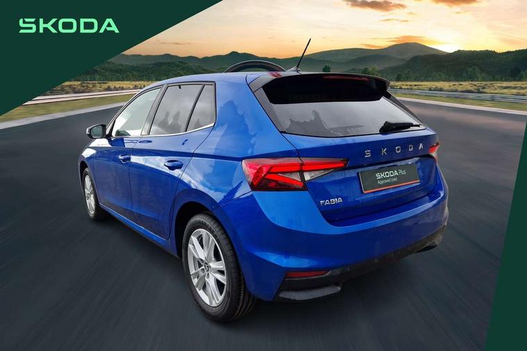 Advanced driver attention and drowsiness monitor, Bluetooth connection, Driver alert system, Electromechanical power steering, Exterior temperature gauge, Service interval indicator, Traffic sign recognition, Virtual cockpit with 10.25" colour display, Wireless SmartLink for Apple CarPlay and Android Auto, 6 Speakers (4 in front and 2 in rear), 9.2" colour display skoda navigation system with voice control and web radio, Auxiliary socket for external MP3 player, DAB digital radio reception, Auto dimming rear view mirror, Body colour door mirrors, Body coloured bumpers, Chrome window surround, Door mirror integrated indicators, Front and rear electric windows, Front window wiper intermittent control, Headlight range control - Automatic, Ice scraper in fuel cap, LED 3rd brake light, LED daytime running lights with coming and leaving home feature, LED rear lights, Privacy glass, Rear LED fog light, Rear side wing doors, Rear window wiper with washing nozzles, Roof mounted spoiler, SKODA tailgate lettering in chrome, Unique dark chrome design logo on alloy wheels, 2 LED reading lights in front and rear, 3 rear headrests, Backrest split and folding, Central console with fixed cup holder and storage box, Chrome handbrake release button, Comfort seats, Door sills with fabia badging, Dual zone air conditioning with climatronic electronic control, Fabric upholstery, Front centre armrest, Gearshift knob/handle in leather, Grain satin black interior door handles, Hand brake lever handle in leather, Height adjustable front headrests, Height adjustable front seats, Height adjustable steering wheel, ISOFIX and TopTether anchorage points to the outer rear seats, ISOFIX and TopTether on the front passenger seat, Luggage compartment lighting, Manually adjustable lumbar support in front seats, Pollen filter, Rear seat bench unsplit, Single front passenger seat, Skoda lettering on steering wheel, Storm grey headlining, Sun visors with mirror and airbag label on passenger side, Textile floor mats, Ticket holder, Ambient lighting pack - Fabia Hatchback, 3-point height adjustable front seats belts with pretensioner and force limiter, Automatic warning lights in case of crash, Driver and passengers airbag with switch off function, e-Call+, ESC including ABS, MSR, ASR, EDS, HBA and XDS, Front and rear seat belt warning, FRONT ASSIST (AEB City and AEB Inter Urban), Front side airbags, Head airbags, Hill hold control, One tone horn, Pedestrian protection, Three rear 3-points safety seat belts with pretensioner and force limiter including stop function for outer rear seat belts, Tyre pressure monitoring system, Anti-theft alarm system including immobiliser, interior monitoring, backup horn, and towing protection, Central locking with radio remote control, interior controls, SAFE function and 2 foldable keys, Chrome edged air vents, Grain satin black central console cover, Metallic grey upper decorative trim, Satin black door and side trim panel in front, Textile microsuede grey lower decorative trim with art grey stitching, Anti-theft wheel bolts protection, Super-low rolling resistance tyres,