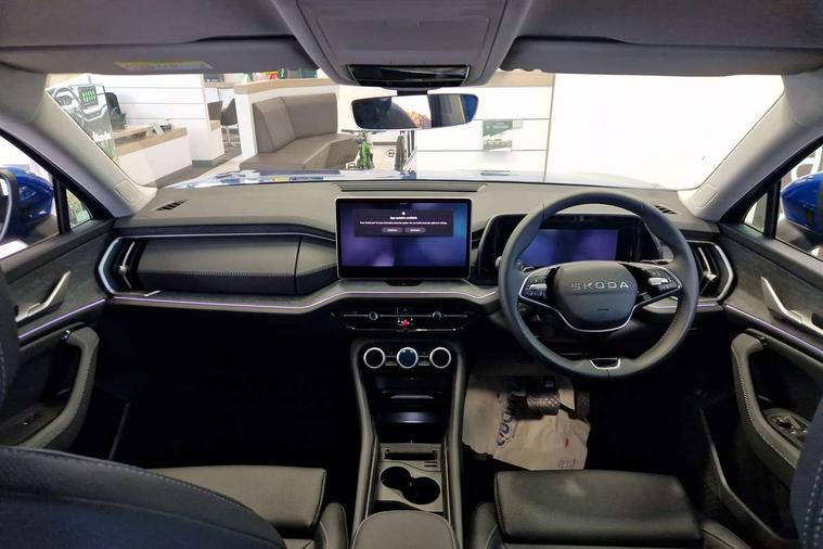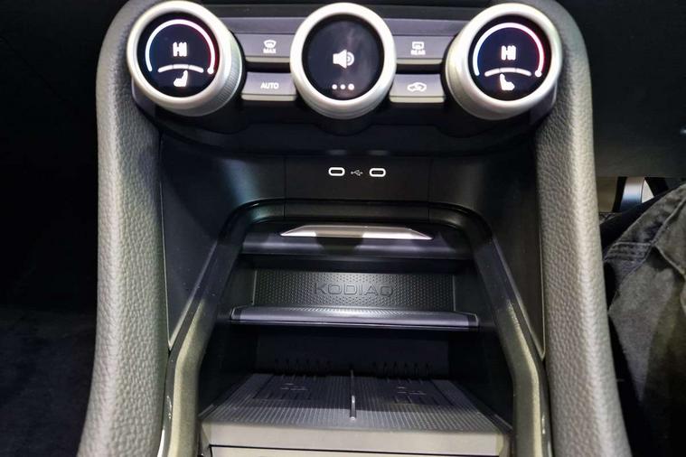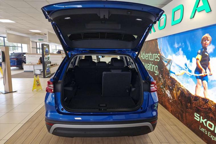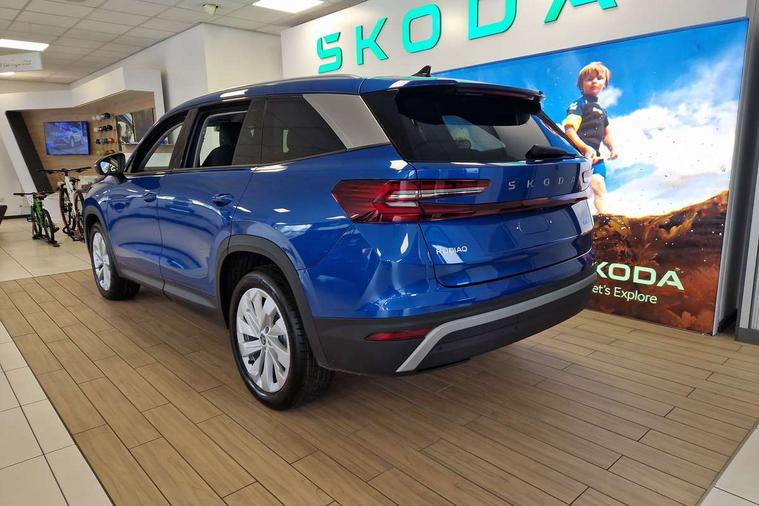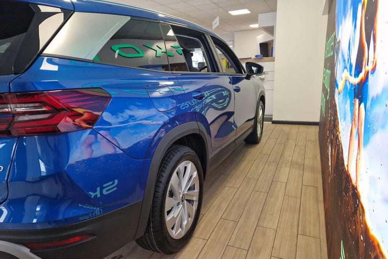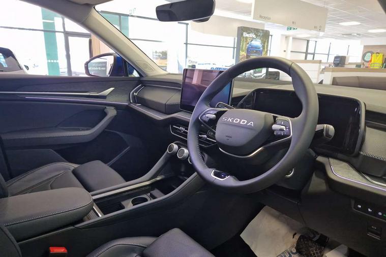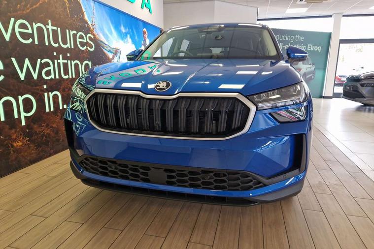 13" satellite navigation touchscreen display, Blind spot detection with door exit warning, Bluetooth system, ChatGPT functionality, Driver alert - Fatigue and drowsiness monitor, Dry display cleaner, Emergency call, Front and rear parking sensors, Front cross traffic assist, Lane assist, PAS, Rear traffic assist, Tailgate unlocking from outside, Traffic sign recognition, USB C Port x 2 in front centre console, Virtual Cockpit - 10.25" digital display, Voice control system, Wireless charging for two smartphones (15W) with cooling function, Wireless SmartLink for Apple CarPlay and Android Auto, Stop/start function, 2x USB-C in the rear, DAB Digital radio, Aero front windscreen wipers with intermittent function, Auto dimming rear view mirror, AWL (all weather lighting) and all weather light with cornering function, Black wheel arch surrounds, Body colour bumpers, Body colour door mirrors and handles, Cornering light and poor weather light, Electric folding /adjustable/separted heated/folding door mirrors, auto dimming with boarding sports and memory function, Electric front and rear windows, Exterior black decorative trims, Front grille with horizontal light strip, Heat insulating glass in windshield, Heated rear window, Ice scraper in fuel tank cap, Invisible tailpipe, LED daytime running lights, LED matrix headlights with AFS and LED fog lights, LED rear light with welcome effect and dynamic turn signals, LED third brake light in rear spoiler, Light assistant with automatic headlight control and coming home feature, Logo projection in door mirrors, Multiple matrix beam, Privacy glass, Rear roof spoiler, Rear side wing doors, Rear window wiper, Red decorative strip between rear LED lights, Safety reflectors on front and rear doors, Unique dark chrome design logo on alloy wheels, Window control switches with black trim, Windscreen wipers with rain sensor, Without engine designation, 1.5l bottle holder points in all door, 1x centre rear reading light, 2 seat bench in 3rd row, 2 spoke multi-function leather heated steering wheel with paddle shift, 3 configurable smart dials with 32mm coloured display, 3 seat bench in 2nd row, 4 foldable roof handles with rear coat hooks, Ambient interior lighting - Dashboard, front-door stowage compartments, front and rear door panels and footwell lighting, Automatic gear selector on steering column, Chrome interior door handles, Driver/front passenger reading lights, Fabric headlining, Fixed bench 40:60:40 split folding backrests, Front and rear floor mats, Front centre armrest with jumbo box storage compartment, cup holder and 12V socket, Height adjustable front headrests, Isofix child seat fittings in outer middle row rear seats and front passenger with top tether, Manually adjustable steering column, Pollen filter, Rear centre armrest with cupholders, Rear seat boot backrest release, Single front passenger seat, Skoda lettering on steering wheel, Storage pocket including mobile phone pockets on the backs of the front seats, Sunvisors with illuminated vanity mirrors, Three rear height adjustable headrests, Ticket holder on A Pillar, Tri zone climate control, Umbrella in door panel x1 made from sustainable materials, Upper and lower glovebox with card holder and coin compartment, USB C port by rear view mirror for charging only (15W), Exterior styling pack - Kodiaq, Auto door release and activation of warning lights in the event of an accident, Driver and front passenger airbag with knee airbag and front passenger airbag deactivation, Electric child locks, Electronic parking brake, ESC (incl. ABS+EMD+MSR+ASR+EDL+HBA+DSR+RBS+ESBS+MCB+TSA+XDS), Front assist with braking reaction to vehicles, pedestrians and cyclists, Front disc brakes, Fuel cut off safety device, Height adjustable front 3 point seatbelts + pretensioners, Hill hold assist, Junction assist with automatic emergency braking, Rear disc brakes, Safety vest holder in door, Seat belt reminder for all seats, Three point rear seat belts, Two tone horn, Tyre pressure monitor, Anti-theft wheel bolts, Immobiliser, Remote central locking with 2 keys,