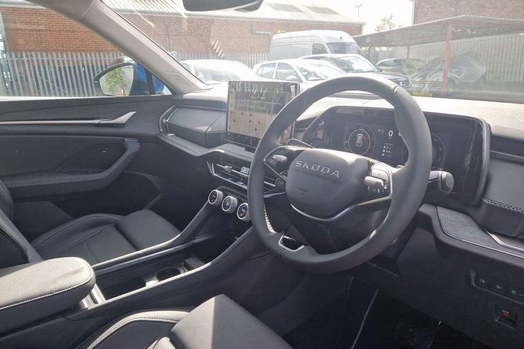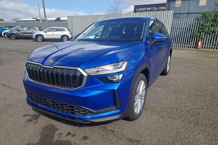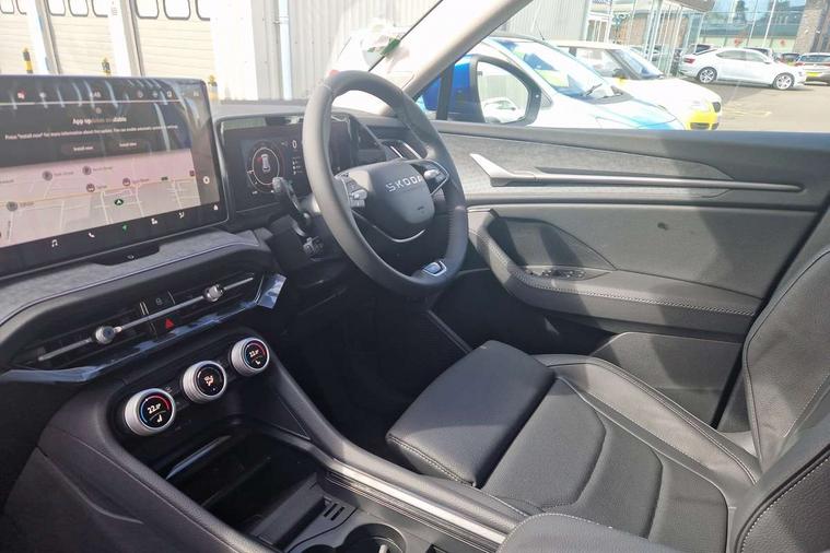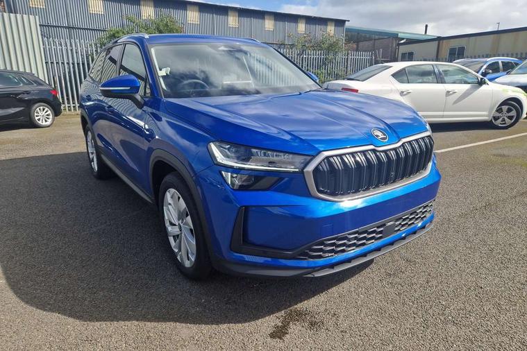 13" satellite navigation touchscreen display, Blind spot detection with door exit warning, Bluetooth system, ChatGPT functionality, Driver alert - Fatigue and drowsiness monitor, Dry display cleaner, Emergency call, Front and rear parking sensors, Front cross traffic assist, Lane assist, PAS, Rear traffic assist, Tailgate unlocking from outside, Traffic sign recognition, USB C Port x 2 in front centre console, Virtual Cockpit - 10.25" digital display, Voice control system, Wireless charging for two smartphones (15W) with cooling function, Wireless SmartLink for Apple CarPlay and Android Auto, Stop/start function, 2x USB-C in the rear, DAB Digital radio, Aero front windscreen wipers with intermittent function, Auto dimming rear view mirror, AWL (all weather lighting) and all weather light with cornering function, Black wheel arch surrounds, Body colour bumpers, Body colour door mirrors and handles, Cornering light and poor weather light, Electric folding /adjustable/separted heated/folding door mirrors, auto dimming with boarding sports and memory function, Electric front and rear windows, Exterior black decorative trims, Front grille with horizontal light strip, Heat insulating glass in windshield, Heated rear window, Ice scraper in fuel tank cap, Invisible tailpipe, LED daytime running lights, LED matrix headlights with AFS and LED fog lights, LED rear light with welcome effect and dynamic turn signals, LED third brake light in rear spoiler, Light assistant with automatic headlight control and coming home feature, Logo projection in door mirrors, Multiple matrix beam, Privacy glass, Rear roof spoiler, Rear side wing doors, Rear window wiper, Red decorative strip between rear LED lights, Safety reflectors on front and rear doors, Unique dark chrome design logo on alloy wheels, Window control switches with black trim, Windscreen wipers with rain sensor, Without engine designation, 1.5l bottle holder points in all door, 1x centre rear reading light, 2 seat bench in 3rd row, 2 spoke multi-function leather heated steering wheel with paddle shift, 3 configurable smart dials with 32mm coloured display, 3 seat bench in 2nd row, 4 foldable roof handles with rear coat hooks, Ambient interior lighting - Dashboard, front-door stowage compartments, front and rear door panels and footwell lighting, Automatic gear selector on steering column, Chrome interior door handles, Driver/front passenger reading lights, Fabric headlining, Fixed bench 40:60:40 split folding backrests, Front and rear floor mats, Front centre armrest with jumbo box storage compartment, cup holder and 12V socket, Height adjustable front headrests, Isofix child seat fittings in outer middle row rear seats and front passenger with top tether, Manually adjustable steering column, Pollen filter, Rear centre armrest with cupholders, Rear seat boot backrest release, Single front passenger seat, Skoda lettering on steering wheel, Storage pocket including mobile phone pockets on the backs of the front seats, Sunvisors with illuminated vanity mirrors, Three rear height adjustable headrests, Ticket holder on A Pillar, Tri zone climate control, Umbrella in door panel x1 made from sustainable materials, Upper and lower glovebox with card holder and coin compartment, USB C port by rear view mirror for charging only (15W), Exterior styling pack - Kodiaq, Auto door release and activation of warning lights in the event of an accident, Driver and front passenger airbag with knee airbag and front passenger airbag deactivation, Electric child locks, Electronic parking brake, ESC (incl. ABS+EMD+MSR+ASR+EDL+HBA+DSR+RBS+ESBS+MCB+TSA+XDS), Front assist with braking reaction to vehicles, pedestrians and cyclists, Front disc brakes, Fuel cut off safety device, Height adjustable front 3 point seatbelts + pretensioners, Hill hold assist, Junction assist with automatic emergency braking, Rear disc brakes, Safety vest holder in door, Seat belt reminder for all seats, Three point rear seat belts, Two tone horn, Tyre pressure monitor, Anti-theft wheel bolts, Immobiliser, Remote central locking with 2 keys,