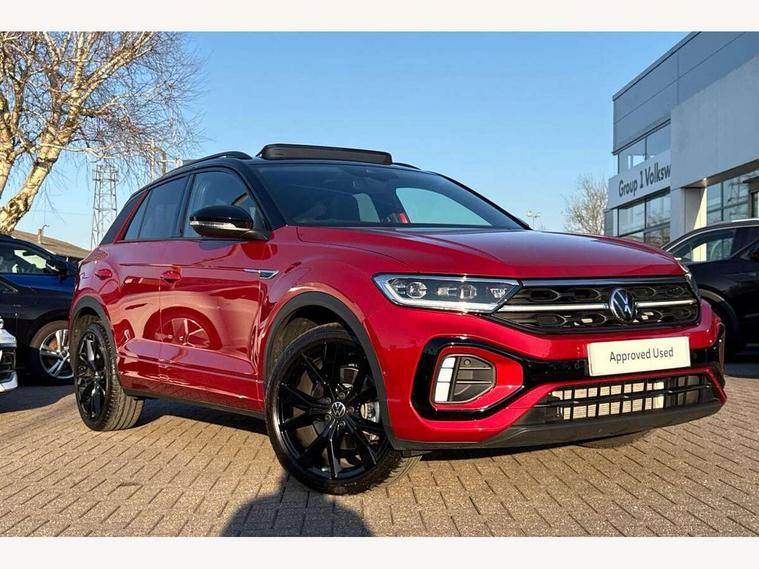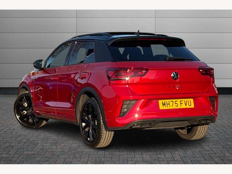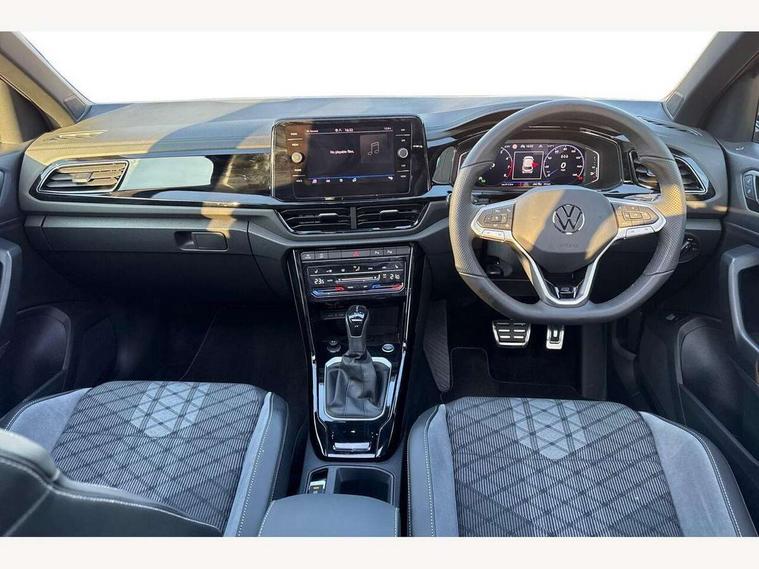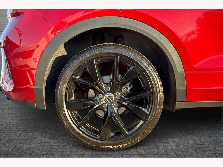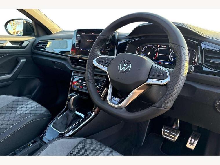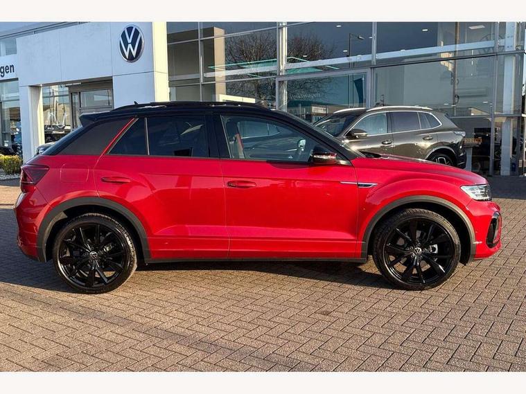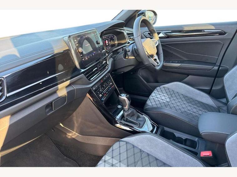 10.25" Digital cockpit pro, Advanced driver attention and drowsiness monitor, Emergency call service, Lane keeping system Lane Assist, Mobile phone interface, Modified key software - reduce switch off time for key status change to Long no motion, Online services, Park assist including front and rear parking sensors, Power assisted speed sensitive steering, Rear view camera, Service interval indicator, Tailgate/trunk lid release from outside, Think blue trainer driver tips and journey analysis, Warning sound and light for front seatbelts unfastened, Wireless app connect, Battery regeneration during braking, Rear shock absorption chassis with increased ride height, Start/stop function with battery regeneration, DAB Digital radio, Diversity antenna for FM reception, Music playback - MP3, WMA and AAC files, SD card slot, Simultaneous pairing of 2 compatible mobile devices, Title and cover art display, We Connect and We Connect Plus functionality, Advanced dynamic light assist for LED matrix headlights, Auto dimming interior rear view mirror, Automatic hazard lights activation under emergency braking, Black roof rails, Dynamic cornering light, Dynamic headlight range control with self adjusting whilst driving, Electrically adjustable and heated door mirrors, Extended roof spoiler, Exterior ambient lighting, Exterior mirrors aspherical on driver side, convex on front passenger side, External USB type C socket and charging sockets, Front windscreen wiper with intermittent wipe and 4 position delay, Heated rear window, Illuminated front grille, IQ LED matrix headlights, LED 3rd brake light, LED rear number plate lights, LED rear tail lights with dynamic turn signal, LED separate daytime running light, Light mode for poor weather, rain, fog or snow, Power windows with comfort operation and circuit breaker, Privacy glass for rear side windows and rear window, R-Line design body coloured bumpers, Rain sensor, Rear exhaust tailpipe, Rear fog light on one side and reversing lights on both sides, Rear side wing doors, Rear wash/wipe with intermittent wipe setting, Remote electrically foldable door mirrors, puddle lights and reverse activated passenger's door mirror, Tilting and sliding panoramic sunroof with rear panoramic sunroof, 12V power socket in centre console, 3 rear head restraints, 3 seat bench in 2nd row, 4 load lashing points in luggage compartment, Air care climatronic air conditoning system with active combination filter and 2-zone temperature control, Chrome plated radiator grille inserts, air vent surrounds and light switch surrounds, Door and side trim panel with leatherette insert, Drawer under drivers seat, Front + rear carpet mats, Front centre armrest, Front comfort sports seats, Front cupholders x 2, Front footwell illumination, Front reading light, Front scuff plates with R Line logo, Front seat back storage pockets, Glove compartment door with light, Instrument lighting, white adjustable panel illumination, Interior ambient lighting and surround lighting, Interior light delay, Isofix child seat preparation, Leather gearshift handle, Load-through provision with cup holder when folded down ('Unsplit rear seat bench, split folding backrest, with centre armrest), Luggage compartment lighting, Non-folding front passenger seat backrest, Single front passenger seat, Stainless steel pedals, Storage compartment in left and right luggage area, Storage compartment in rear doors, Storage compartments in driver and front passenger doors, Sunvisors with illuminated vanity mirrors, Variable boot floor, height adjustable and removable, Black design pack - T-Roc black edition plus, Easy open package with safelock - T-Roc, Sport pack with sports suspension - T-Roc, 3 point height adj front seatbelts + pretensioners, 3 point seatbelts in outer rear with ECE label, ABS, Child locks on rear doors, City emergency braking and pedestrian monitoring, Driver and front passenger airbag with front passenger airbag deactivation, Driver and front passenger safety-optimised head restraints, Drivers seatbelt reminder, Electronic parking brake, Electronic Stability Control (ESC) inc EDL (Electronic Differential Lock) and ASR (Traction Control), Front and rear passengers curtain airbag system including front side airbags, Front disc brakes, Hill start assist, Predictive pedestrian protection, Rear disc brakes, Two tone horn, Tyre pressure loss indicator, Volkswagen roadside assistance, Keyless locking and starting system keyless access with safelock, Gloss deep iron dash trim, 19" Misano black diamond turned alloy wheels with low rolling resistance and anti theft wheel bolts, Tool kit, Trims for alloy wheels, Tyre mobility kit including compressor and sealing foam,
