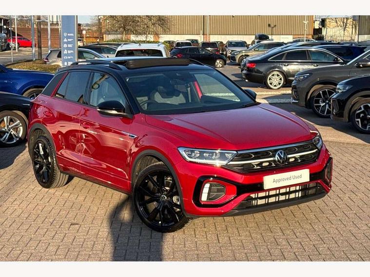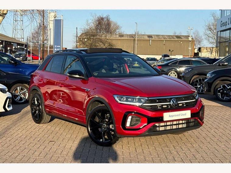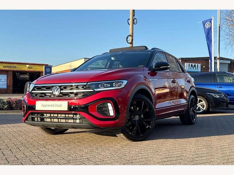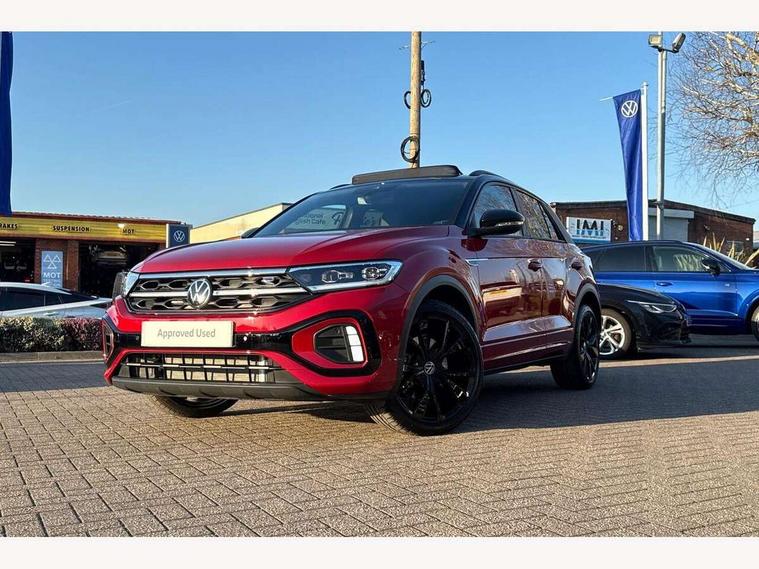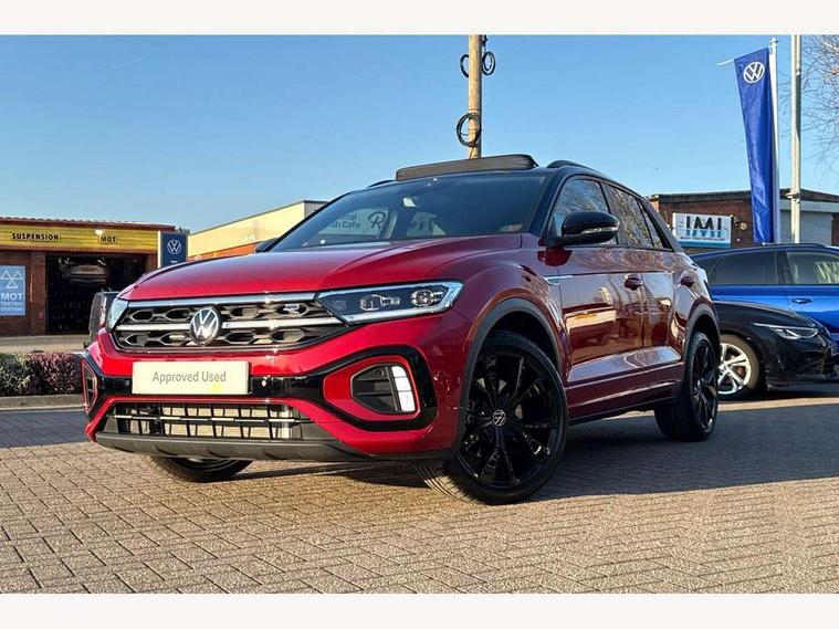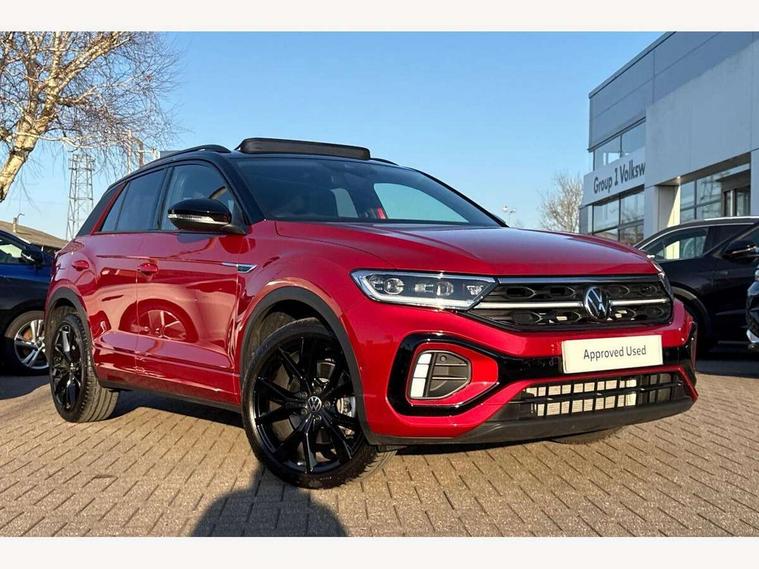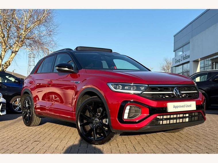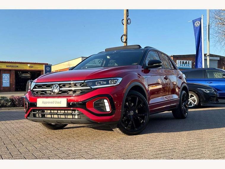 10.25" Digital cockpit pro, Advanced driver attention and drowsiness monitor, Emergency call service, Lane keeping system Lane Assist, Mobile phone interface, Modified key software - reduce switch off time for key status change to Long no motion, Online services, Park assist including front and rear parking sensors, Power assisted speed sensitive steering, Rear view camera, Service interval indicator, Tailgate/trunk lid release from outside, Think blue trainer driver tips and journey analysis, Warning sound and light for front seatbelts unfastened, Wireless app connect, Battery regeneration during braking, Rear shock absorption chassis with increased ride height, Start/stop function with battery regeneration, DAB Digital radio, Diversity antenna for FM reception, Music playback - MP3, WMA and AAC files, SD card slot, Simultaneous pairing of 2 compatible mobile devices, Title and cover art display, We Connect and We Connect Plus functionality, Advanced dynamic light assist for LED matrix headlights, Auto dimming interior rear view mirror, Automatic hazard lights activation under emergency braking, Black roof rails, Dynamic cornering light, Dynamic headlight range control with self adjusting whilst driving, Electrically adjustable and heated door mirrors, Extended roof spoiler, Exterior ambient lighting, Exterior mirrors aspherical on driver side, convex on front passenger side, External USB type C socket and charging sockets, Front windscreen wiper with intermittent wipe and 4 position delay, Heated rear window, Illuminated front grille, IQ LED matrix headlights, LED 3rd brake light, LED rear number plate lights, LED rear tail lights with dynamic turn signal, LED separate daytime running light, Light mode for poor weather, rain, fog or snow, Power windows with comfort operation and circuit breaker, Privacy glass for rear side windows and rear window, R-Line design body coloured bumpers, Rain sensor, Rear exhaust tailpipe, Rear fog light on one side and reversing lights on both sides, Rear side wing doors, Rear wash/wipe with intermittent wipe setting, Remote electrically foldable door mirrors, puddle lights and reverse activated passenger's door mirror, Tilting and sliding panoramic sunroof with rear panoramic sunroof, 12V power socket in centre console, 3 rear head restraints, 3 seat bench in 2nd row, 4 load lashing points in luggage compartment, Air care climatronic air conditoning system with active combination filter and 2-zone temperature control, Chrome plated radiator grille inserts, air vent surrounds and light switch surrounds, Door and side trim panel with leatherette insert, Drawer under drivers seat, Front + rear carpet mats, Front centre armrest, Front comfort sports seats, Front cupholders x 2, Front footwell illumination, Front reading light, Front scuff plates with R Line logo, Front seat back storage pockets, Glove compartment door with light, Instrument lighting, white adjustable panel illumination, Interior ambient lighting and surround lighting, Interior light delay, Isofix child seat preparation, Leather gearshift handle, Load-through provision with cup holder when folded down ('Unsplit rear seat bench, split folding backrest, with centre armrest), Luggage compartment lighting, Non-folding front passenger seat backrest, Single front passenger seat, Stainless steel pedals, Storage compartment in left and right luggage area, Storage compartment in rear doors, Storage compartments in driver and front passenger doors, Sunvisors with illuminated vanity mirrors, Variable boot floor, height adjustable and removable, Black design pack - T-Roc black edition plus, Easy open package with safelock - T-Roc, Sport pack with sports suspension - T-Roc, 3 point height adj front seatbelts + pretensioners, 3 point seatbelts in outer rear with ECE label, ABS, Child locks on rear doors, City emergency braking and pedestrian monitoring, Driver and front passenger airbag with front passenger airbag deactivation, Driver and front passenger safety-optimised head restraints, Drivers seatbelt reminder, Electronic parking brake, Electronic Stability Control (ESC) inc EDL (Electronic Differential Lock) and ASR (Traction Control), Front and rear passengers curtain airbag system including front side airbags, Front disc brakes, Hill start assist, Predictive pedestrian protection, Rear disc brakes, Two tone horn, Tyre pressure loss indicator, Volkswagen roadside assistance, Keyless locking and starting system keyless access with safelock, Gloss deep iron dash trim, 19" Misano black diamond turned alloy wheels with low rolling resistance and anti theft wheel bolts, Tool kit, Trims for alloy wheels, Tyre mobility kit including compressor and sealing foam,