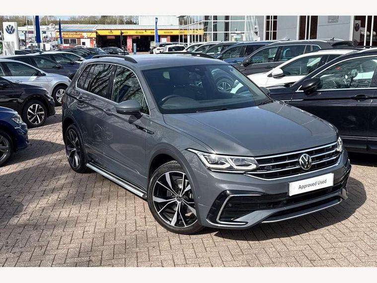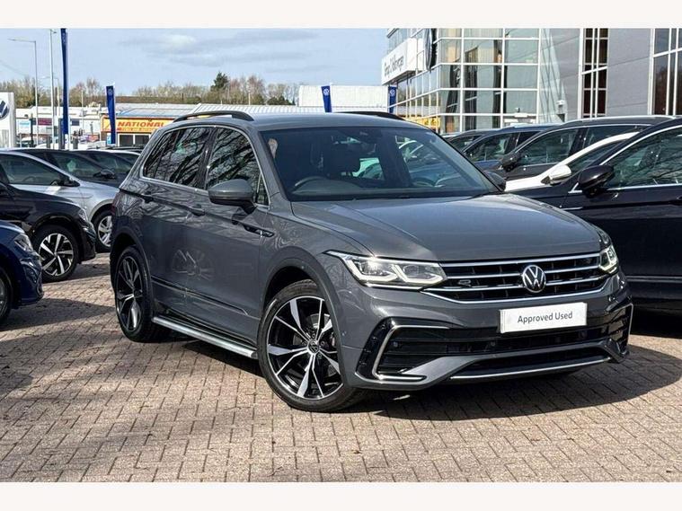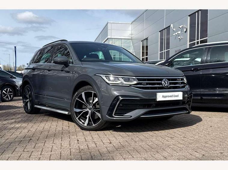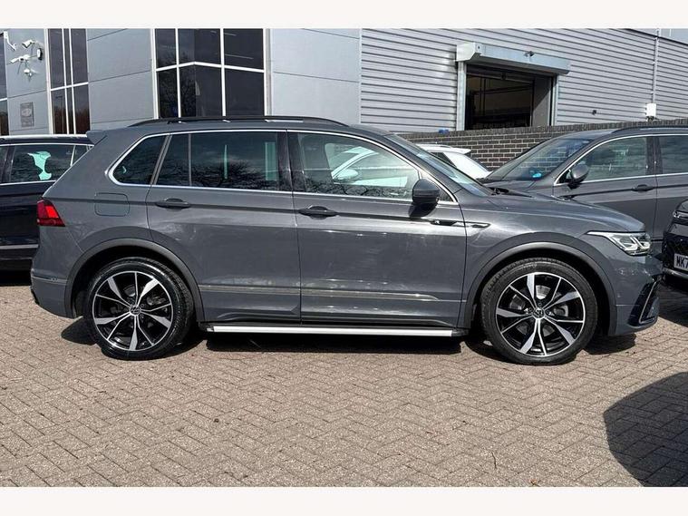 Adaptive cruise control ACC stop and go including speed limiter, App-Connect incl. App-Connect Wireless for Apple CarPlay and Android Auto, Bluetooth phone integration system, Distance control assist, Driver alert system, Driver profile selection, Dynamic road sign display, eCall emergency call system, Electromechanical speed sensitive power steering, Engine start/stop button, Lane keeping system Lane Assist, Lights on warning, Multifunction front facing camera, Outside temperature display, Premium multifunction display with multi colour display, Remote control boot opening, Rev counter, Revision / skills operating concept travel assistant, Service interval indicator, Speed limit display, Start/stop system with regenerative braking, Trip computer, Warning sound and light for doors and tailgate open, All wheel drive - 4Motion, Battery regeneration during braking, XDS electronic differential lock for improved traction and handling, 4 X 20 watt output, 8 Speakers, Diversity antenna for FM reception, Radio, SD card slot, Simultaneous pairing of 2 compatible mobile devices, SMS functionality - read, compose and send SMS messages using touch-screen display, Title and cover art display, Auto dimming interior rear view mirror, Automatic headlight control system, Body colour door handles, Body coloured bumpers in R Line style, Body coloured door mirrors with integrated indicators, Chrome moldings on the side windows, Coming/leaving home lighting function, Dynamic headlight range control, Front and rear electric windows, Heated rear window, High level 3rd brake light, Laminated safety glass windshield, heat and sound insulating, LED headlamps with LED separate daytime running light and dynamic cornering light, LED rear combination lamps, LED rear number plate lights, License plate carrier in front and rear, Poor weather light and cornering light, Privacy glass for rear side windows and rear window, R Line body kit, R Line side sills, Rain sensor windscreen wipers, Rear exhaust tailpipe, Rear fog lamp, Rear side wing doors, Rear spoiler in R style, Rear windscreen washer and wiper with interval delay, Side and rear windows in heat insulating glass, Trailer Stability Programme, Unique R Line badging, Windscreen wipers/ intermittent wipe + 4 position delay, 12V outlet in center console rear and in luggage compartment, 12V outlet in front and tray, 2 cup holders in front, 2 LED front reading lights, 2 LED rear reading lights, 3 bench rear seats in 2nd row, 3 rear headrests, 4 load lashing points, 40:20:40 split folding rear seats, Air Care Climatronic 3 zone automatic climate control with enhanced air filter and controls in the rear, Backrest release for left front seat, Black headlining, Brushed stainless steel pedals and footrest, Carpet mats in front and rear with decorative stitching in Gray, Climate control unit rear with touch function, Door and side trim panel in foam film, insert in leatherette, Front centre armrest, Front footwell illumination, Front seats head restraints (x-adjustment), Height adjustable front seats, Height/reach adjust steering wheel, Instrument lighting white adjustable panel illumination, Interior light with delay, Isofix Preparation 2 Rear child seats, Leather gear knob, Lockable cooled glovebox, Luggage compartment lighting, Luggage net, Rear bench seat asymetrically split folding, longitudinally movable and folding with load-through hatch and center armrest, Remote unlocking for rear seat backrest, Removable luggage cover, Removable rear headrests, Safety optimised front head restraints, Single front passenger seat, Sliding/reclining rear seats, Standard rear seat release, Storage compartment in driver's door, Storage compartment in passenger's door, Storage compartment in rear doors, Storage compartments in luggage area left and right, Storage tray on dashboard, Sun visors with illuminated vanity mirrors, Top front comfort seats, Variable boot floor, height adjustable and removable, Driver assistance pack plus - Tiguan DSG, 3 point seat belt for centre rear seats, 3 point seat belts with seat belt pretensioners for the outer rear seats, Active bonnet, Curtain airbags for front and rear passengers, Driver/Front Passenger airbags, Drivers knee airbag, Electronic parking brake with auto hold, Electronic Stability Control with driver steering recommendation, ABS, ASR, EDL, EDTC and trailer stabilization, Front assist with autonomous emergency braking (for Adaptive Cruise Control ACC up to 130 mph), Front disc brakes, Front passenger airbag deactivation, Front side airbags, Height adjustable front 3 point seatbelts + pretensioners, Hill hold control, Manual child proof rear door locks, Pedestrian monitoring system, Power assisted brakes, Proactive passenger protection system in combination with front assist, Rear disc brakes, Rigid safety cell with front and rear crumple zones, Two tone horn, Warning sound and light for front seat belts if unfastened, Anti theft alarm system with interior monitoring, backup horn and towing protection, Anti theft wheel bolts, Electronic engine immobiliser, 20" Misano black with diamond turned surface alloy wheels with Airstop tyres, Tool kit,
