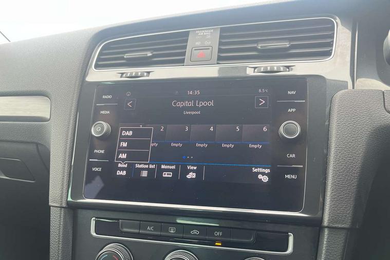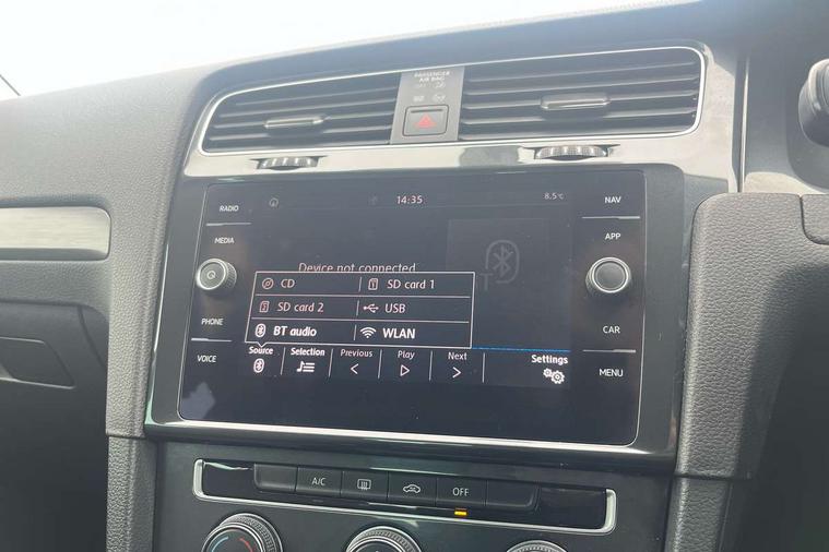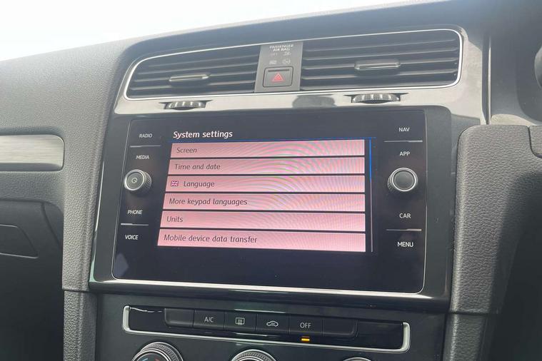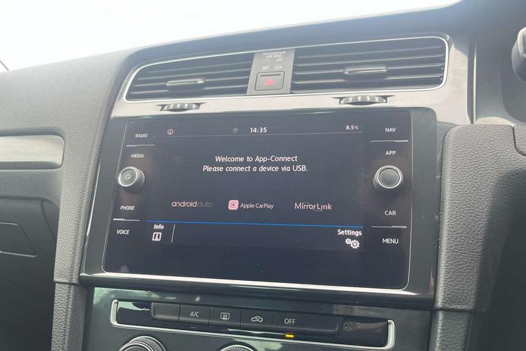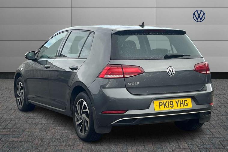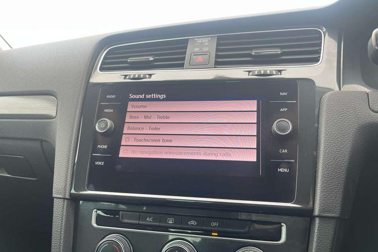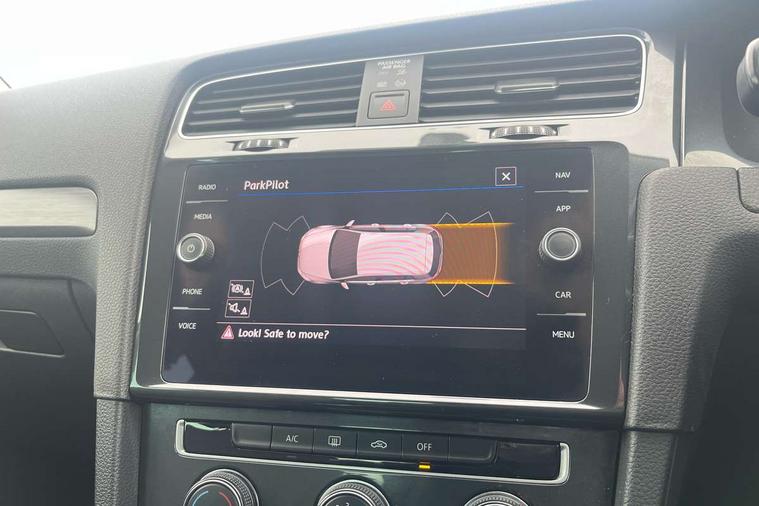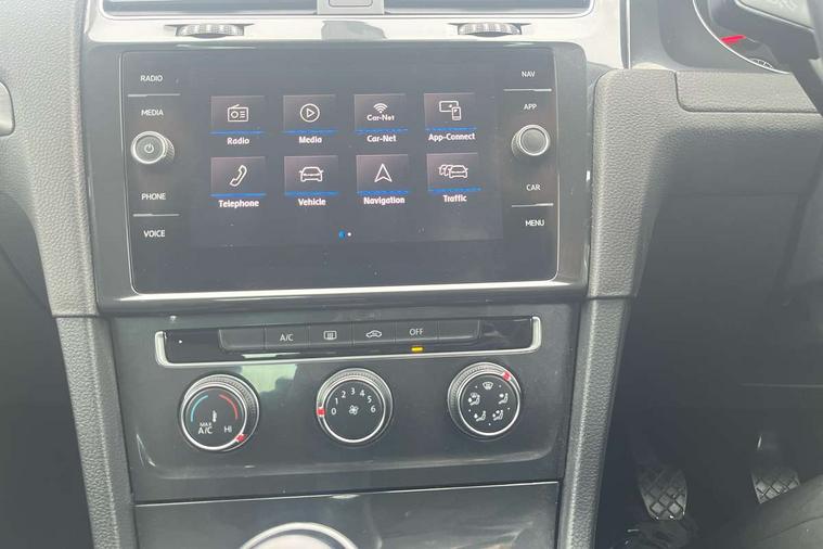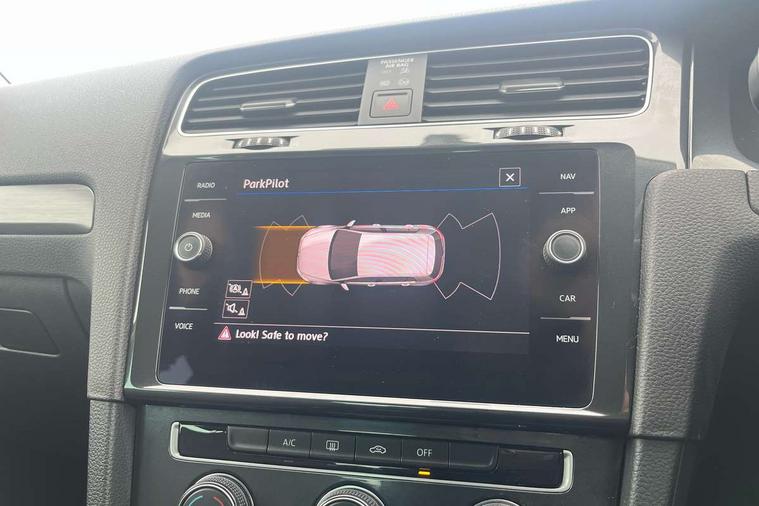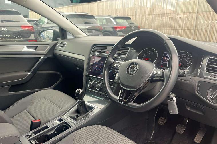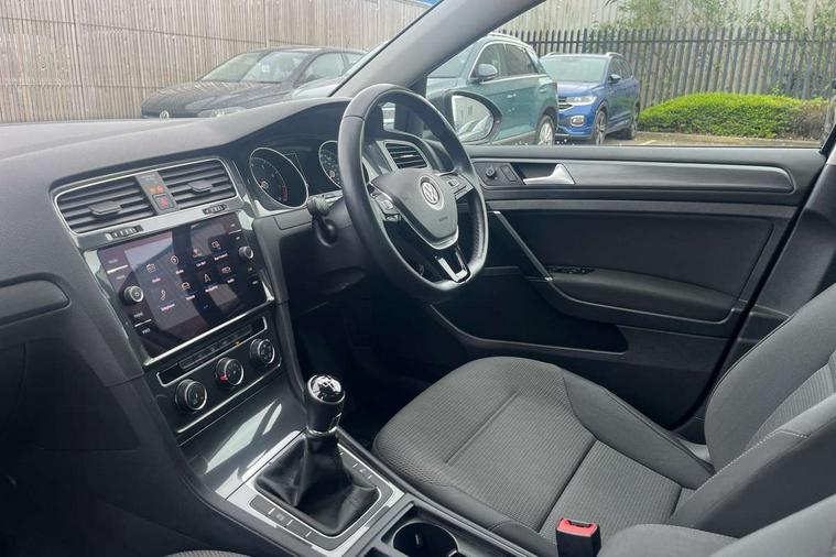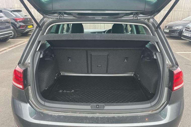 'Lights On' Reminder warning buzzer, ACC - Adaptive cruise control with front assist, forward collision warning, distance monitoring, city emergency brake and speed limiter, Bluetooth telephone and audio connection for compatible devices, Brake pad wear indicator warning light, Driver alert system, Driver profile selection, Driving Mode Selection with four preset modes - Eco, normal, sport or individual modes, Instrument cluster in white, Multifunction computer with visual gear change recommendation for fuel consumption, Power assisted speed sensitive electro-mechanical steering, Push tank flap, Speed limit display, Speedo, rev counter, electronic odometer, trip, service interval display, exterior temperature and fuel gauge, Stop/start system, Warning buzzer and light for front seatbelts unfastened, Battery regeneration during braking, XDS electronic differential lock, Composition media system, DAB Digital radio receiver, MP3/WMA compatability, Multi device interface (MDI) with USB connection, Personalisation 1.1 profile for media, Premium USB cable in choice of either Apple or Android smartphone compatibility, SD card slot, SMS Functionality, USB and SD card connectivity, Black front air intake and radiator grille with chrome insert, Black rear diffuser, Body colour bumpers, Body colour door handles, Body colour door mirrors with integrated indicators, Dusk sensor + automatic driving lights, Electric front windows, Electric rear windows, Electrically adjustable and heated door mirrors, Fully galvanised body, Heated rear windscreen, Hidden exhaust pipe, High level 3rd brake light incorporating LED Technology, LED daytime running lights, LED front fog lights with static cornering light function, Rear fog lamp, Rear tinted glass 65% light absorbing from B pillar backwards, Rear window aerial, Rear window wash/wipe with intermittent wipe, Reflectors in all doors, Tailgate with integrated rear roof spoiler, Windscreen wipers/ intermittent wipe + 4 position delay, 12V socket in luggage compartment, 3 rear headrests, 4 load lashing points in luggage compartment, 60/40 split folding rear seat backrest, Auto fold down lever in rear seat backrest, Bag hook in luggage compartment x 2, Cooled glovebox, Cupholder cover, Dust/pollen filter, Front and rear reading lights incorporating LED technology, Front centre armrest with storage compartment and two rear air vents, Front seat back storage pockets, Grab handles front x 2, rear x 2 with integrated coat hooks, Height and reach adjustable steering wheel, Illuminated vanity mirrors, Instrument lighting white adjustable panel illumination, Interior light delay, Isofix preparation for 2 rear child seats, Load through provision with rear centre armrest and cupholders x2, Luggage compartment lighting, Overhead storage box, Passenger underseat drawer, Pearl grey headlining, Storage box in luggage compartment, Storage compartment in roof console with cover, Storage compartments in centre console, Storage compartments in front doors, Storage compartments in rear doors, Stowable luggage compartment cover, Sun visors, Variable boot floor, height adjustable and removable, Convenience Pack - Golf, Light and Sight pack - Golf, Mirror pack - Golf, 3 rear three point seatbelts, Airbags - Driver's and front passenger's, curtain airbag, Driver's knee, front side impact and passenger's airbag deactivation switch, Anti-lock Braking System (ABS) with Hydraulic Brake Assist (HBA), Automatic post collision braking system, Child locks on rear doors, Driver/Passenger optimised head restraints, Electronic parking brake with auto hold, Electronic stability control (ESC) including Electronic differential lock (EDL) and ASR (Traction control) with deactivation via infotainment system, Pre crash preventive occupant protection, Three point height adjustable front seatbelts with tensioners, Tyre pressure loss indicator, Alarm with interior protection and deactivation via infotainment system, Electronic engine immobiliser, Remote central locking with 2 remote folding keys, Brushed dark silver decorative inserts in dash and door panels, Chrome plated air vent surround, Chrome plated electric mirror adjustment light switch surround, Polar night black centre console, Steel space saver spare wheel,