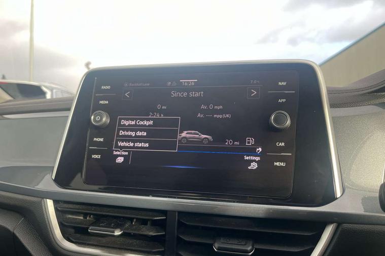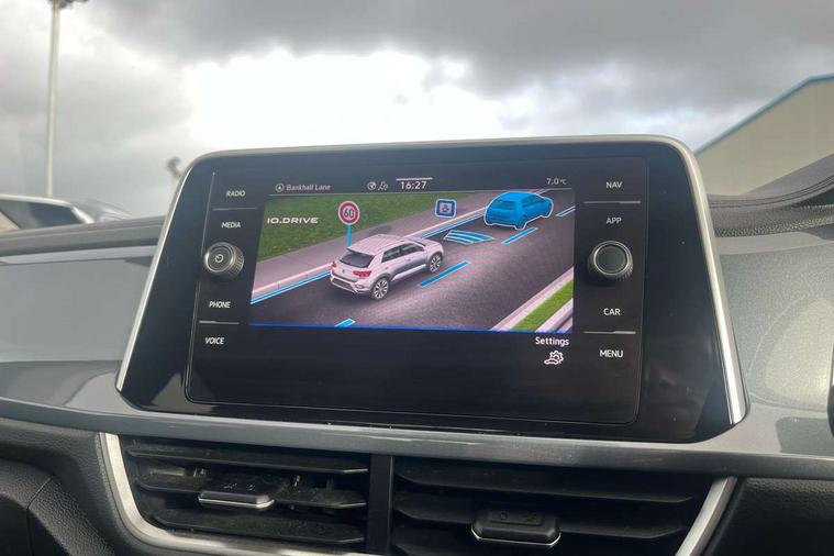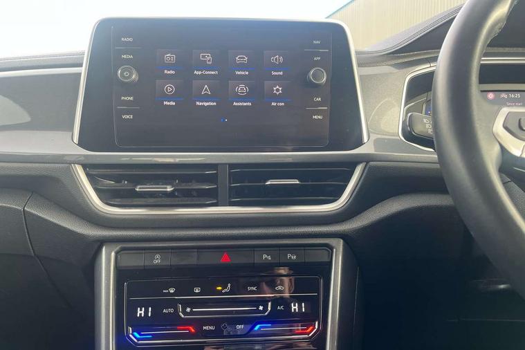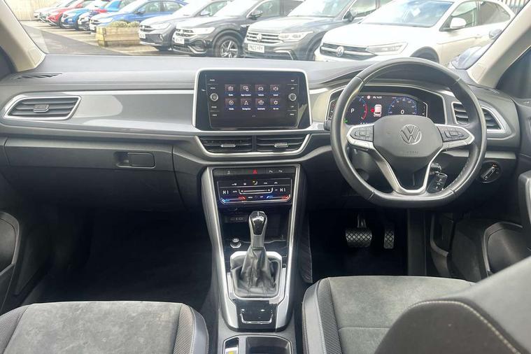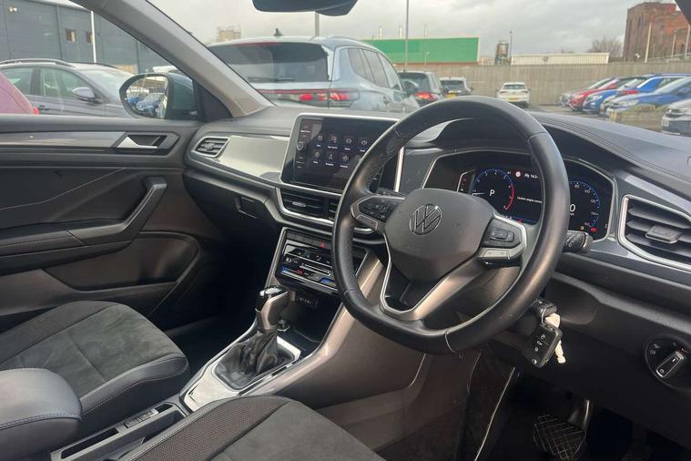 10.25" Digital cockpit pro, Bluetooth mobile phone interface, Driver alert system with fatigue detection, Driver tips and journey analysis, Emergency call service, Lane keeping system Lane Assist, Modified key software - reduce switch off time for key status change to Long no motion, Online services, Park assist including front and rear parking sensors, Service interval indicator, Tailgate/trunk lid release from outside, Think blue trainer driver tips and journey analysis, Warning sound and light for front seatbelts unfastened, Wireless app connect, Battery regeneration during braking, Start/stop function with battery regeneration, Diversity antenna for FM reception, Music playback - MP3, WMA and AAC files, Premium USB cable in choice of either Apple or Android smartphone compatibility, SD card slot, Simultaneous pairing of 2 compatible mobile devices, Title and cover art display, We Connect and We Connect Plus functionality, 3rd brake light, Auto dimming interior rear view mirror, Automatic hazard lights activation under emergency braking, Automatic headlight control with LED separate daytime running lights with coming/leaving home function, Body colour sports bumpers with silver metallic underbody fascia, Dynamic headlight range control with self adjusting whilst driving, Extended roof spoiler, Exterior mirrors aspherical on driver side, convex on front passenger side, External USB type C socket and charging sockets, Front windscreen wiper with intermittent wipe and 4 position delay, Heated rear window, LED rear combination lamps, LED rear number plate lights, LED tail lamp rear comination lamps, Light mode for poor weather, rain, fog or snow, Power windows with comfort operation and circuit breaker, Rain sensor, Rear exhaust tailpipe, Rear fog light on one side and reversing lights on both sides, Rear side wing doors, Rear wash/wipe with intermittent wipe setting, Remote electrically foldable door mirrors, puddle lights and reverse activated passenger's door mirror, 12V power socket in centre console, 3 rear head restraints, 3 seat bench in 2nd row, 4 load lashing points in luggage compartment, Air care climatronic air conditoning system with active combination filter and 2-zone temperature control, Chrome plated radiator grille inserts, air vent surrounds and light switch surrounds, Door and side trim panel with leatherette insert, Drawer under drivers seat, Front + rear carpet mats, Front centre armrest, Front comfort sports seats, Front cupholders x 2, Front footwell illumination, Instrument lighting, white adjustable panel illumination, Interior ambient lighting and surround lighting, Interior light delay, Isofix child seat preparation, Leather gearshift handle, LED interior light with switch off delay/dimmer and 2 front/rear LED reading lights, Load-through provision with cup holder when folded down ('Unsplit rear seat bench, split folding backrest, with centre armrest), Luggage compartment lighting, Non-folding front passenger seat backrest, Single front passenger seat, Storage compartment in left and right luggage area, Storage compartment in rear doors, Storage compartments in driver and front passenger doors, Sunvisors with illuminated vanity mirrors, Variable boot floor, height adjustable and removable, Driver assistance pack without proactive passenger protection - T-Roc, 3 point height adj front seatbelts + pretensioners, 3 point seatbelts in outer rear with ECE label, ABS, Child locks on rear doors, Driver and front passenger airbag with front passenger airbag deactivation, Driver and front passenger safety-optimised head restraints, Drivers seatbelt reminder, Electronic parking brake, Electronic Stability Control (ESC) inc EDL (Electronic Differential Lock) and ASR (Traction Control), Front and rear passengers curtain airbag system including front side airbags, Front assist with city emergency braking and pedestrian monitoring, Front seat side impact airbags, Predictive pedestrian protection, Rear disc brakes, Single tone horn, Tyre pressure loss indicator, Volkswagen roadside assistance, Anti-theft alarm system with interior monitoring, backup horn, and towing protection, Remote central locking with SAFELOCK, radio remote control with 2 remote control folding keys, Trims for alloy wheels,