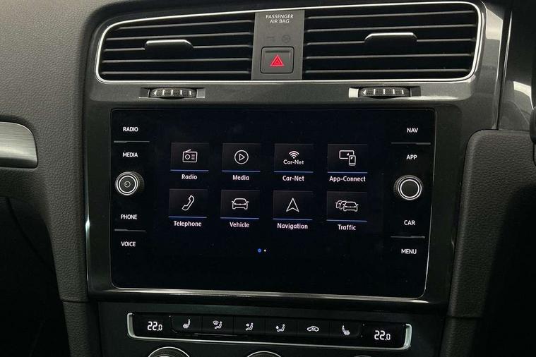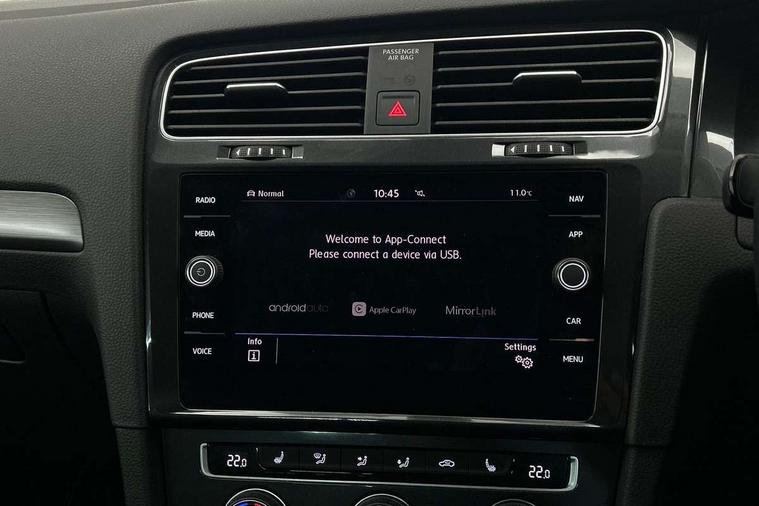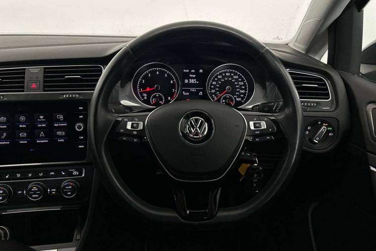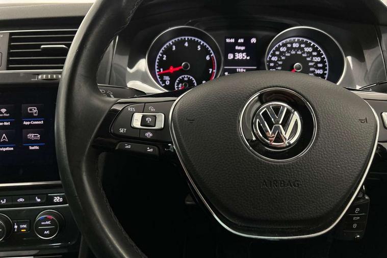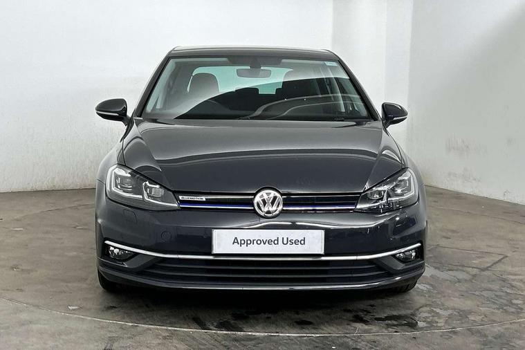 Brushed dark silver decorative inserts in dash and door panels, Chrome plated air vent surround, Chrome-plated light switch surround, Polar night black decorative inserts in centre console, Convenience Pack - Golf, Light and Sight pack - Golf, Mirror pack - Golf, Steel space saver spare wheel, Alarm with interior protection and deactivation via infotainment system, Electronic engine immobiliser, Composition media system, DAB Digital radio receiver, Driver Personalisation profile selection, MP3/WMA compatability, Multi device interface (MDI) with USB connection, Personalisation 1.1 profile for media, Premium USB cable in choice of either Apple or Android smartphone compatibility, SMS Functionality, Title and cover art display, 4 X 20W output, USB connection and socket, USB and SD card connectivity, 3 rear three point seatbelts, Airbags - Driver's and front passenger's, curtain airbag, Driver's knee, front side impact and passenger's airbag deactivation switch, Anti-lock Braking System (ABS) with Hydraulic Brake Assist (HBA), Automatic post collision braking system, Child locks on rear doors, Driver/Passenger optimised head restraints, Electronic parking brake with auto hold, Electronic stability control (ESC) including Electronic differential lock (EDL) and ASR (Traction control) with deactivation via infotainment system, Front ventilated disc brakes and rear disc brakes, Pre crash preventive occupant protection, Three point height adjustable front seatbelts with tensioners, Tyre pressure loss indicator, Auto dimming rear view mirror, Black front air intake and radiator grille with chrome insert, Black rear diffuser, Body colour bumpers, Body colour door handles, Body colour door mirrors with integrated indicators, Dusk sensor + automatic driving lights, Electric front windows, Electric rear windows, Electrically adjustable and heated door mirrors, Fully galvanised body, Heated rear windscreen, Hidden exhaust pipe, High level 3rd brake light incorporating LED Technology, LED front fog lights with static cornering light function, Range adjustable headlights via infotainment system with LED daytime running lights, Rear fog lamp, Rear number plate lights incorporating LED technology, Rear tinted glass 65% light absorbing from B pillar backwards, Rear window aerial, Rear window wash/wipe with intermittent wipe, Reflectors in all doors, Remote electrically foldable door mirrors, door mirror puddle lights and reverse activated kerb-view adjustment on passengers door mirror, Tailgate with integrated rear roof spoiler, Windscreen wipers/ intermittent wipe + 4 position delay, 12V socket in luggage compartment, 3 rear headrests, 4 load lashing points in luggage compartment, 60/40 split folding rear seat backrest, Auto fold down lever in rear seat backrest, Bag hook in luggage compartment x 2, Cooled glovebox, Cover for storage compartment in centre, Cupholder cover, Dust/pollen filter, Front and rear reading lights X 2, Front centre armrest with storage compartment and two rear air vents, Front seat back storage pockets, Grab handles front x 2, rear x 2 with integrated coat hooks, Height and reach adjustable steering wheel, Illuminated vanity mirrors, Instrument lighting white adjustable panel illumination, Interior light delay, Isofix preparation for 2 rear child seats, Load through provision with rear centre armrest and cupholders x2, Luggage compartment lighting, Overhead storage box, Passenger underseat drawer, Pearl grey headlining, Storage box in luggage compartment, Storage compartment in roof console with cover, Storage compartments in centre console, Storage compartments in front doors, Storage compartments in rear doors, Stowable luggage compartment cover, Sun visors, Variable boot floor, height adjustable and removable, 'Lights On' Reminder warning buzzer, ACC - Adaptive cruise control with front assist, forward collision warning, distance monitoring, city emergency brake and speed limiter, Bluetooth telephone and audio connection for compatible devices, Brake pad wear indicator warning light, Driver alert system, Driving Mode Selection with four preset modes - Eco, normal, sport or individual modes, Instrument cluster in white, Multifunction computer with visual gear change recommendation for fuel consumption, Power assisted speed sensitive electro-mechanical steering, Push tank flap, Speed limit display, Speedo, rev counter, electronic odometer, trip, service interval display, exterior temperature and fuel gauge, Stop/start system, Think blue trainer driver tips and journey analysis, Warning buzzer and light for front seatbelts unfastened, We Connect Go Dongle, Battery regeneration during braking, Standard suspension, XDS electronic differential lock,
