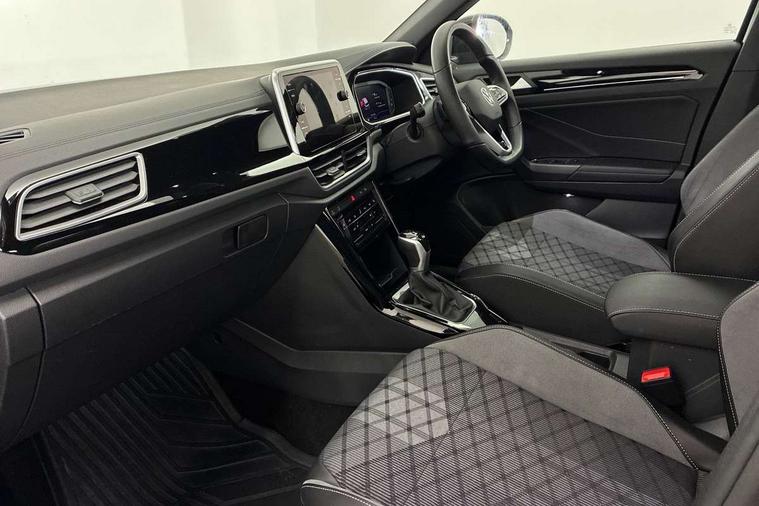 10.25" Digital cockpit pro, Bluetooth mobile phone interface, Driver alert system with fatigue detection, Driver tips and journey analysis, Emergency call service, Lane keeping system Lane Assist, Modified key software - reduce switch off time for key status change to Long no motion, Online services, Park assist including front and rear parking sensors, Service interval indicator, Tailgate/trunk lid release from outside, Think blue trainer driver tips and journey analysis, Warning sound and light for front seatbelts unfastened, Wireless app connect, Battery regeneration during braking, Start/stop function with battery regeneration, Diversity antenna for FM reception, Front and rear 6 speakers, Music playback - MP3, WMA and AAC files, Premium USB cable in choice of either Apple or Android smartphone compatibility, SD card slot, Simultaneous pairing of 2 compatible mobile devices, Title and cover art display, We Connect and We Connect Plus functionality, 3rd brake light, Auto dimming interior rear view mirror, Automatic hazard lights activation under emergency braking, Automatic headlight control with LED separate daytime running lights with coming/leaving home function, Extended roof spoiler, Exterior mirrors aspherical on driver side, convex on front passenger side, External USB type C socket and charging sockets, Front windscreen wiper with intermittent wipe and 4 position delay, Heated rear window, LED Plus headlamps, LED rear combination lamps, LED rear number plate lights, LED tail lamp rear comination lamps, Power windows with comfort operation and circuit breaker, R-Line design body coloured bumpers, Rain sensor, Rear exhaust tailpipe, Rear fog light on one side and reversing lights on both sides, Rear side wing doors, Rear wash/wipe with intermittent wipe setting, Remote electrically foldable door mirrors, puddle lights and reverse activated passenger's door mirror, 12V power socket in centre console, 3 rear head restraints, 3 seat bench in 2nd row, 4 load lashing points in luggage compartment, Air care climatronic air conditoning system with active combination filter and 2-zone temperature control, Black roof lining, Chrome plated radiator grille inserts, air vent surrounds and light switch surrounds, Door and side trim panel with leatherette insert, Drawer under drivers seat, Front + rear carpet mats, Front centre armrest, Front cupholders x 2, Front footwell illumination, Front reading light, Front scuff plates with R logo, Instrument lighting, white adjustable panel illumination, Interior ambient lighting and surround lighting, Interior light delay, Isofix child seat preparation, Leather gearshift handle, Load-through provision with cup holder when folded down ('Unsplit rear seat bench, split folding backrest, with centre armrest), Luggage compartment lighting, Single front passenger seat, Stainless steel pedals, Storage compartment in left and right luggage area, Storage compartment in rear doors, Storage compartments in driver and front passenger doors, Sunvisors with illuminated vanity mirrors, Variable boot floor, height adjustable and removable, Driver assistance pack without proactive passenger protection - T-Roc, 3 point height adj front seatbelts + pretensioners, 3 point seatbelts in outer rear with ECE label, ABS, Child locks on rear doors, Driver and front passenger airbag with front passenger airbag deactivation, Driver and front passenger safety-optimised head restraints, Drivers seatbelt reminder, Electronic parking brake, Electronic Stability Control (ESC) inc EDL (Electronic Differential Lock) and ASR (Traction Control), Front and rear passengers curtain airbag system including front side airbags, Front assist with city emergency braking and pedestrian monitoring, Front seat side impact airbags, Hill start assist, Predictive pedestrian protection, Rear disc brakes, Single tone horn, Tyre pressure loss indicator, Volkswagen roadside assistance, Alarm with interior protection, Anti-theft alarm system with interior monitoring, backup horn, and towing protection, Remote central locking with SAFELOCK, radio remote control with 2 remote control folding keys, Trims for alloy wheels,