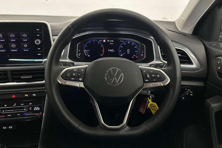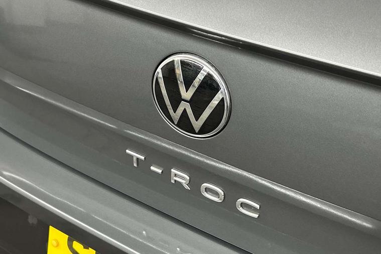10.25" Digital cockpit pro, Bluetooth mobile phone interface, Driver alert system with fatigue detection, Driver tips and journey analysis, Emergency call service, Lane keeping system Lane Assist, Modified key software - reduce switch off time for key status change to Long no motion, Online services, Park assist including front and rear parking sensors, Service interval indicator, Tailgate/trunk lid release from outside, Think blue trainer driver tips and journey analysis, Warning sound and light for front seatbelts unfastened, Wireless app connect, Battery regeneration during braking, Start/stop function with battery regeneration, Diversity antenna for FM reception, Music playback - MP3, WMA and AAC files, Premium USB cable in choice of either Apple or Android smartphone compatibility, SD card slot, Simultaneous pairing of 2 compatible mobile devices, Title and cover art display, We Connect and We Connect Plus functionality, 3rd brake light, Auto dimming interior rear view mirror, Automatic hazard lights activation under emergency braking, Automatic headlight control with LED separate daytime running lights with coming/leaving home function, Body colour sports bumpers with silver metallic underbody fascia, Dynamic headlight range control with self adjusting whilst driving, Extended roof spoiler, Exterior mirrors aspherical on driver side, convex on front passenger side, External USB type C socket and charging sockets, Front windscreen wiper with intermittent wipe and 4 position delay, Heated rear window, LED rear combination lamps, LED rear number plate lights, LED tail lamp rear comination lamps, Light mode for poor weather, rain, fog or snow, Power windows with comfort operation and circuit breaker, Rain sensor, Rear exhaust tailpipe, Rear fog light on one side and reversing lights on both sides, Rear side wing doors, Rear wash/wipe with intermittent wipe setting, Remote electrically foldable door mirrors, puddle lights and reverse activated passenger's door mirror, 12V power socket in centre console, 3 rear head restraints, 3 seat bench in 2nd row, 4 load lashing points in luggage compartment, Air care climatronic air conditoning system with active combination filter and 2-zone temperature control, Chrome plated radiator grille inserts, air vent surrounds and light switch surrounds, Door and side trim panel with leatherette insert, Drawer under drivers seat, Front + rear carpet mats, Front centre armrest, Front comfort sports seats, Front cupholders x 2, Front footwell illumination, Instrument lighting, white adjustable panel illumination, Interior ambient lighting and surround lighting, Interior light delay, Isofix child seat preparation, Leather gearshift handle, LED interior light with switch off delay/dimmer and 2 front/rear LED reading lights, Load-through provision with cup holder when folded down ('Unsplit rear seat bench, split folding backrest, with centre armrest), Luggage compartment lighting, Non-folding front passenger seat backrest, Single front passenger seat, Storage compartment in left and right luggage area, Storage compartment in rear doors, Storage compartments in driver and front passenger doors, Sunvisors with illuminated vanity mirrors, Variable boot floor, height adjustable and removable, Driver assistance pack without proactive passenger protection - T-Roc, 3 point height adj front seatbelts + pretensioners, 3 point seatbelts in outer rear with ECE label, ABS, Child locks on rear doors, Driver and front passenger airbag with front passenger airbag deactivation, Driver and front passenger safety-optimised head restraints, Drivers seatbelt reminder, Electronic parking brake, Electronic Stability Control (ESC) inc EDL (Electronic Differential Lock) and ASR (Traction Control), Front and rear passengers curtain airbag system including front side airbags, Front assist with city emergency braking and pedestrian monitoring, Front seat side impact airbags, Predictive pedestrian protection, Rear disc brakes, Single tone horn, Tyre pressure loss indicator, Volkswagen roadside assistance, Anti-theft alarm system with interior monitoring, backup horn, and towing protection, Remote central locking with SAFELOCK, radio remote control with 2 remote control folding keys, Trims for alloy wheels,