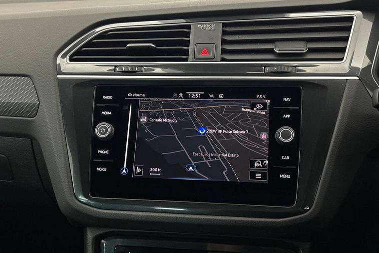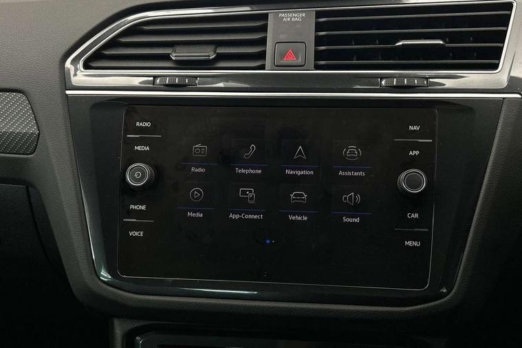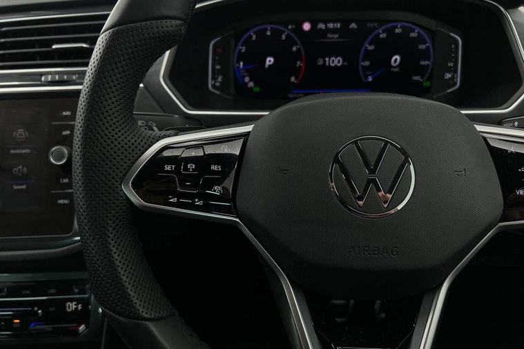 Adaptive cruise control ACC stop and go including speed limiter, App-Connect incl. App-Connect Wireless for Apple CarPlay and Android Auto, Bluetooth phone integration system, Distance control assist, Driver alert system, Driver profile selection, Dynamic road sign display, eCall emergency call system, Electromechanical speed sensitive power steering, Engine start/stop button, Lane keeping system Lane Assist, Lights on warning, Multifunction front facing camera, Outside temperature display, Premium multifunction display with multi colour display, Remote control boot opening, Rev counter, Revision / skills operating concept travel assistant, Service interval indicator, Speed limit display, Start/stop system with regenerative braking, Trip computer, Warning sound and light for doors and tailgate open, Battery regeneration during braking, XDS electronic differential lock for improved traction and handling, 4 X 20 watt output, 8 speakers, Diversity antenna for FM reception, Radio, SD card slot, Simultaneous pairing of 2 compatible mobile devices, SMS functionality - read, compose and send SMS messages using touch-screen display, Title and cover art display, USB C ports, Auto dimming interior rear view mirror, Automatic headlight control system, Body colour door handles, Chrome moldings on the side windows, Coming/leaving home lighting function, Dynamic headlight range control, Front and rear electric windows, Heated rear window, High level 3rd brake light, Laminated safety glass windshield, heat and sound insulating, LED headlamps with LED separate daytime running light and dynamic cornering light, LED rear combination lamps, LED rear number plate lights, License plate carrier in front and rear, Poor weather light and cornering light, R Line body kit, R Line side sills, Rain sensor windscreen wipers, Rear exhaust tailpipe, Rear fog lamp, Rear side wing doors, Rear spoiler in R style, Rear windscreen washer and wiper with interval delay, Side and rear windows in heat insulating glass, Trailer Stability Programme, Unique R Line badging, Windscreen wipers/ intermittent wipe + 4 position delay, 12V outlet in center console rear and in luggage compartment, 12V outlet in front and tray, 2 cup holders in front, 2 LED front reading lights, 2 LED rear reading lights, 3 bench rear seats in 2nd row, 3 rear headrests, 4 load lashing points, 40:20:40 split folding rear seats, Air Care Climatronic 3 zone automatic climate control with enhanced air filter and controls in the rear, Backrest release for left front seat, Black headlining, Brushed stainless steel pedals and footrest, Carpet mats in front and rear with decorative stitching in Gray, Climate control unit rear with touch function, Door and side trim panel in foam film, insert in leatherette, Front centre armrest, Front footwell illumination, Front seats head restraints (x-adjustment), Height adjustable front seats, Height/reach adjust steering wheel, Instrument lighting white adjustable panel illumination, Interior light with delay, Isofix Preparation 2 Rear child seats, Leather gear knob, Lockable cooled glovebox, Luggage compartment lighting, Luggage net, Rear bench seat asymetrically split folding, longitudinally movable and folding with load-through hatch and center armrest, Remote unlocking for rear seat backrest, Removable luggage cover, Removable rear headrests, Safety optimised front head restraints, Single front passenger seat, Sliding/reclining rear seats, Standard rear seat release, Storage compartment in driver's door, Storage compartment in passenger's door, Storage compartment in rear doors, Storage compartments in luggage area left and right, Storage tray on dashboard, Sun visors with illuminated vanity mirrors, Top front comfort seats, Variable boot floor, height adjustable and removable, Driver assistance pack plus - Tiguan DSG, 3 point seat belt for centre rear seats, 3 point seat belts with seat belt pretensioners for the outer rear seats, Active bonnet, Curtain airbags for front and rear passengers, Driver/Front Passenger airbags, Drivers knee airbag, Electronic parking brake with auto hold, Electronic Stability Control with driver steering recommendation, ABS, ASR, EDL, EDTC and trailer stabilization, Front assist with autonomous emergency braking (for Adaptive Cruise Control ACC up to 130 mph), Front disc brakes, Front passenger airbag deactivation, Front side airbags, Height adjustable front 3 point seatbelts + pretensioners, Hill hold control, Manual child proof rear door locks, Pedestrian monitoring system, Power assisted brakes, Proactive passenger protection system in combination with front assist, Rear disc brakes, Rigid safety cell with front and rear crumple zones, Two tone horn, Warning sound and light for front seat belts if unfastened, Anti theft alarm system with interior monitoring, backup horn and towing protection, Anti theft wheel bolts, Electronic engine immobiliser, Tool kit,