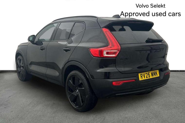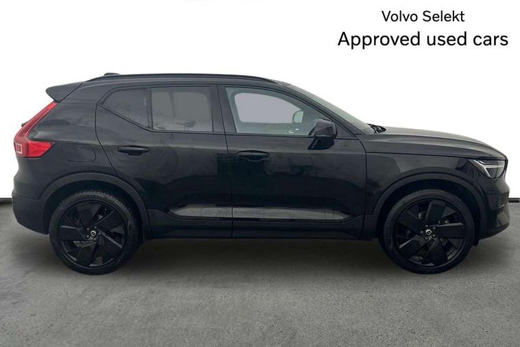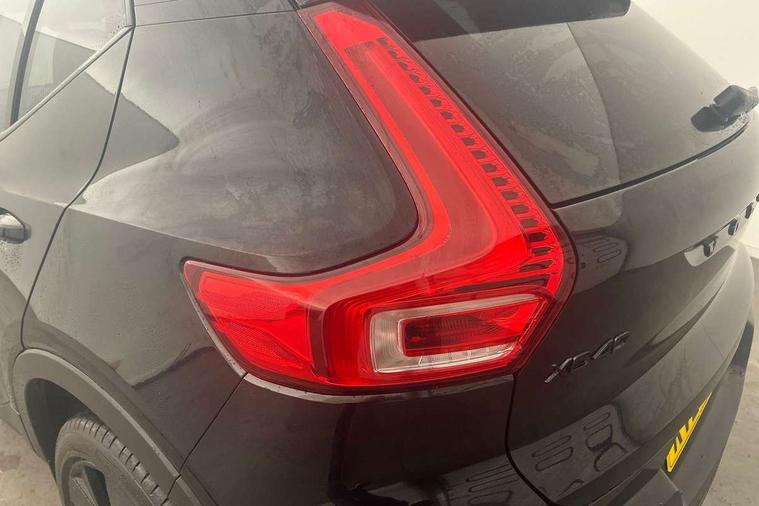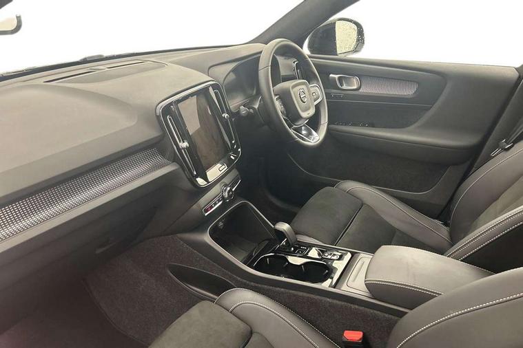 12.3" Progressive Driver Display, 9" centre console portrait touch screen, Adjustable steering wheel force, Android auto (Wired), Apple carplay (wired), Bluetooth handsfree system, Driver alert control, Driver assistance (pilot assist and adaptive cruise control), Driver awareness - Blind spot information system with steer assist, cross traffic alert with autobrake and rear collision warning and mitigation, E-call, Front park assist, Google automotive services - Enabled entertainment apps, navigation with google maps, voice recognition with google assistant, Hands free power tailgate, Intelligent speed assistance, Lane keeping aid, Oncoming Lane Mitigation, Rear park assist, Speed sensitive steering, Volvo cars services with app - Driving journal, emergency and breakdown call, engine remote start, remote door locking/unlocking and vehicle dashboard, Wireless/Inductive Mobile Phone Charging, Automatic transmission with start/stop and manual change functions, Dynamic chassis, DAB Digital radio, Steering wheel mounted remote controls, Adaptive brake lights with high level LED brake lights, Auto dimming feature for exterior door mirrors, Auto dimming interior mirror, Automatic headlamp levelling, Automatic LED Headlights + Active high beam incorporating daytime running lights, Colour coordinated auto folding and heated power door mirrors, Dark tinted windows - rear side windows and rear screen, Front aluminium tread plates, Front and rear electric windows, High gloss black front and rear skid plate, High gloss black front bumper deco, High gloss black front grille strikethrough and ironmark, High gloss black rear model, engine and volvo logo badges, High gloss black window trim, Home safe and approach lighting, Integrated roof rails in high gloss black, LED front fog lights, Puddle lights, Rain sensor with automatic windscreen wiper activation, Rear side wing doors, Rear wiper, Roof antenna, Roof spoiler, Visible VIN plate, 12V socket in front tunnel console and luggage compartment, 2-Zone electronic climate control with CleanZone air quality system and pollen filter, 3 seat bench in 2nd row, 3 Spoke tailored steering wheel with chrome trim, 60/40 versatile split folding rear seat, Centre console cupholders and storage, Charcoal headlining, Connect textile/microtech upholstery, Flexible load floor and grocery bag holder, Floor mats, Front cabin courtesy lights, Front door pocket, front cupholder, ambient front door, rear reading, rear courtesy, instrument panel and tailgate lighting, Front footwell illumination, Front headrests, Front reading lights, Front seat cushion extensions, Front side step illumination (under door), Glovebox bag hook, Heated front seats, Height adjustable passenger seat, Height/reach adjustable steering column, High gloss centre tunnel deco, Illuminated glovebox, Illuminated luggage compartment, Illuminated vanity mirrors + ticket holder, Integrated waste bin, Isofix attachments on outer rear seats, Load cover, Load protection net, Multi directional lumbar support for driver and passenger seat, Power driver seat with memory + exterior mirrors memory, Rear armrest with cupholders, Rear headrests, Single front passenger seat, Underfloor cargo storage, Climate pack without heated front seats - XC40, 3x3 point rear seatbelts, City safety with steering support with Pedestrian + cyclist + front collision warning with full auto brake and rear auto brake, Driver and passenger airbags, Drivers knee airbag, Electronic parking brake with auto hold, First aid kit, Front and outer rear seatbelt reminder and pretensioners, Front seats SIPS airbags, Hill descent control, Hill start assist, Inflatable curtain, Passenger airbag cut-off device, Power child locks on rear doors, Road sign information display, Run off Road Protection, SIPS (Side Impact Protection System), Slippery road and hazard light alert, Stability and Traction Control with Spin control, Engine Drag Control and Corner Traction Control, Tyre pressure monitoring system, Vehicle deceleration control with Anti-lock Brake System, Electronic Brake Distribution and Emergency Brake Assist, Warning triangle, WHIPS whiplash protection system - front, 2 x Key integrated remote control central locking including with deadlocking system and auto open/close windows, Anti-theft alarm including immobiliser/volume sensor + level sensor, Keyless drive includes keyless entry and keyless start, Locking wheel nuts, 20" 5 spoke high gloss black alloy wheels,