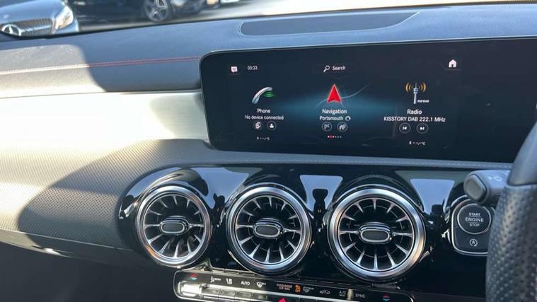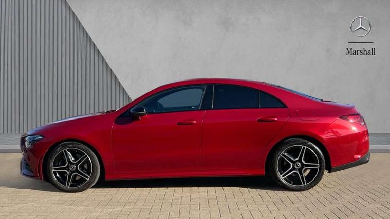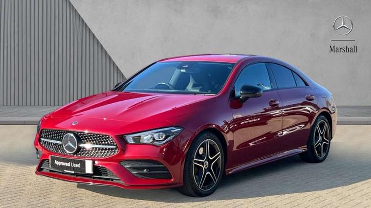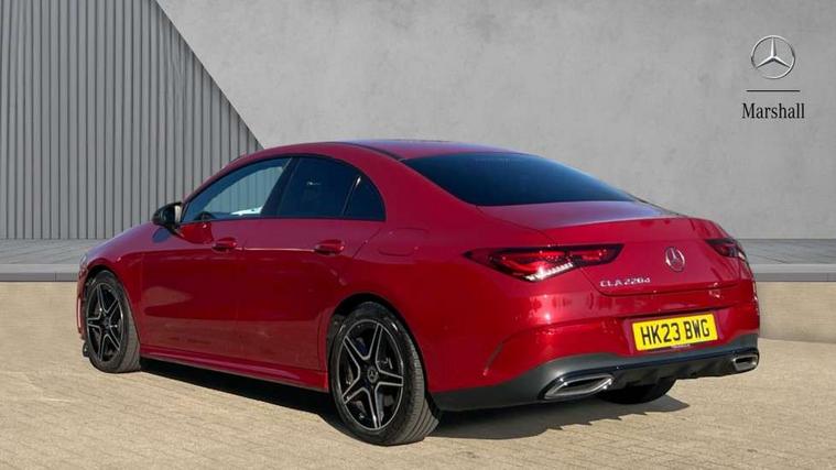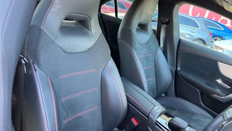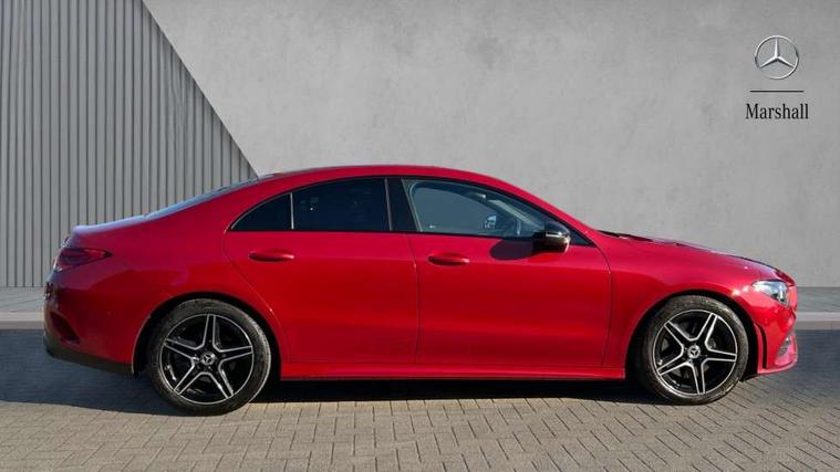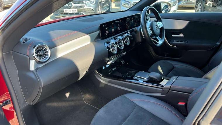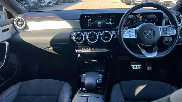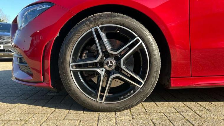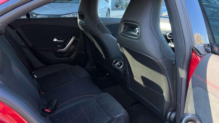 10.25 inch Instrument display with digital cockpit, 10.25 inch touchscreen central media display, Active lane keeping assist, Attention assist - Monitors steering behaviour and long journey fatigue, Bluetooth connection, Car wash mode, Cruise control with limiter, Direct steer system with speed sensitive power steering, DYNAMIC SELECT with a choice of driving modes (ECO, Comfort, Sport and Individual), ECO start/stop function, Fluid level warning indicator for fuel, oil, coolant and washer fluid, Hard-disk navigation, Hey Mercedes Voice activation, Lamp failure indicator, Mercedes me connect including emergency call system, accident recovery, breakdown and maintenance management, Mercedes me remote services, Outside temperature gauge, Owners manual and service booklet in English, Pre-installation of private car share, Preinstallation for Mercedes Benz link, Radio aerial integrated into front and rear windshields, Service indicator (ASSYST), Smartphone integration with Apple CarPlay and Android auto, Speed limit assist, Trip computer in multifunction display with current consumption indicator, Lowered comfort suspension, Rear axle multi-link, DAB digital radio tuner, MBUX multimedia system, Mercedes Benz sound system (100 W) with 6 speakers, USB (type C) ports (2) in stowage compartment and 1 in front of centre console, Adaptive brake lights, AMG body styling with AMG front apron and rear apron and visible exhaust tailpipe in chrome trim elements, AMG bodystyling side skirts, Body colour bumpers, Body colour door handles, Chrome beltline strips, Diamond radiator grille pins in chrome, Electric windows, Electrically adjustable and heated door mirrors with integrated LED indicators, Exhaust system with 2 Visible tailpipe trim elements and rear apron with trim in chrome, Headlamp assist automatic headlamp activation, Heated glass rear windscreen + timer control, High level LED third brake light, Interior mirror with black reading lamps and frameless, LED high performance headlamps with integrated LED daytime running lights, LED tail lamp, Privacy glass with dark tinting on rear side windows and rear window, Rain sensing windscreen wipers with two sensitivity settings, Rear boot, Rear fog lamp, Rear side wing doors, Variable front intermittent wipers, Window line trim strip in chrome, 3 seat bench in 2nd row, 3 spoke flattened bottom nappa leather multifunction steering wheel with perforated leather in grip area, 40:20:40 split folding rear seat backrests, Air conditioning - Two zone thermotronic luxury automatic climate control with display, Air vents with surround in silver chrome, Artico man-made leather upholstery, Automatic child seat recognition sensor, Black roof lining, Brushed stainless steel sports pedals with rubber studs, Floor mats with stitched AMG lettering, Front centre armrest with stowage, Front door sills with Mercedes Benz lettering, Galvanished gear shift paddles on steering wheel, Heated front seats, Illuminated glove compartment stowage, Interior lighting - 64 colour Ambient lighting, Luggage net on driver/front passenger seat backrest, Manually adjustable front seats, Manually height and reach adjustable steering column, Rear head restraints, Single front passenger seat, Sport seats with fixed head restraints, Stowage compartment in centre console with retractable cover, Sunvisors with illuminated vanity mirrors, Touchpad on center console, Twin front cupholders, Two outer rear seat isofix and top tether child seat fixing points, Light and sight pack - CLA, Mirror pack - CLA, Night package - CLA, Parking package - CLA, Seat comfort pack - CLA, Active bonnet pedestrain safety measure which detects an impact and raises bonnet by 65mm, Active brake assist includes forward collision warning system with autonomous braking, Adaptive brake assist with hold function and hill start assist, Anti lock braking system (ABS) with brake assist, Black seat belts, Bonnet with power domes, Brake pad wear warning indicator, Childproof locks manually operated for rear doors and electrically operated for rear power windows, Crash responsive emergency lighting, Driver and front passenger head and sidebags, Driver and front passenger windowbags, Drivers knee airbag, Dual stage driver and front passenger airbags, Electric parking brake, Electronic stability programme with acceleration skid control, ESP curve dynamic assist, Front and rear seatbelt reminder, Front passenger seat occupancy sensor, Three point rear seat belts, Tyre pressure monitoring system, Warning triangle and first aid kit, Guard 360 degree guard vehicle protection system with immobiliser and interior protection, Keyless Go starting function, Remote central locking and crash sensor with emergency opening function, Light aluminium with longitudinal grain interior trim, 18" AMG 5 twin spoke light alloy wheels painted in black with high sheen finish, Summer tyres, Tirefit tyre sealant kit,