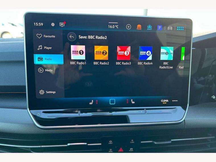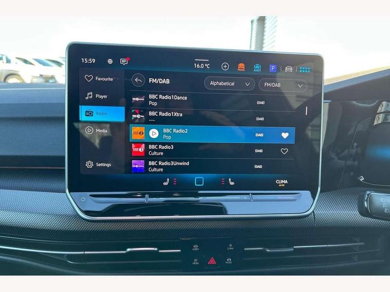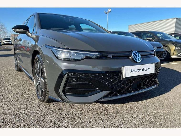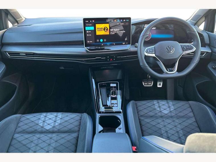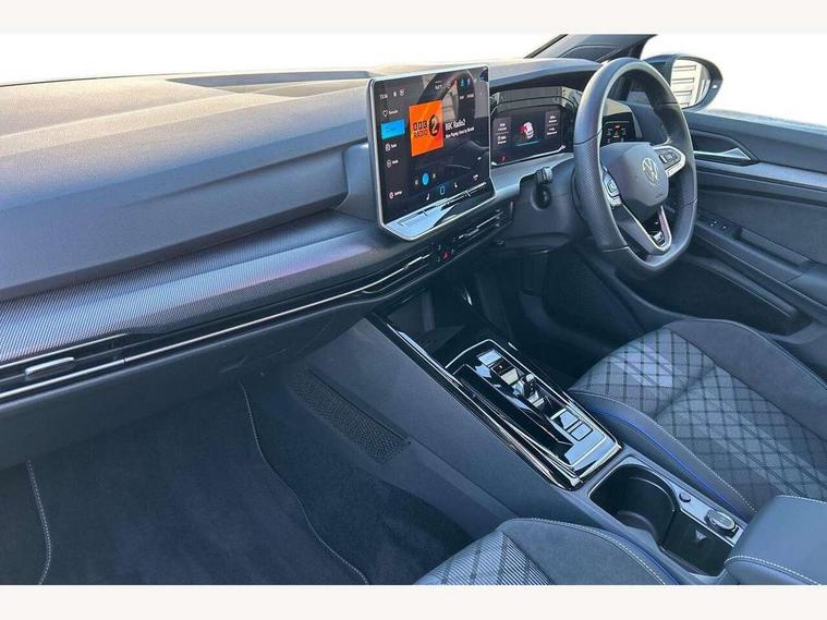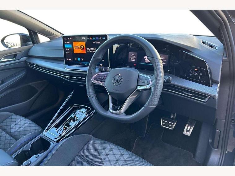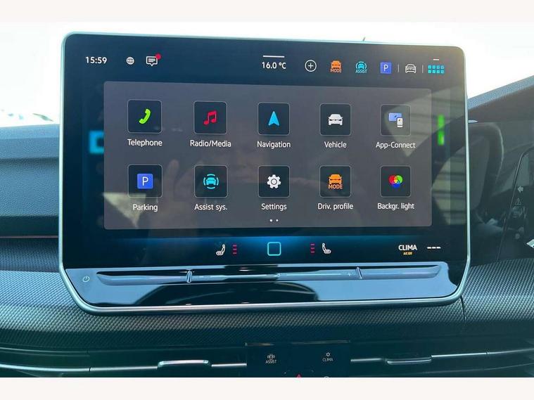 Activated carbon canister, Adaptive cruise control (ACC), Advanced driver attention and drowsiness monitor, Dynamic road sign display, Dynamic steering, E-Sim card for online connectivity, eCall emergency call system, Multi-color Digital cockpit pro, selection of different info profile possible, Multifunction front facing camera for distance control, Navigation system, Oncoming vehicle braking when turning including swerve support, Speed limiter, Speedo, rev counter, electronic odometer, trip, service interval display, exterior temperature and fuel gauge, Traffic jam assist, Voice enhancer and voice control, Warning signal and warning light for front and rear seatbelts not fastened, We connect plus preparation, We connect preparation, Wireless app connect, Hybrid propulsion system, Petrol Particulate Filter, Start-stop system with battery regeneration (recuperation - energy recovery during braking), XDS electronic differential lock for improved traction and handling, 2 USB C ports in front, 2 USB charging sockets on the centre console in the rear charging capacity upto 45W, Digital radio reception (DAB), Diversity antenna for FM reception, Gaming platform via car app, Infotainment system with 12.9" display, Mobile phone interface with inductive charging feature, 3rd brake light, Auto dimming rear view mirror, Automatic headlamp activation with Coming home and Leaving home feature, Body colored bumpers in R-Line style, Body colour door handles, Exterior ambient lighting, Exterior mirrors convex on the left and aspherical on the right, Front and rear electric windows, Heat insulating windshield made of laminated glass, LED separate daytime running light, Rain sensor, Rear exhaust tailpipe, Rear fog light on one side and reversing lights on both sides, Rear side wing doors, Rear windscreen washer and wiper with interval delay, Remote electrically foldable door mirrors, puddle lights and reverse activated passenger's door mirror, Volkswagen logo in front, illuminated lighting animation with wake up/goodbye scenario and illuminated door handles, Welcome light with surround lighting, 12V socket in front centre console, 12V socket in luggage compartment, 3 rear head restraints, 3 seat bench in 2nd row, Ambient lighting with 30 colour including LED light unit in front footwell with selectable light colour, Black roof lining, Brushed stainless steel pedals, Chrome plated radiator grille inserts, air vent surrounds and light switch surrounds, Door insert, side trim panel and arm support in leatherette, Front + rear black carpet mats, Front centre armrest, Front seat lumbar support adjuster, Integrated front head restraints, ISOFIX anchors for child seats on outer rear bench seats and on front passanger seat compatible for i-Size, Luggage compartment lighting, Manual height adjustable front passenger seat, Manually height adjustable driver seat, Plastic gear knob, Premium sports seats in front, Rear cupholder and loadthough, Sardegna cloth upholstery with front and outer rear seats Art Velour inner sides of bolsters, Single front passenger seat, Split folding backrest with centre armrest and unsplit rear seat bench, Sun visors with illuminated vanity mirrors, Titanium black instrument panel, Black exterior Styling package with Matrix LED headlights - Golf, Winter package - Golf DSG Estate/Hatchback, 3 point height adj front seatbelts + pretensioners, 3 rear three point seatbelts, ABS, Autonomous emergency braking front assist with pedestrian and cyclist monitoring, Child locks on rear doors, Driver and front passenger airbag with front passenger airbag deactivation, Electronic parking brake with auto hold, ESC (Electronic Stability Control), Extended pedestrian protection measures, Hill start assist, Rear disc brakes, Two tone horn, Tyre pressure loss indicator, Volkswagen roadside assistance, Anti theft wheel bolts, Preparation for alcohol interlock, Decorative inserts carbon grey for dashboard and front door trim panels, 18" Leeds alloy wheels, Tool kit for tyre mobility set, Tyre mobility kit Includes 12V compressor and tyre sealant,