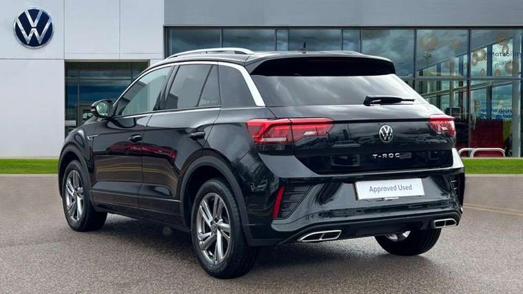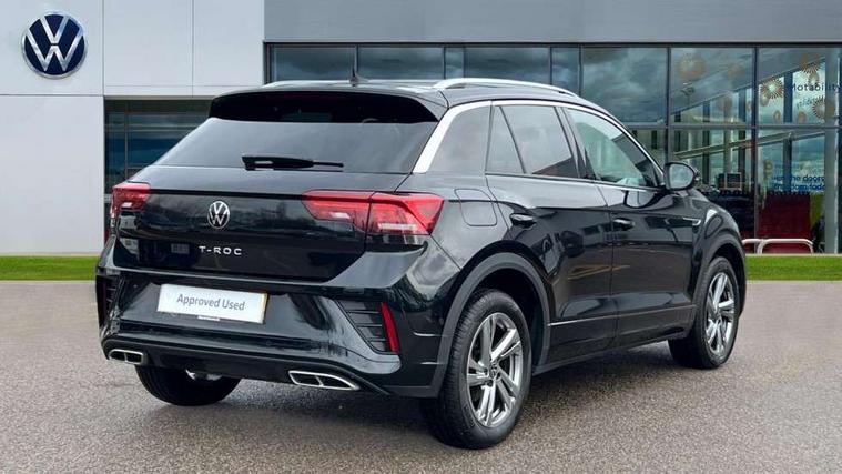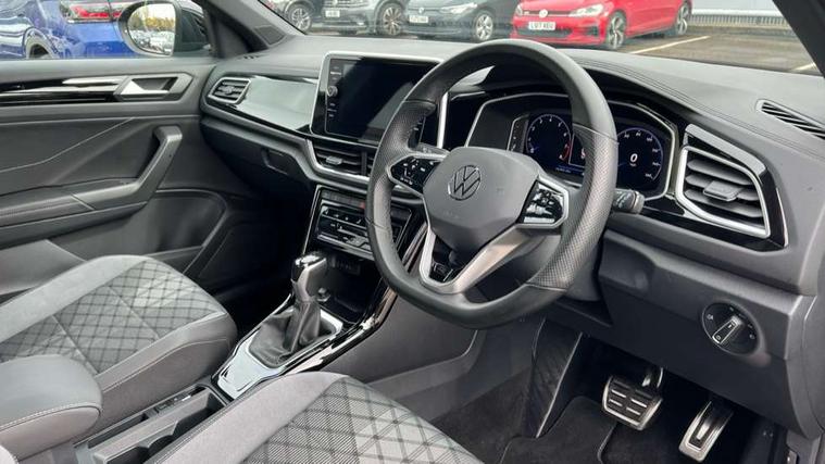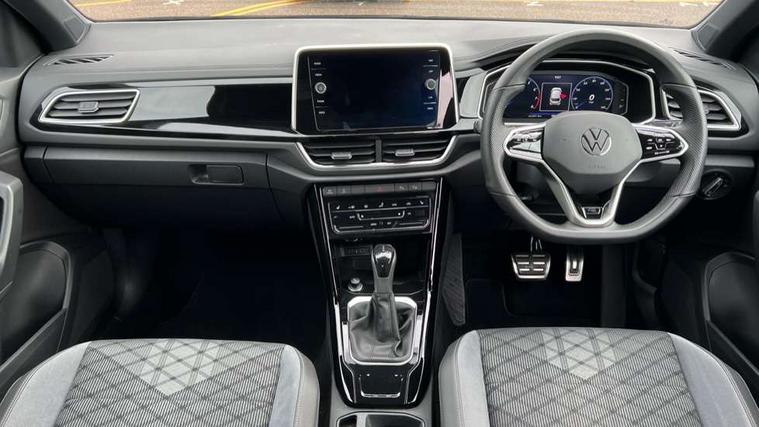 10.25" Digital cockpit pro, Bluetooth mobile phone interface, Driver alert system with fatigue detection, Driver tips and journey analysis, Emergency call service, Lane keeping system Lane Assist, Modified key software - reduce switch off time for key status change to Long no motion, Online services, Park assist including front and rear parking sensors, Service interval indicator, Tailgate/trunk lid release from outside, Think blue trainer driver tips and journey analysis, Warning sound and light for front seatbelts unfastened, Wireless app connect, Battery regeneration during braking, Start/stop function with battery regeneration, Diversity antenna for FM reception, Front and rear 6 speakers, Music playback - MP3, WMA and AAC files, Premium USB cable in choice of either Apple or Android smartphone compatibility, SD card slot, Simultaneous pairing of 2 compatible mobile devices, Title and cover art display, We Connect and We Connect Plus functionality, 3rd brake light, Auto dimming interior rear view mirror, Automatic hazard lights activation under emergency braking, Automatic headlight control with LED separate daytime running lights with coming/leaving home function, Extended roof spoiler, Exterior mirrors aspherical on driver side, convex on front passenger side, External USB type C socket and charging sockets, Front windscreen wiper with intermittent wipe and 4 position delay, Heated rear window, LED Plus headlamps, LED rear combination lamps, LED rear number plate lights, LED tail lamp rear comination lamps, Power windows with comfort operation and circuit breaker, R-Line design body coloured bumpers, Rain sensor, Rear exhaust tailpipe, Rear fog light on one side and reversing lights on both sides, Rear side wing doors, Rear wash/wipe with intermittent wipe setting, Remote electrically foldable door mirrors, puddle lights and reverse activated passenger's door mirror, 12V power socket in centre console, 3 rear head restraints, 3 seat bench in 2nd row, 4 load lashing points in luggage compartment, Air care climatronic air conditoning system with active combination filter and 2-zone temperature control, Black roof lining, Chrome plated radiator grille inserts, air vent surrounds and light switch surrounds, Door and side trim panel with leatherette insert, Drawer under drivers seat, Front + rear carpet mats, Front centre armrest, Front cupholders x 2, Front footwell illumination, Front reading light, Front scuff plates with R logo, Instrument lighting, white adjustable panel illumination, Interior ambient lighting and surround lighting, Interior light delay, Isofix child seat preparation, Leather gearshift handle, Load-through provision with cup holder when folded down ('Unsplit rear seat bench, split folding backrest, with centre armrest), Luggage compartment lighting, Single front passenger seat, Stainless steel pedals, Storage compartment in left and right luggage area, Storage compartment in rear doors, Storage compartments in driver and front passenger doors, Sunvisors with illuminated vanity mirrors, Variable boot floor, height adjustable and removable, Driver assistance pack without proactive passenger protection - T-Roc, 3 point height adj front seatbelts + pretensioners, 3 point seatbelts in outer rear with ECE label, ABS, Child locks on rear doors, Driver and front passenger airbag with front passenger airbag deactivation, Driver and front passenger safety-optimised head restraints, Drivers seatbelt reminder, Electronic parking brake, Electronic Stability Control (ESC) inc EDL (Electronic Differential Lock) and ASR (Traction Control), Front and rear passengers curtain airbag system including front side airbags, Front assist with city emergency braking and pedestrian monitoring, Front seat side impact airbags, Hill start assist, Predictive pedestrian protection, Rear disc brakes, Single tone horn, Tyre pressure loss indicator, Volkswagen roadside assistance, Alarm with interior protection, Anti-theft alarm system with interior monitoring, backup horn, and towing protection, Remote central locking with SAFELOCK, radio remote control with 2 remote control folding keys, Trims for alloy wheels,