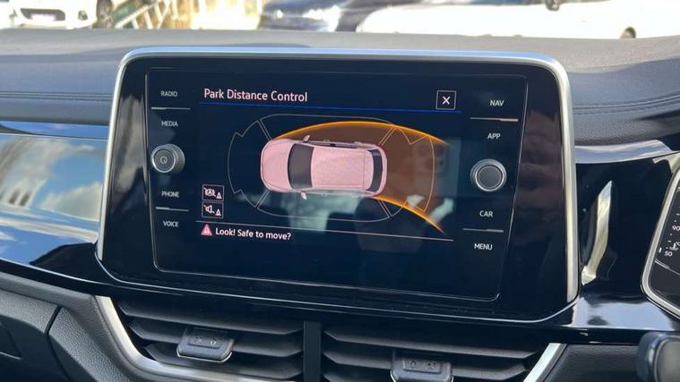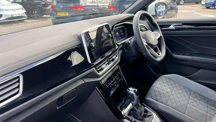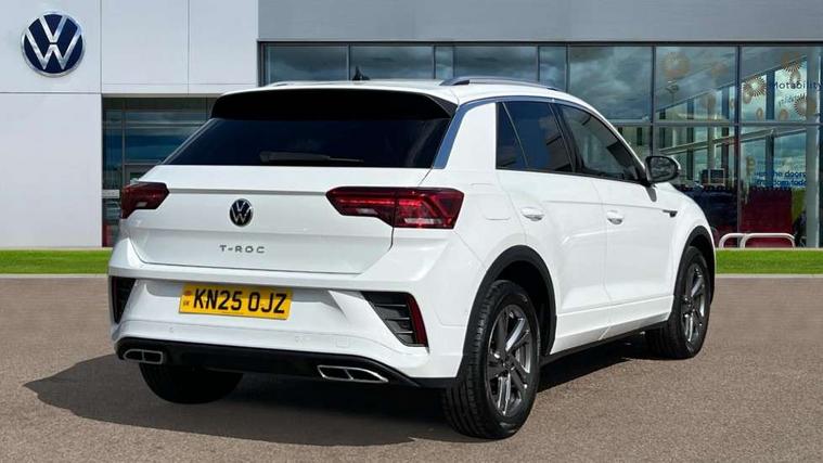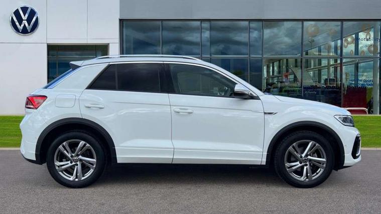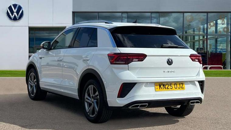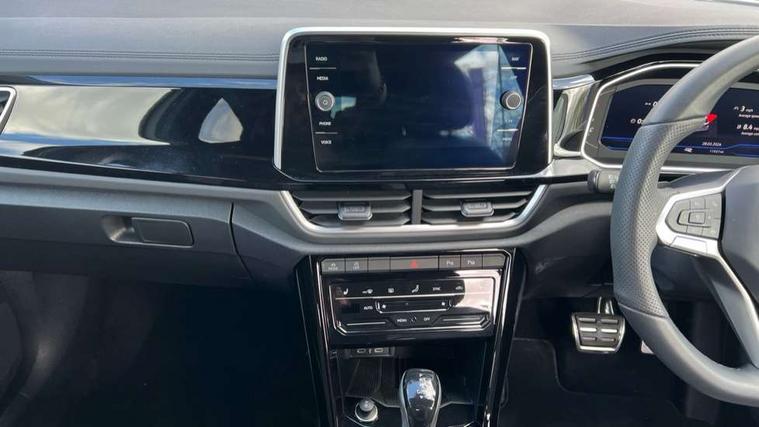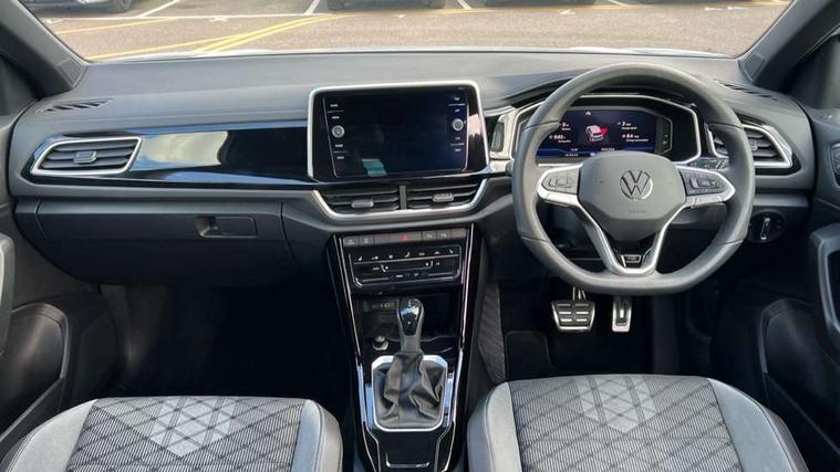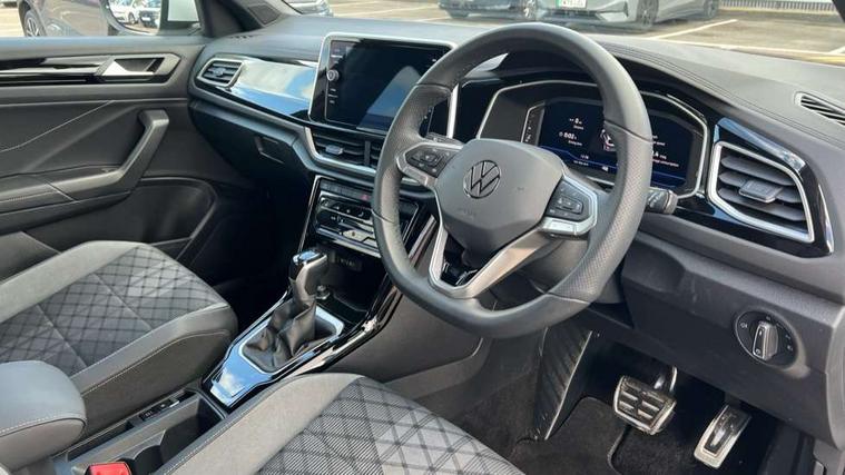 10.25" Digital cockpit pro, Advanced driver attention and drowsiness monitor, Emergency call service, Lane keeping system Lane Assist, Mobile phone interface, Modified key software - reduce switch off time for key status change to Long no motion, Online services, Park assist including front and rear parking sensors, Service interval indicator, Tailgate/trunk lid release from outside, Think blue trainer driver tips and journey analysis, Warning sound and light for front seatbelts unfastened, Wireless app connect, Battery regeneration during braking, Start/stop function with battery regeneration, DAB Digital radio, Diversity antenna for FM reception, Front and rear 6 speakers, Music playback - MP3, WMA and AAC files, Premium USB cable in choice of either Apple or Android smartphone compatibility, SD card slot, Simultaneous pairing of 2 compatible mobile devices, Title and cover art display, We Connect and We Connect Plus functionality, Auto dimming interior rear view mirror, Automatic hazard lights activation under emergency braking, Automatic headlight control with LED separate daytime running lights with coming/leaving home function, Body coloured exterior mirror housings and door handles, Electrically adjustable and heated door mirrors, Extended roof spoiler, Exterior mirrors aspherical on driver side, convex on front passenger side, External USB type C socket and charging sockets, Front windscreen wiper with intermittent wipe and 4 position delay, Heated rear window, LED 3rd brake light, LED rear combination lamps, LED rear number plate lights, Power windows with comfort operation and circuit breaker, Privacy glass for rear side windows and rear window, R-Line design body coloured bumpers, Rain sensor, Rear exhaust tailpipe, Rear fog light on one side and reversing lights on both sides, Rear side wing doors, Rear wash/wipe with intermittent wipe setting, Remote electrically foldable door mirrors, puddle lights and reverse activated passenger's door mirror, 12V power socket in centre console, 3 rear head restraints, 3 seat bench in 2nd row, 4 load lashing points in luggage compartment, Air care climatronic air conditoning system with active combination filter and 2-zone temperature control, Black roof lining, Chrome plated decorative trims, Chrome plated radiator grille inserts, air vent surrounds and light switch surrounds, Door and side trim panel with leatherette insert, Front + rear carpet mats, Front centre armrest, Front cupholders x 2, Front footwell illumination, Front reading light, Front scuff plates with R Line logo, Front seat back storage pockets, Glove compartment door with light, Instrument lighting, white adjustable panel illumination, Interior ambient lighting and surround lighting, Interior light delay, Isofix child seat preparation, Leather gearshift handle, Load-through provision with cup holder when folded down ('Unsplit rear seat bench, split folding backrest, with centre armrest), Luggage compartment lighting, Single front passenger seat, Stainless steel pedals, Storage compartment in left and right luggage area, Storage compartment in rear doors, Storage compartments in driver and front passenger doors, Sunvisors with illuminated vanity mirrors, Variable boot floor, height adjustable and removable, Driver assistance pack without proactive passenger protection - T-Roc, 3 point height adj front seatbelts + pretensioners, 3 point seatbelts in outer rear with ECE label, ABS, Child locks on rear doors, City emergency braking and pedestrian monitoring, Driver and front passenger airbag with front passenger airbag deactivation, Driver and front passenger safety-optimised head restraints, Drivers seatbelt reminder, Electronic parking brake, Electronic Stability Control (ESC) inc EDL (Electronic Differential Lock) and ASR (Traction Control), Front and rear passengers curtain airbag system including front side airbags, Hill start assist, Predictive pedestrian protection, Rear disc brakes, Two tone horn, Tyre pressure loss indicator, Volkswagen roadside assistance, Piano black decorative inserts in dashboard and front door trim panels, Trims for alloy wheels,