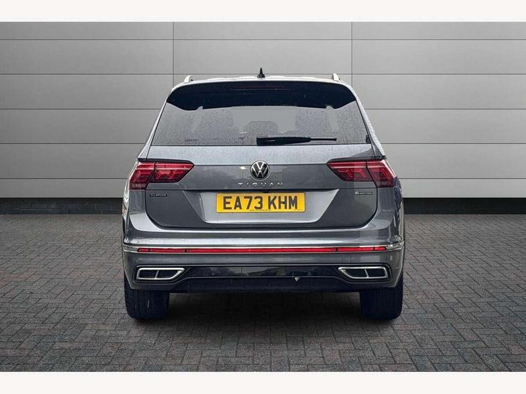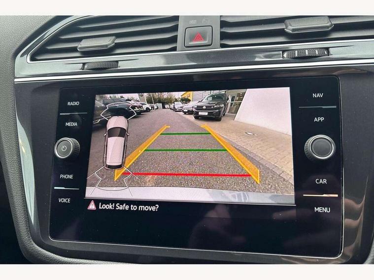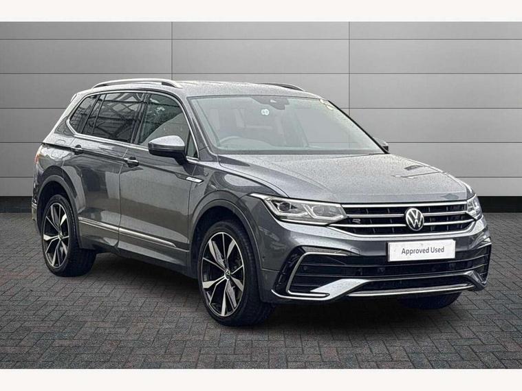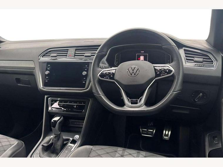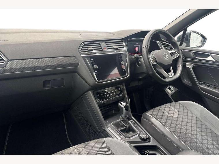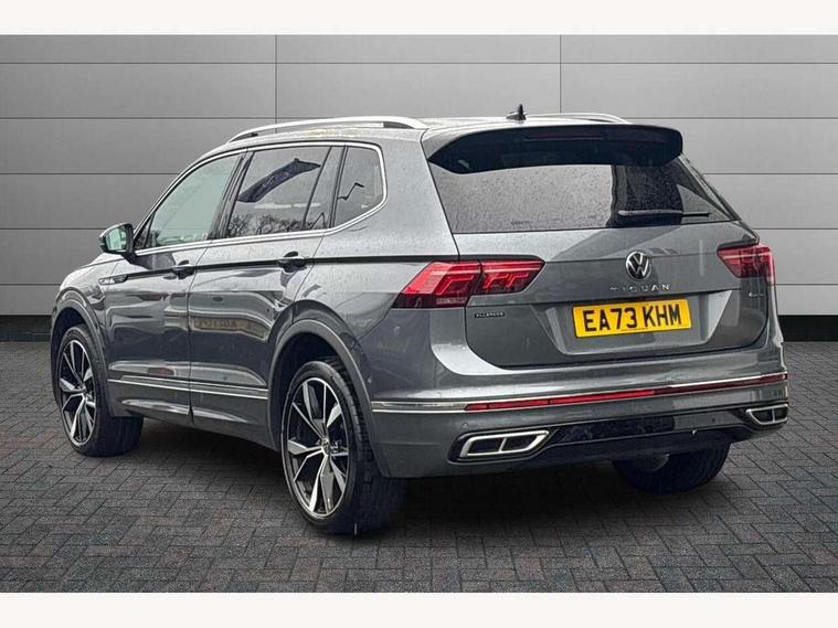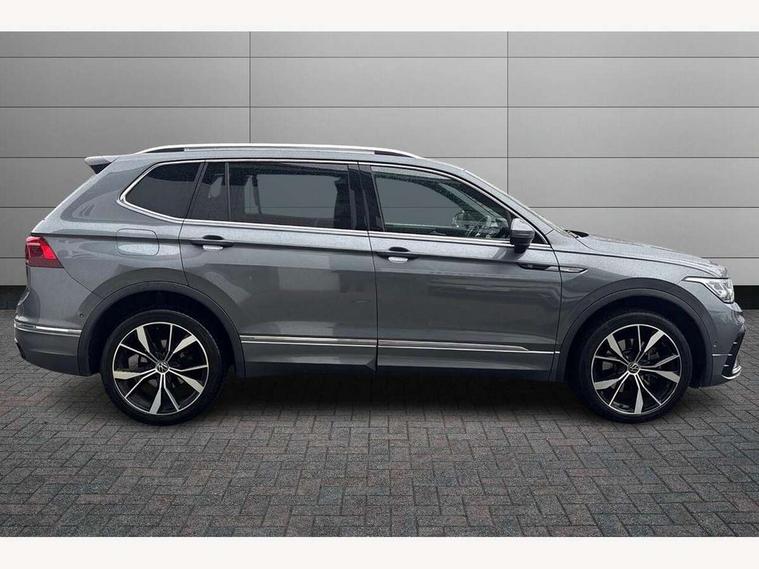 Adaptive cruise control, App-Connect, Digital cockpit pro, Driver alert system, Dynamic road sign display, eCall emergency call service, Electric boot lid, Lane change system side assist and rear traffic alert, Lane keeping system Lane Assist, Mobile phone interface comfort with inductive charging feature, Multifunction front facing camera, Progressive steering, Speedo and rev counter, electronic odometer, trip, service interval display and exterior temperature gauge, Start-stop system with battery regeneration (recuperation - energy recovery during braking), 2 USB-C ports in the front, 1 USB-C charging socket on the center console in the rear, DAB Digital radio, Diversity antenna for FM reception, Auto dimming interior rear view mirror, Automatic headlight control system, Chrome mouldings on side window, Coming/leaving home lighting function, Exterior badge deletion, Exterior mirror housings painted in silver, Heated windscreen washer jets, Rain sensor, Rear fog light, Rear side wing doors, Rear spoiler in R style, Rear wiper, Silver roof rails, Third brake light, 12-volt outlet in centre console rear and luggage compartment, 12V socket in centre console, 3 head restraints in rear, 3 individual folding 2nd row seats, 3rd row 2 individual seats, Air Care Climatronic 3 zone automatic climate control with enhanced air filter and controls in the rear, Black roof lining, Door and side trim panel with leatherette insert, Drawers under front seats, Driver and front passenger seat height adjustment, Foldable front passenger seat backrest, Front + rear carpet mats, Front centre armrest, Front footwell illumination, Heated front seats, Heated leather wrapped multifunction sports steering wheel with touch control and shift paddles, Illuminated scuff plates, ISOFIX anchorage points for mounting 2 child seats on rear seats and i-Size child seats, Leather gearshift handle, LED interior light with switch off delay/dimmer and 2 front/rear LED reading lights, Stainless steel pedals, Sun visors with illuminated vanity mirrors, Ambience pack - Tiguan Allspace R Line, Driver assistance plus package - Tiguan Allspace, 3 point seat belt for centre rear seat, 3 rear three point seatbelts, ABS+EBD+Brake assist, Driver and front passenger safety-optimised head restraints, Driver's and front passenger's airbag with front passenger's airbag deactivation switch, Electronic parking brake, Electronic Stability Control (ESC) inc EDL (Electronic Differential Lock) and ASR (Traction Control), Height adjustable front 3 point seatbelts + pretensioners, Manual rear child locks, Pedestrian monitoring, PreCrash preventive occupant protection Front and rear, Rear disc brakes, Side airbag in front and rear with curtain airbag, Two tone horn, Warning buzzer for seatbelts if unfastened, Anti theft alarm system with interior monitoring, backup horn and towing protection, Anti-theft wheel bolts, Electronic steering lock, Remote central locking with 2 remote folding keys,
