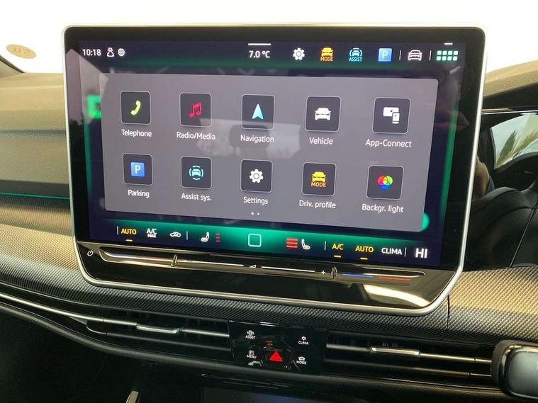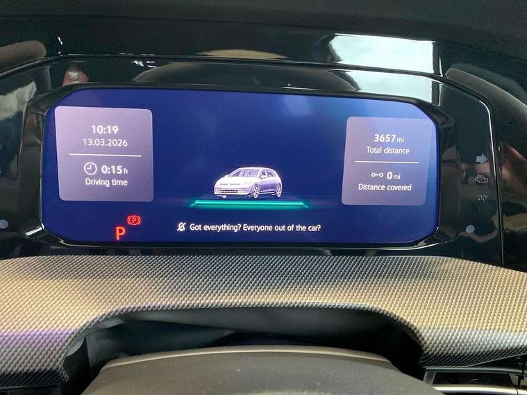 Activated carbon canister, Adaptive cruise control (ACC), Advanced driver attention and drowsiness monitor, Dynamic road sign display, Dynamic steering, E-Sim card for online connectivity, eCall emergency call system, Multi-color Digital cockpit pro, selection of different info profile possible, Multifunction front facing camera for distance control, Navigation system, Oncoming vehicle braking when turning including swerve support, Speed limiter, Speedo, rev counter, electronic odometer, trip, service interval display, exterior temperature and fuel gauge, Traffic jam assist, Voice enhancer and voice control, Warning signal and warning light for front and rear seatbelts not fastened, We connect plus preparation, We connect preparation, Wireless app connect, Hybrid propulsion system, Petrol Particulate Filter, Start-stop system with battery regeneration (recuperation - energy recovery during braking), XDS electronic differential lock for improved traction and handling, 2 USB C ports in front, 2 USB charging sockets on the centre console in the rear charging capacity upto 45W, Digital radio reception (DAB), Diversity antenna for FM reception, Gaming platform via car app, Infotainment system with 12.9" display, Mobile phone interface with inductive charging feature, 3rd brake light, Auto dimming rear view mirror, Automatic headlamp activation with Coming home and Leaving home feature, Body colored bumpers in R-Line style, Body colour door handles, Exterior ambient lighting, Exterior mirrors convex on the left and aspherical on the right, Front and rear electric windows, Heat insulating windshield made of laminated glass, LED separate daytime running light, Rain sensor, Rear exhaust tailpipe, Rear fog light on one side and reversing lights on both sides, Rear side wing doors, Rear windscreen washer and wiper with interval delay, Remote electrically foldable door mirrors, puddle lights and reverse activated passenger's door mirror, Volkswagen logo in front, illuminated lighting animation with wake up/goodbye scenario and illuminated door handles, Welcome light with surround lighting, 12V socket in front centre console, 12V socket in luggage compartment, 3 rear head restraints, 3 seat bench in 2nd row, Ambient lighting with 30 colour including LED light unit in front footwell with selectable light colour, Black roof lining, Brushed stainless steel pedals, Chrome plated radiator grille inserts, air vent surrounds and light switch surrounds, Door insert, side trim panel and arm support in leatherette, Front + rear black carpet mats, Front centre armrest, Front seat lumbar support adjuster, Integrated front head restraints, ISOFIX anchors for child seats on outer rear bench seats and on front passanger seat compatible for i-Size, Luggage compartment lighting, Manual height adjustable front passenger seat, Manually height adjustable driver seat, Plastic gear knob, Premium sports seats in front, Rear cupholder and loadthough, Sardegna cloth upholstery with front and outer rear seats Art Velour inner sides of bolsters, Single front passenger seat, Split folding backrest with centre armrest and unsplit rear seat bench, Sun visors with illuminated vanity mirrors, Titanium black instrument panel, Black exterior Styling package with Matrix LED headlights - Golf, Winter package - Golf DSG Estate/Hatchback, 3 point height adj front seatbelts + pretensioners, 3 rear three point seatbelts, ABS, Autonomous emergency braking front assist with pedestrian and cyclist monitoring, Child locks on rear doors, Driver and front passenger airbag with front passenger airbag deactivation, Electronic parking brake with auto hold, ESC (Electronic Stability Control), Extended pedestrian protection measures, Hill start assist, Rear disc brakes, Two tone horn, Tyre pressure loss indicator, Volkswagen roadside assistance, Anti theft wheel bolts, Preparation for alcohol interlock, Decorative inserts carbon grey for dashboard and front door trim panels, 18" Leeds alloy wheels, Tool kit for tyre mobility set, Tyre mobility kit Includes 12V compressor and tyre sealant,